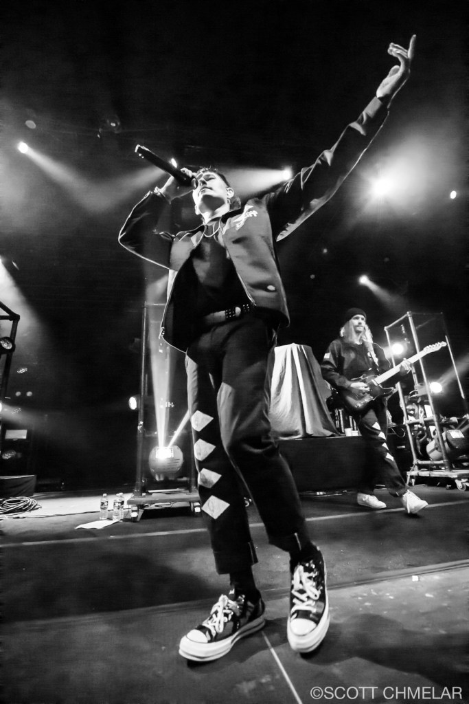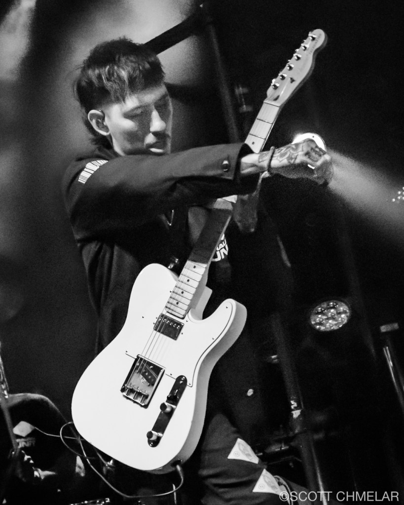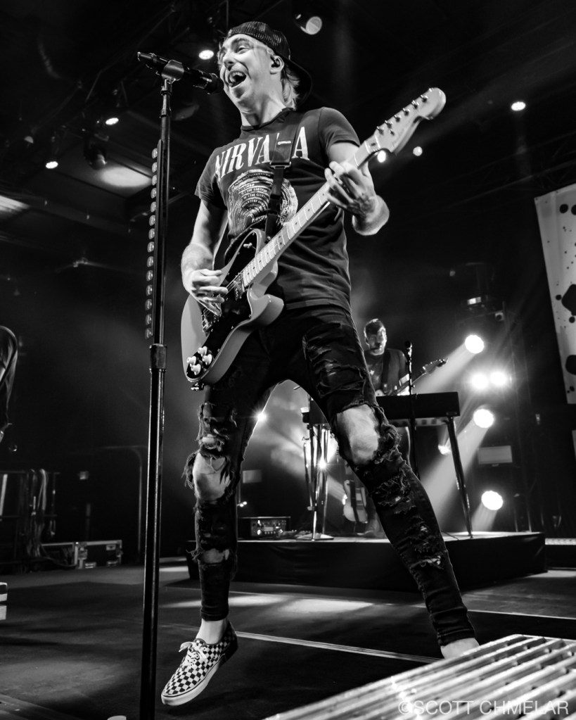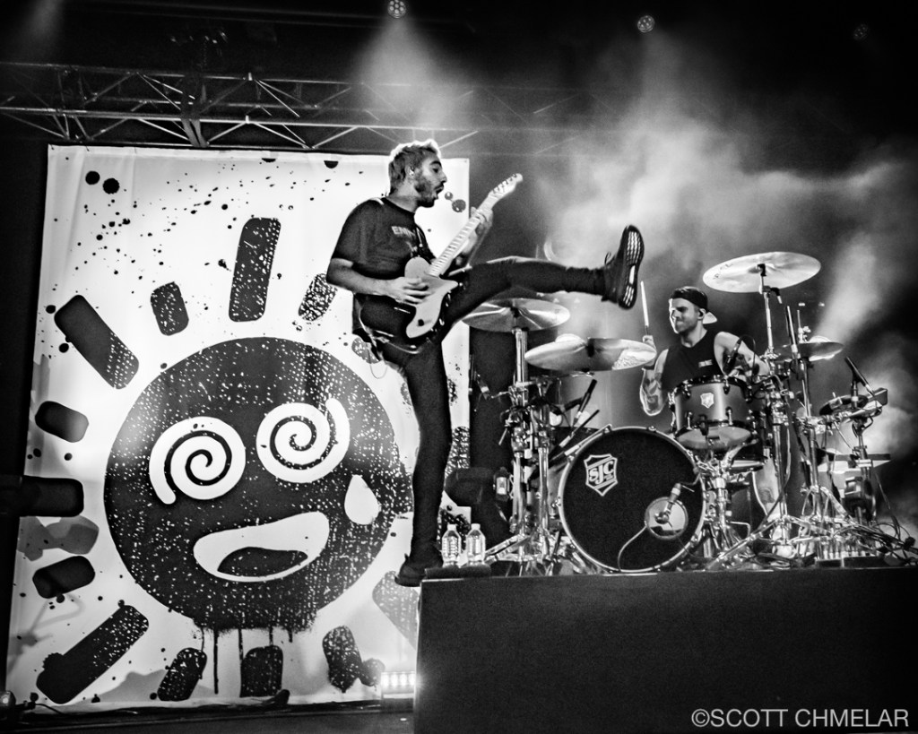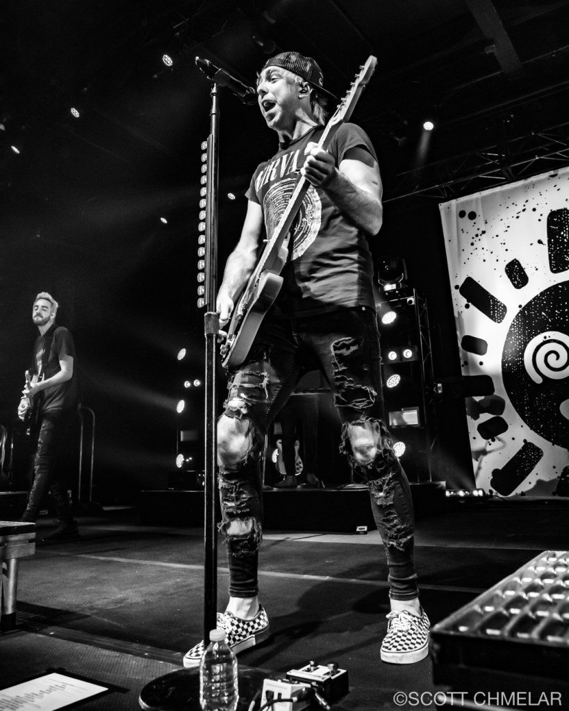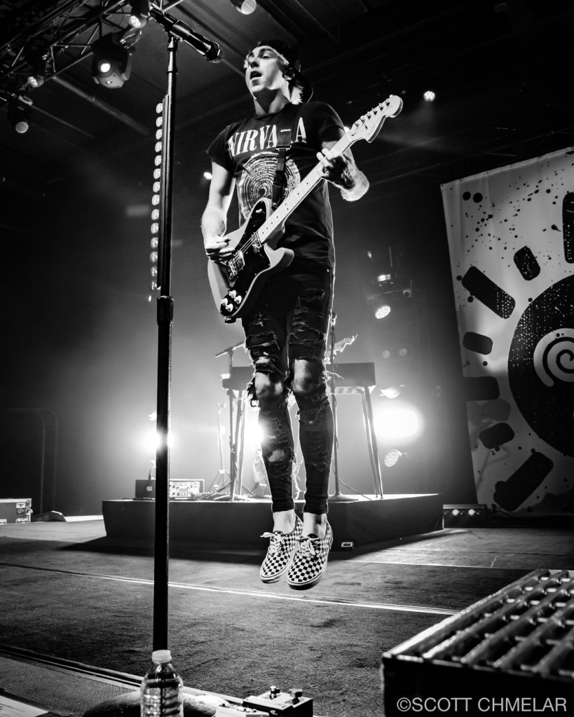 Although All Time Low had better light up front, I followed suit with the black and white as I’m starting to see that approach as a way to enhance a human form against a busy stage. I think us humans are hard wired to pick out a beast from a tangle of foliage. It does seem to work with this kind of situation.