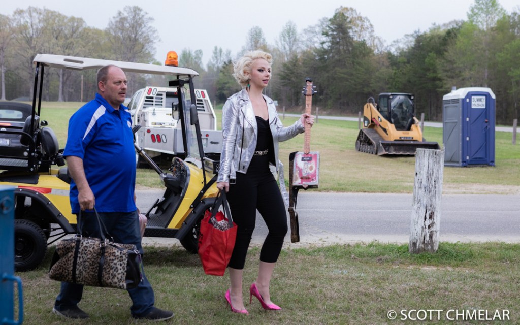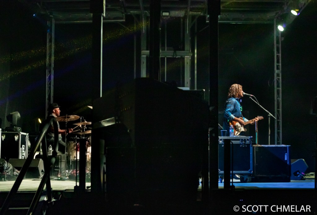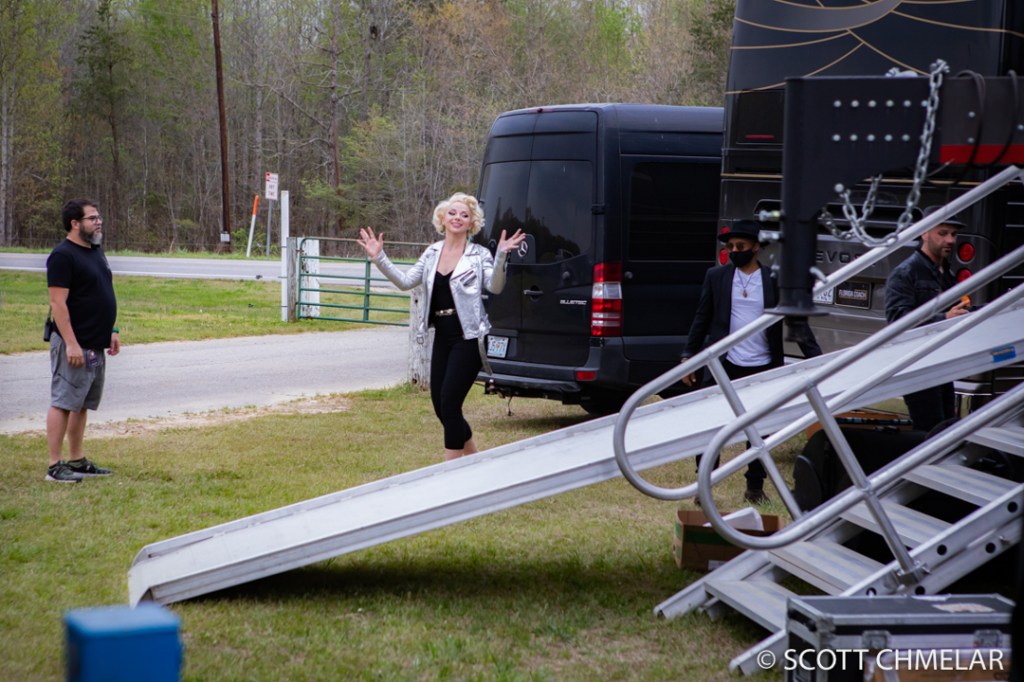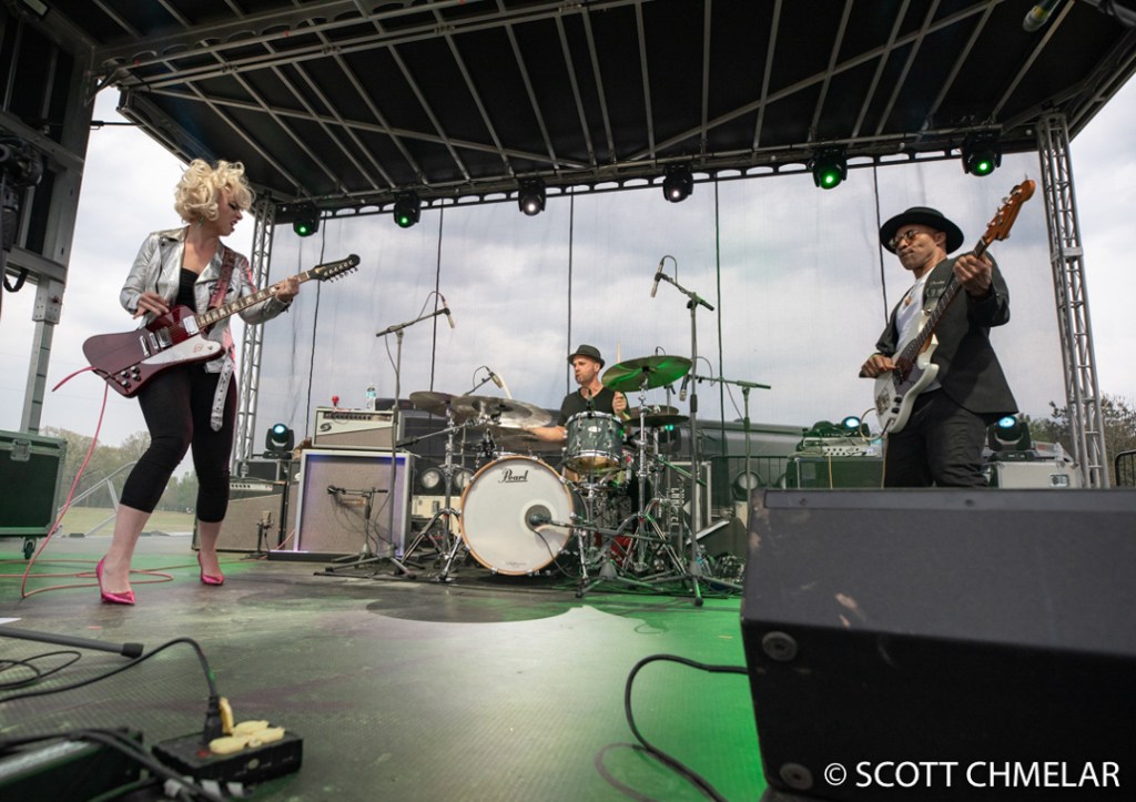 GPS took me precisely to the back stage at a crossroads, where a gentleman opened the gate and let me in. I parked near the stage. They were done setting up, about 10 or so of support staff, everyone was ready and set to go. Some sound tests were rapping up as I got to the stage, Samantha Fish was brought to location on a golf cart, and things got underway.