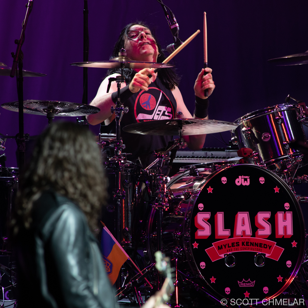 Slash featuring Myles Kennedy and the Conspirators brought the house down. The band lineup was stellar: Slash on guitar, Myles Kennedy on vocals, Frank Sidoris on guitar, Todd Kerns on bass, and Brent Fitz on drums. Each member brought their unique talent and energy to the stage, creating a powerful and cohesive performance. Slash’s guitar work was, as always, phenomenal—his solos slicing through the air with precision and intensity. Myles Kennedy’s vocals were nothing short of spectacular, delivering each song with passion and power.