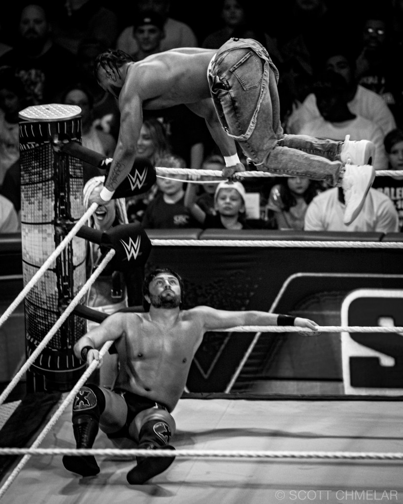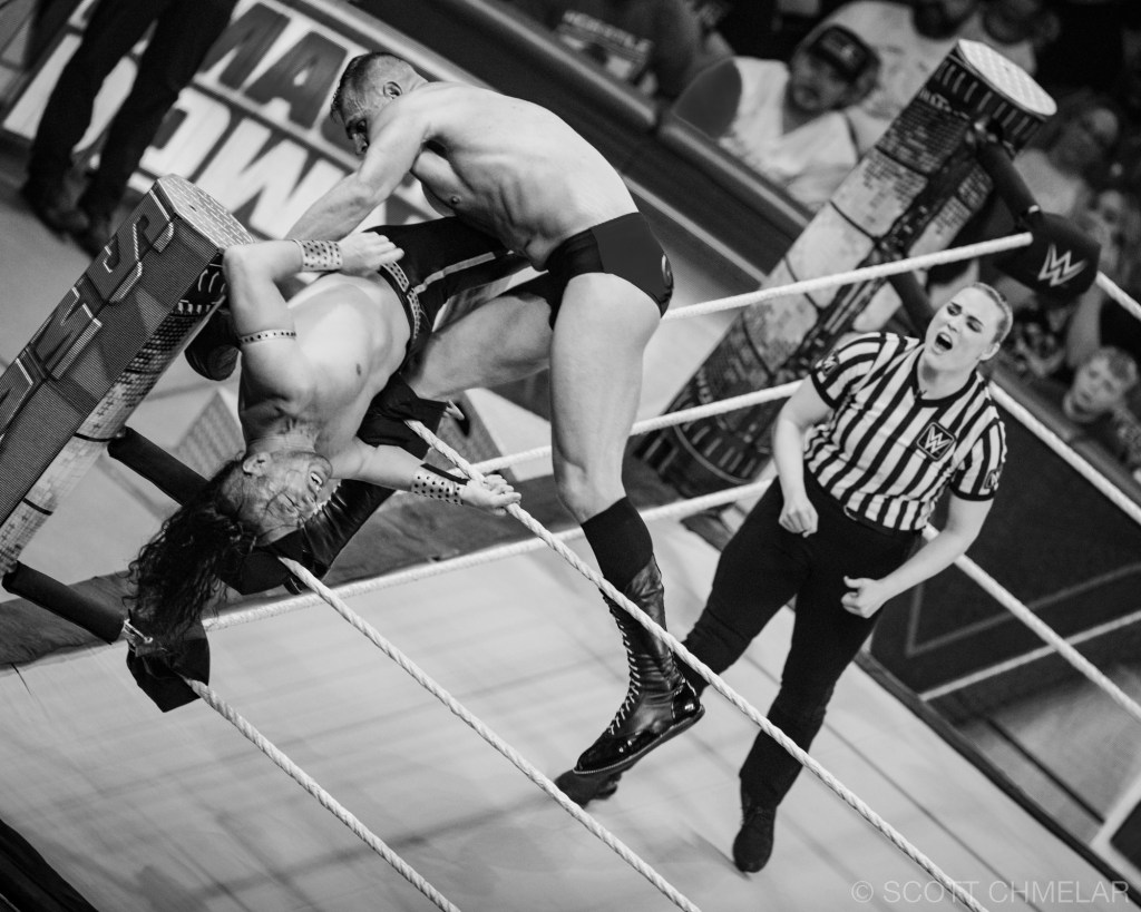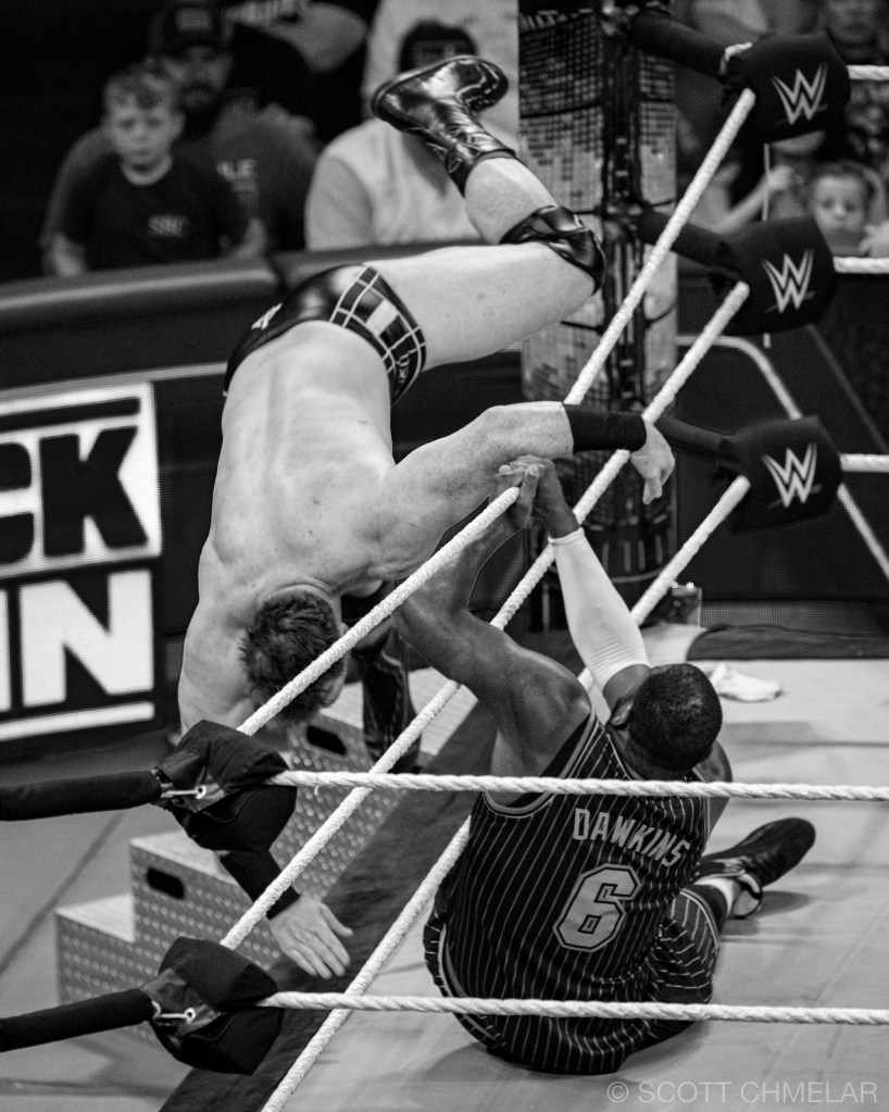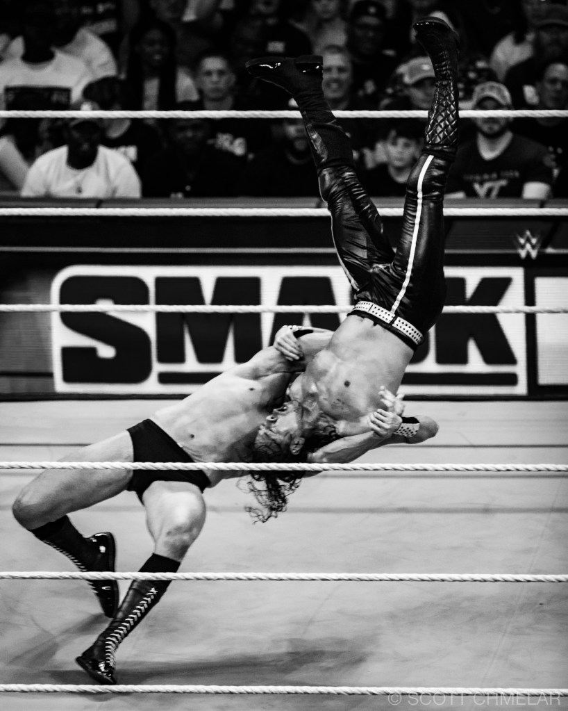 The PNC Arena in Raleigh, NC hosted the WWE Friday Night SmackDown to a sell out crowd. As an action photographer, one of the biggest hurdles is just plain access to events, and I’ve been working hard for about 10 years to access Professional Wrestling.