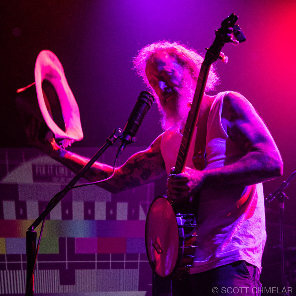 JD Pinkus’s squeezing feedback compositions through his banjo were very mysterious indeed, so I looked him up. …”Jeff ‘J.D.’ Pinkus is an American bassist best known for his work with American punk band Butthole Surfers”… He did give a kind of performance you have to think about, a psychological presentation.