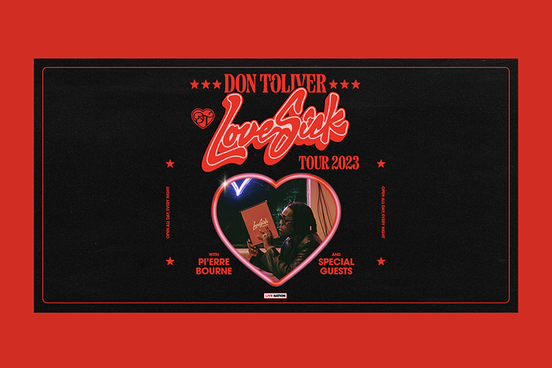 Following the release of his third studio album, Love Sick, hip-hop soul artist Don Toliver announces Thee Love Sick Tour 2023 featuring special guests Pi’erre Bourne and more. Produced by Live Nation, the 17-city tour kicks off on Sunday, June 18 in Denver at Fillmore Auditorium, with stops across North America in Toronto, New York, Houston, Los Angeles and more before wrapping up on Saturday, July 16 at The Masonic in San Francisco.