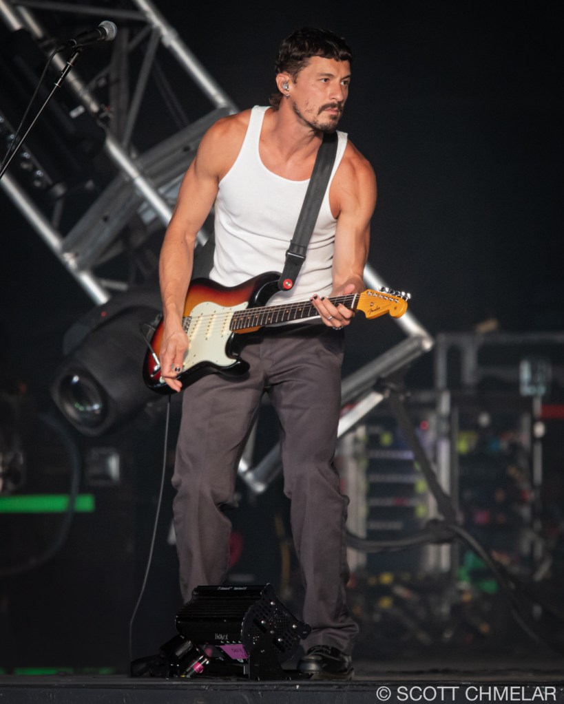 Cold War Kids opened. Bass player and creative director of Cold War Kids Matt Mausts antics was fun to watch. As he moved oddly end to end across the stage, at first I wondered if there was a tech error he was responding to, but then I realized it was a performance of Dadaism. so I looked him up. He’s an artist. I believe my hypothesis was true.