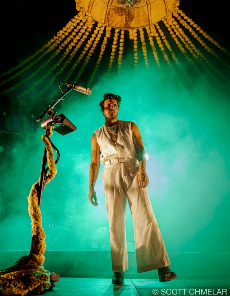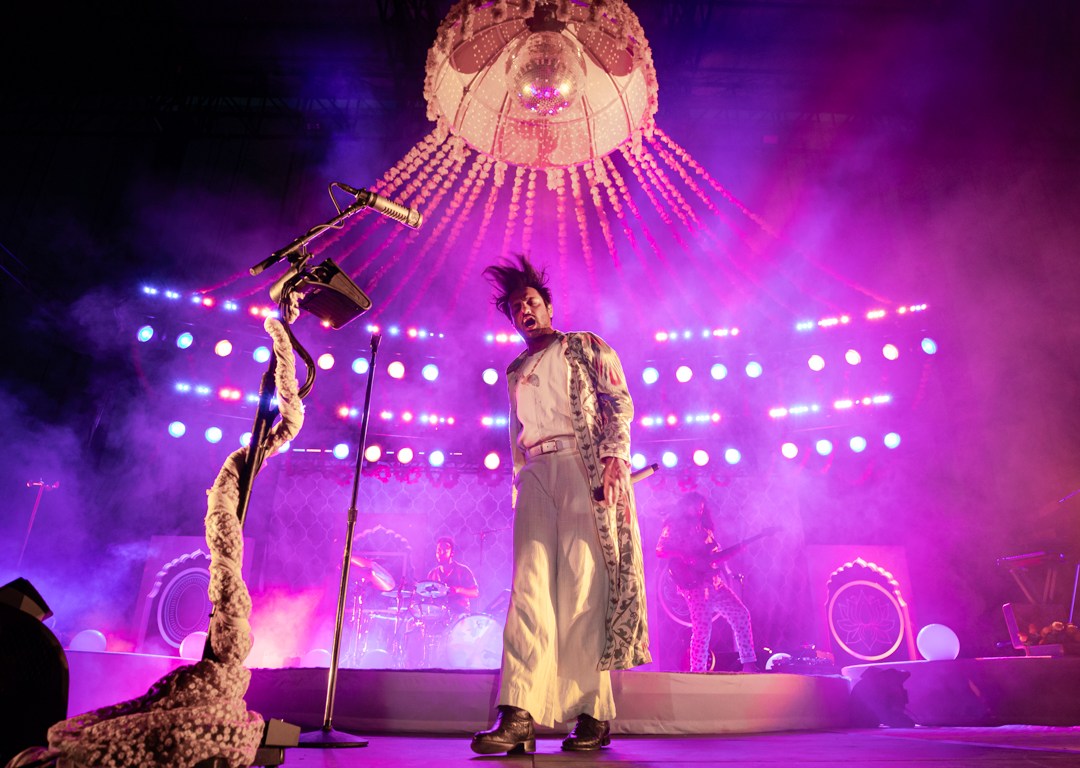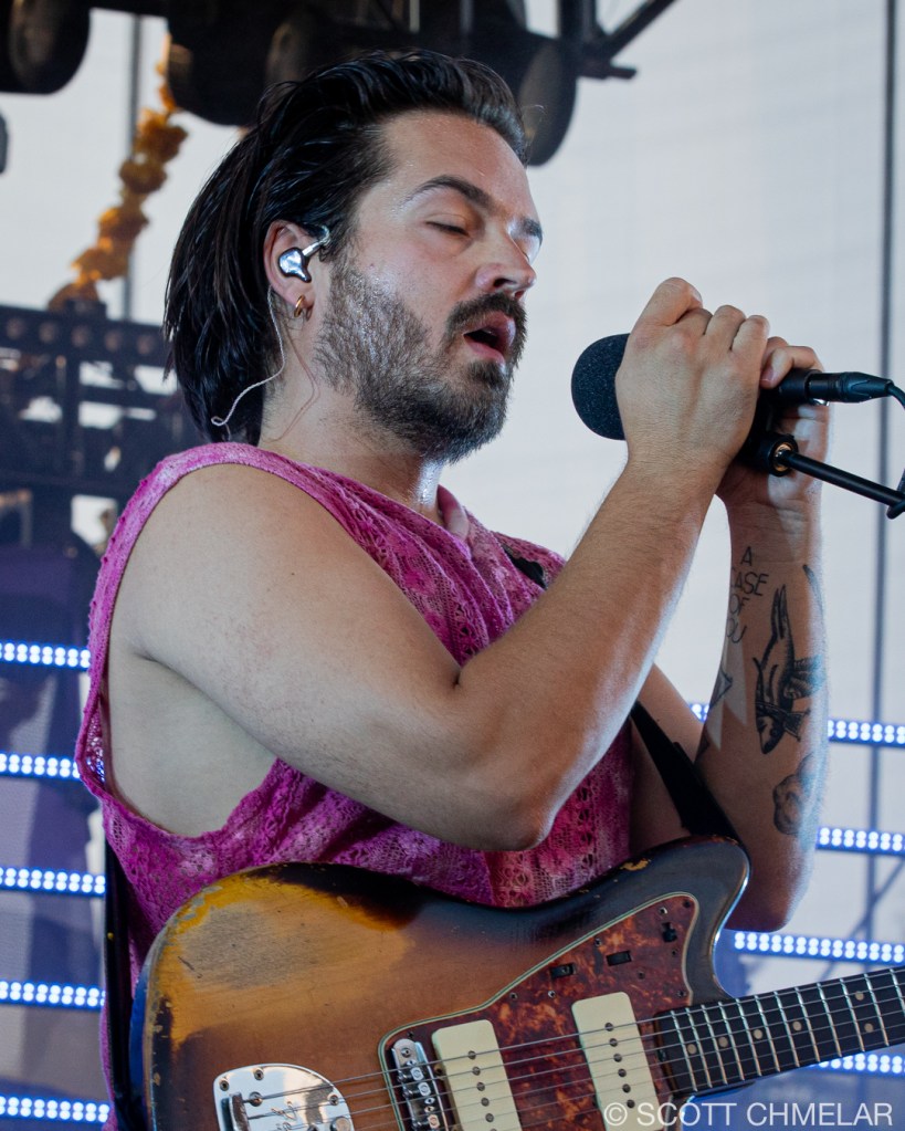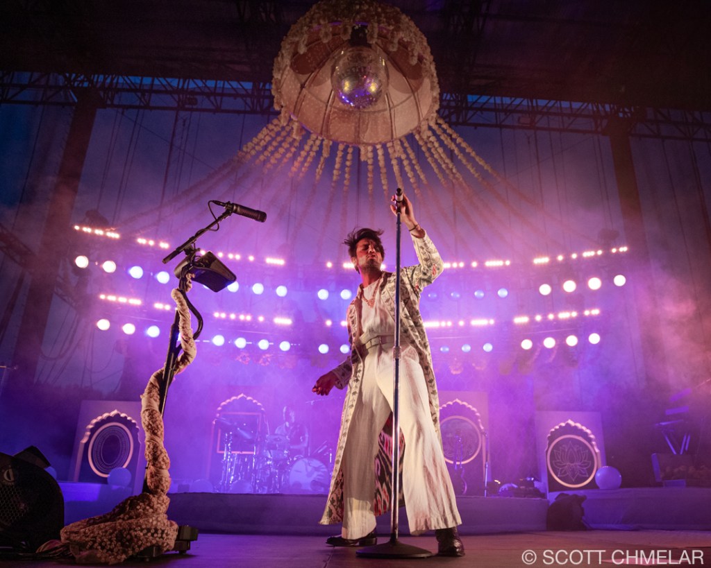 As the evening cooled and the sky darkened, Young the Giant’s iconic Sameer Gadhia swept the girls off their iced drinks melting them into his dramatic, hypnotic performance.