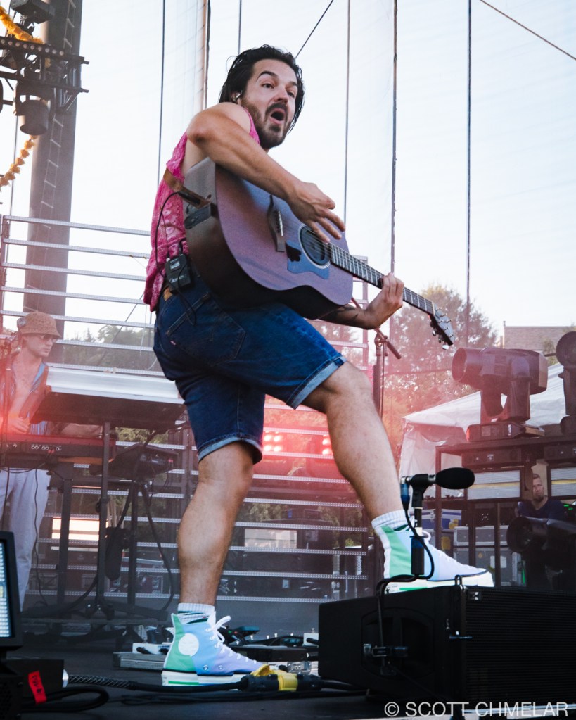 The audience was ready to faint watching Clemens Rehbein of Milky Chance perform an energized physical delivery in our steamy hot, humid North Carolina afternoon.