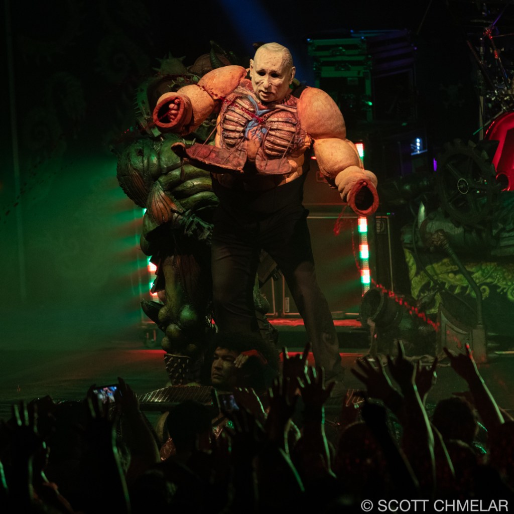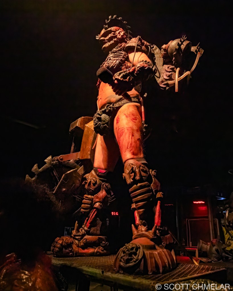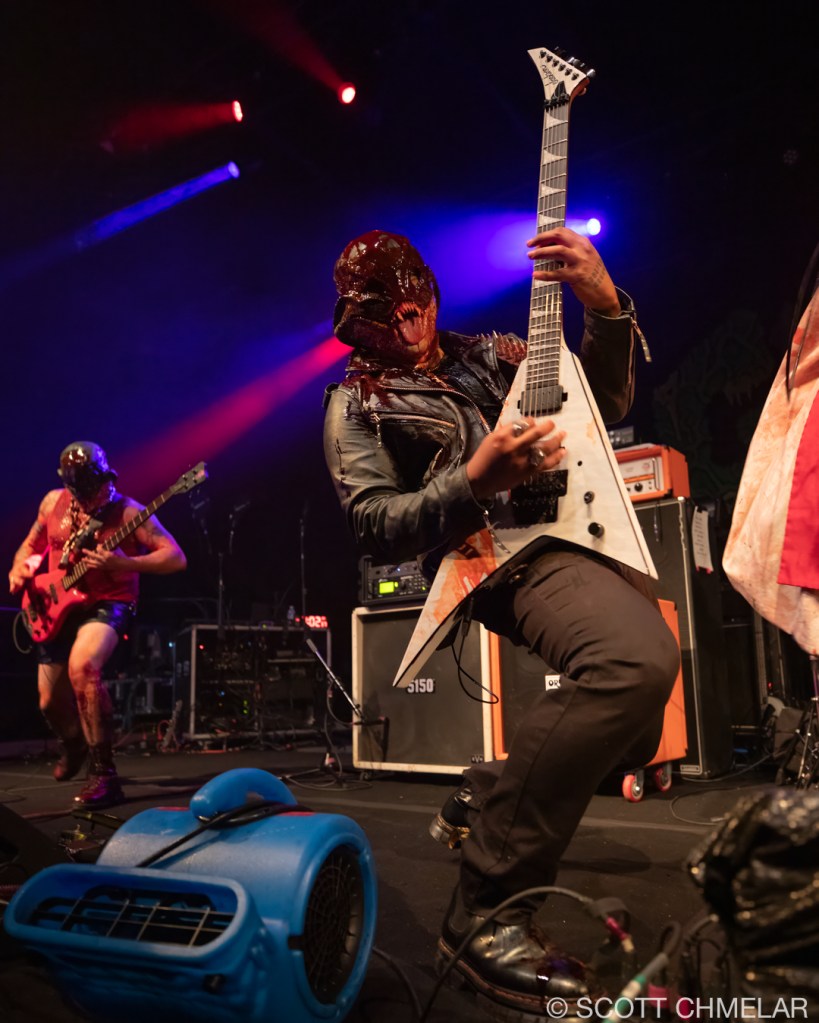 There were ten photographers in the pit. That’s the area right in front of the stage…the spew zone. Those of us that did our homework were wearing rain ponchos and had our cameras wrapped in plastic. Informed members of the audience were wearing rain ponchos too. The uninformed were looking at us like we were the aliens, but during the rain of fake blood flowing out like a fire hose drenching everyone, us of those wrapped in plastic felt like we were at the right place at the right time, and we were getting our money’s worth!