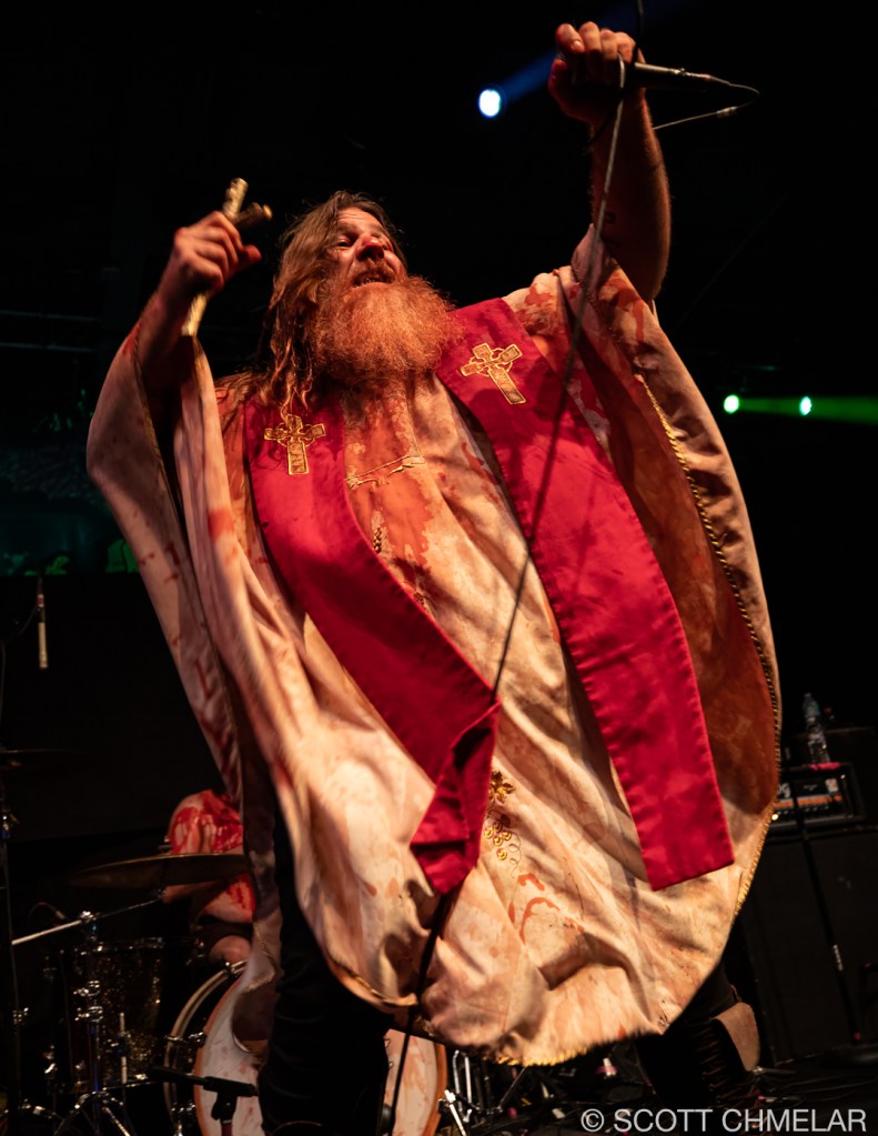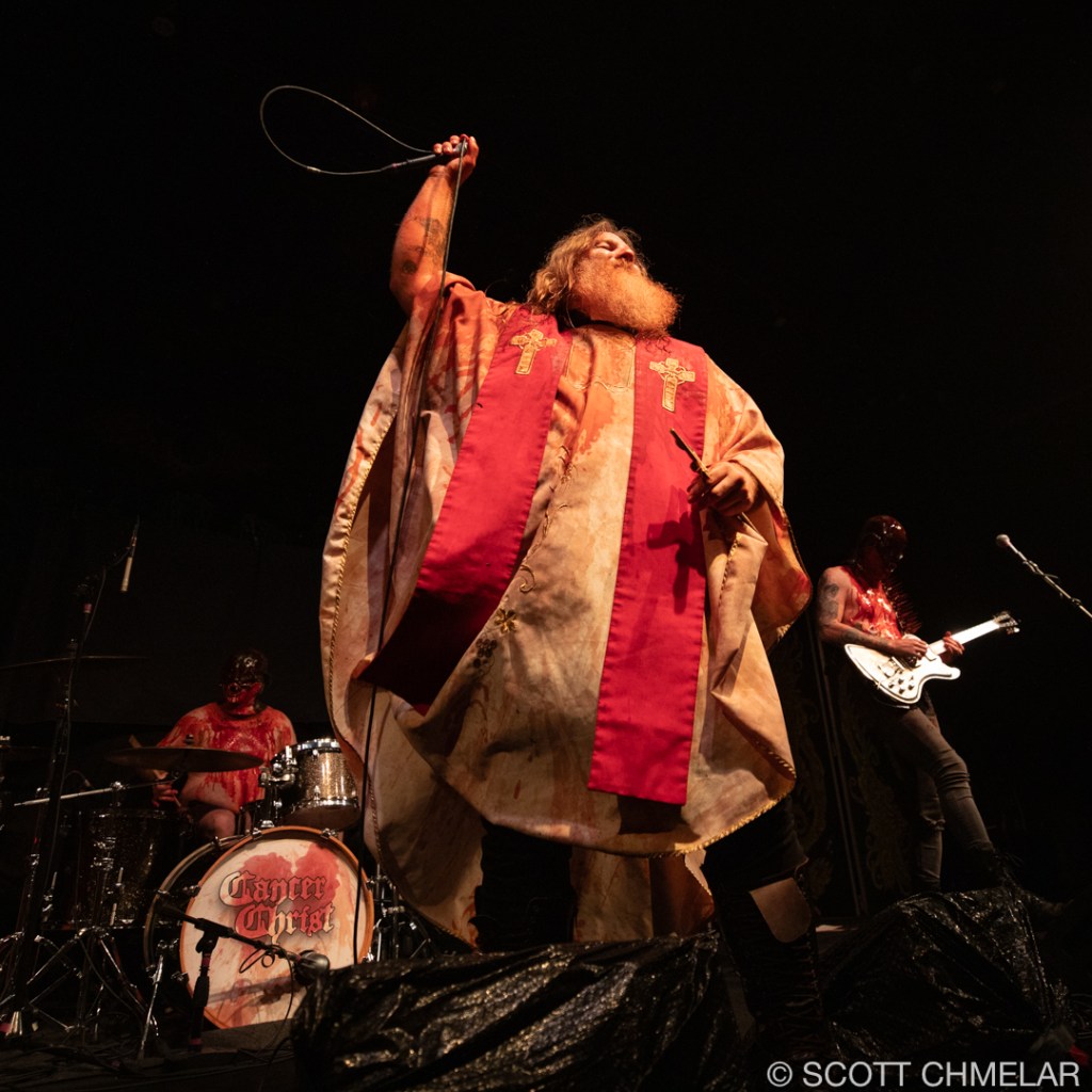 On a more reflective note, the show was about a myriad of social injustices. Opening with Cancer Christ with vocalist Anthony Mehlhaff outfitted like a religious icon, you can’t help but think of the hundreds of thousands of children sexually assaulted by the Catholic church, yet parents continue to herd their kids in for choir practice. Moving on to the band X-Cops, they are making a definite statement about police brutality. The band Negative Approach is fundamentally about Nihilism and GWAR, in response to the void created by Nihilism, Anarchy. These messages throughout the performances couldn’t be made more plain to see. It was a call for the fans to wake up and become part of the solution, not to be hypnotized and paralyzed by autocratic demigods. Whoever put this lineup together in this particular order was a genius.
