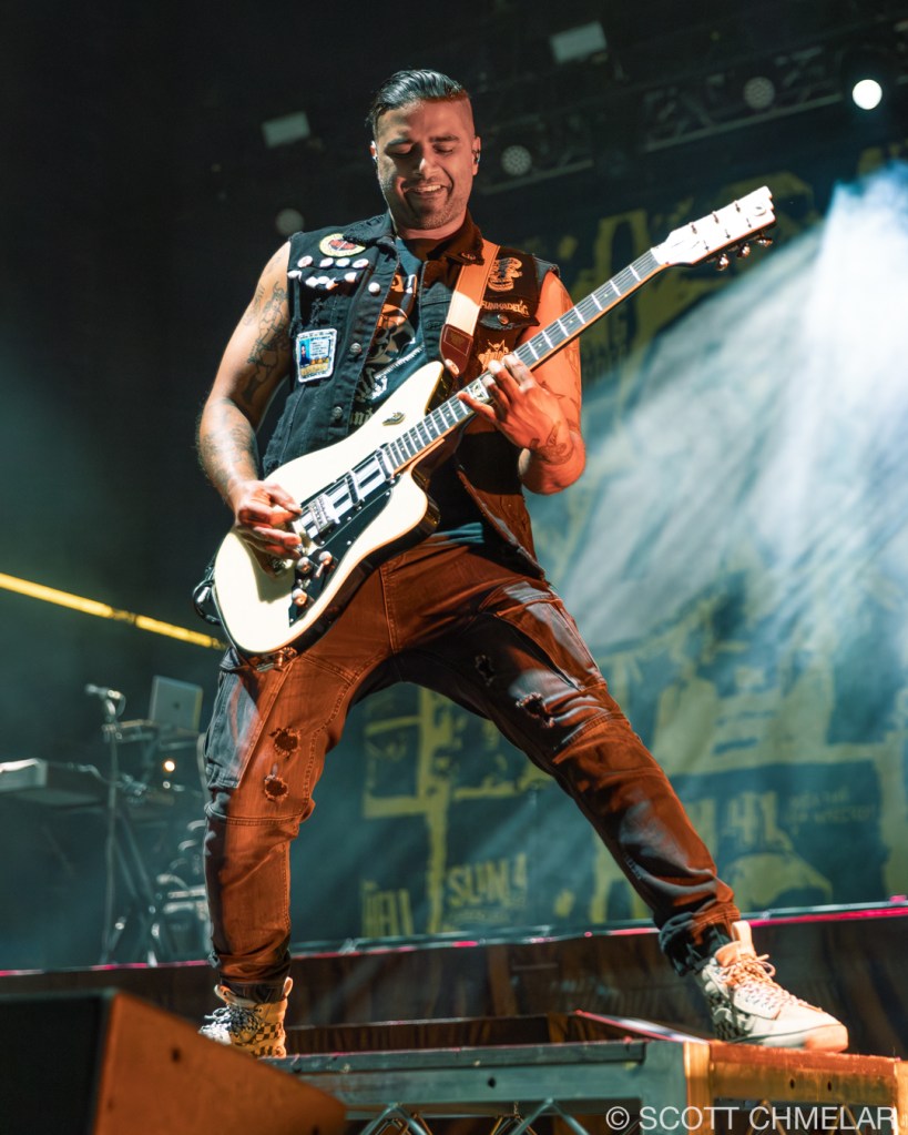 Catching Sum 41’s final tour: “Tour of the Setting Sum” at Red Hat Amphitheater in Raleigh, NC, was an electrifying experience showcasing their musical prowess and stage charisma. The perfect weather and vibrant venue set the stage perfectly for Sum 41’s explosive performance. Their dynamic stage setup, complete with elaborate lighting effects, smoke canons and pyrotechnics, added depth and excitement to each song, highlighting their technical proficiency and seamless transitions between pop-punk anthems and heavy metal tracks from their upcoming double album, “Heaven :x: Hell.”