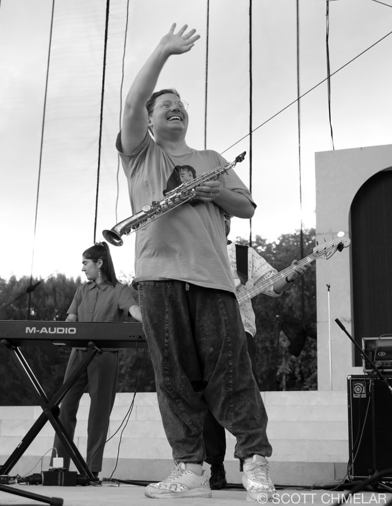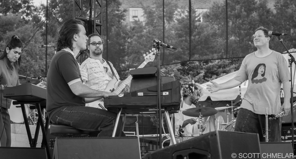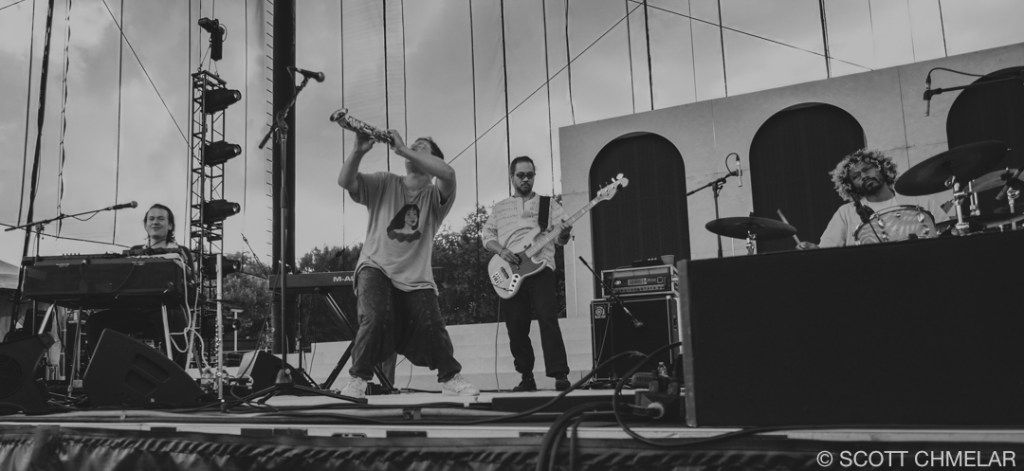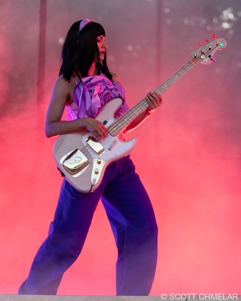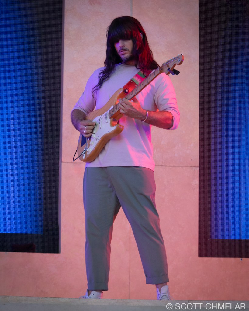 Under the canopy of stars of our soon to be re-born Red Hat Amphitheater in Raleigh, NC, Khruangbin, supported by John Carroll Kirby, wove a sonic tapestry that resonated with the deep rhythms of the collective unconscious. The open-air venue, nestled amidst urban architecture, provided an expansive yet intimate atmosphere where the audience, a diverse mosaic of music aficionados, gathered. With the amphitheater’s capacity to hold several thousand, of which was sold out for this performance, the crowd was a blend of young and old, reflecting the timeless and borderless appeal of Khruangbin’s music. The stage, bathed in a spectrum of vibrant hues, was adorned with minimalist decor, allowing the band’s visual artistry to shine through. As the ethereal notes of Kirby’s synthesizer floated through the air, the lighting effects danced, creating a dreamlike aura that blurred the line between reality and myth.