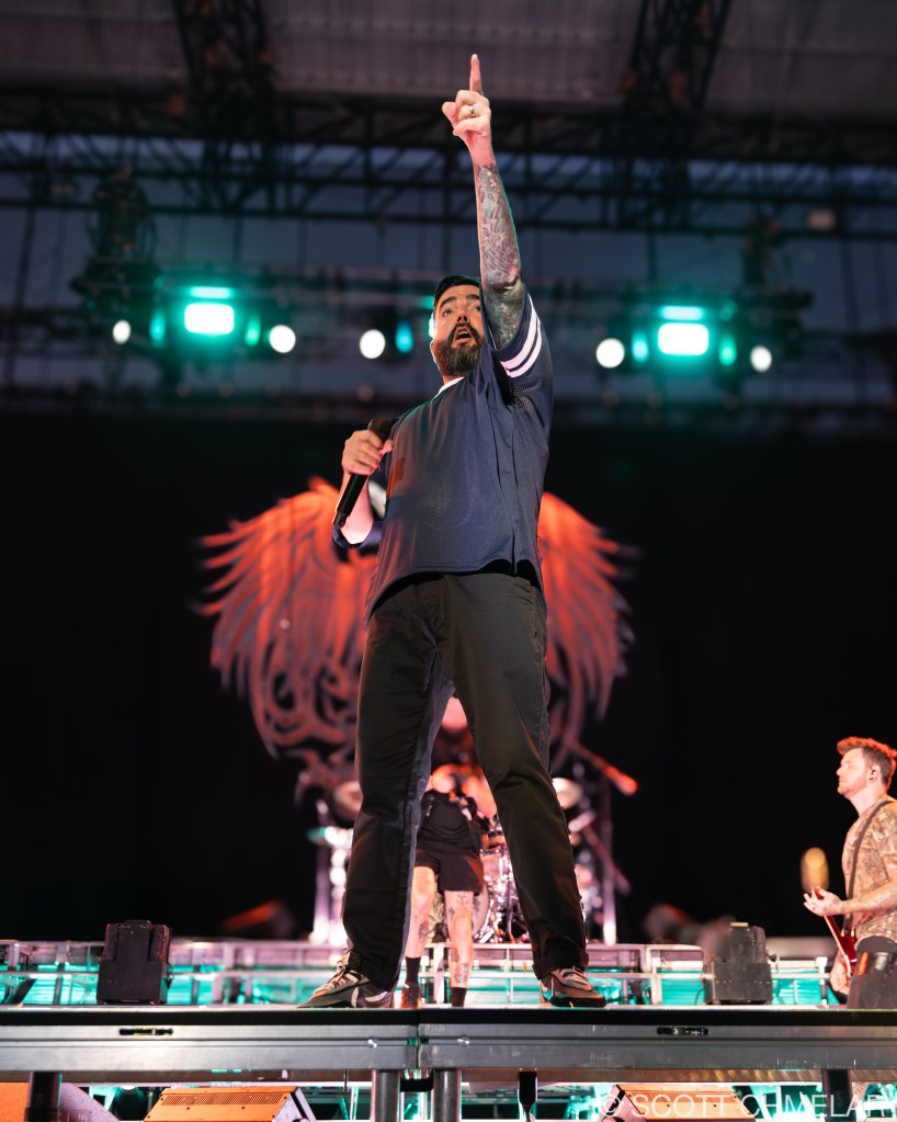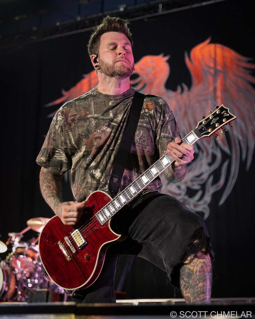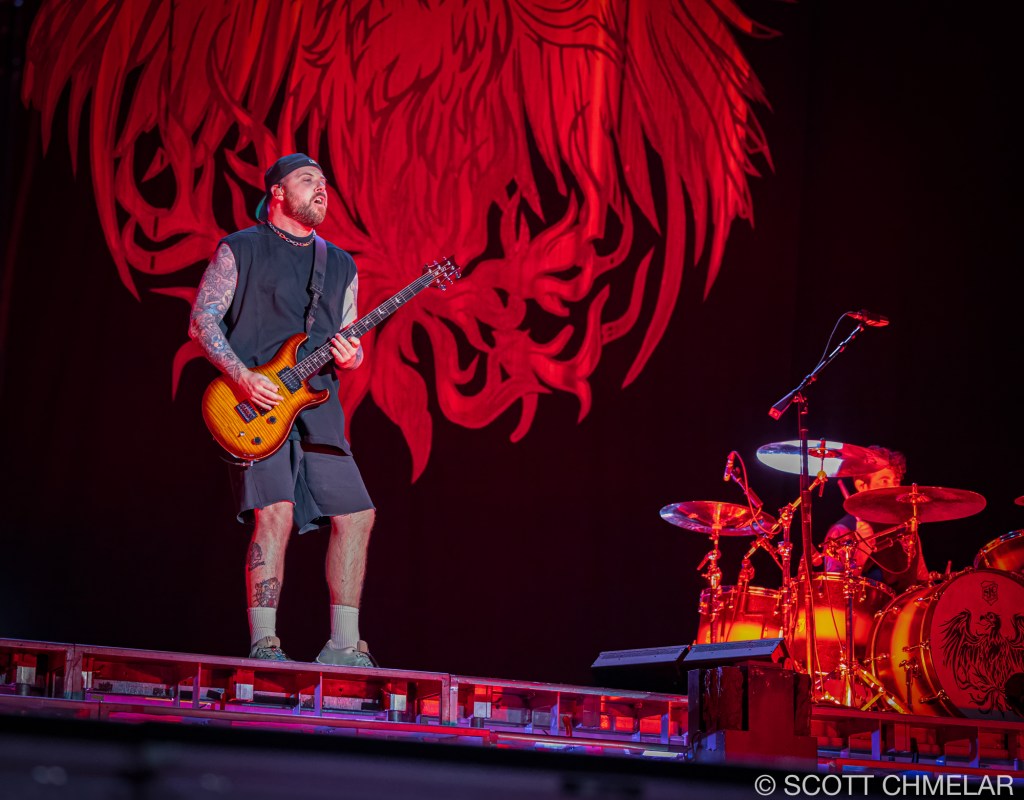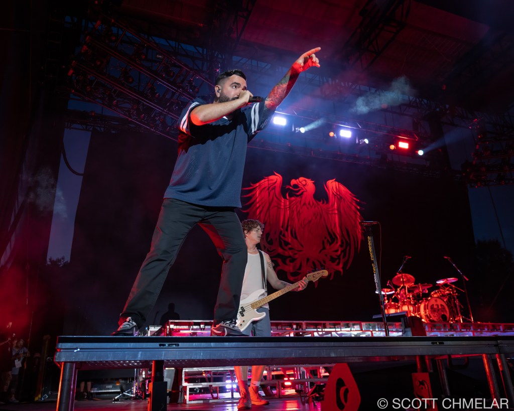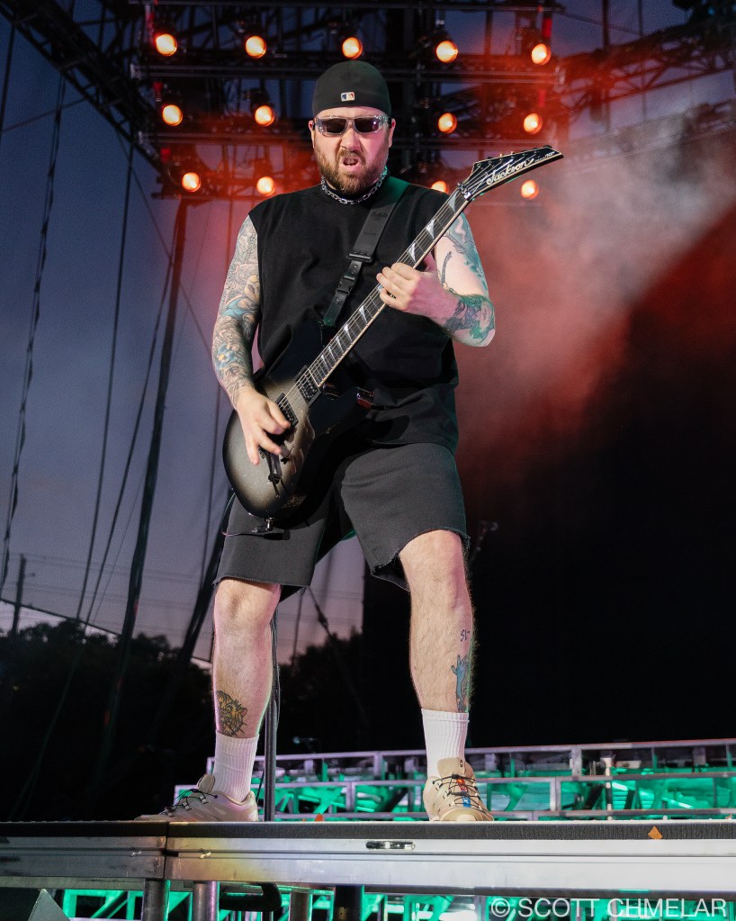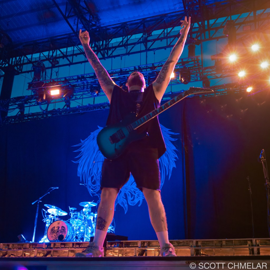 On a balmy evening in Raleigh, North Carolina, the Red Hat Amphitheater played host to an electrifying spectacle—the “Least Anticipated Album Tour.” Opening the night was Pain Of Truth, a band unafraid to delve into raw, visceral themes as showcased on their debut album “Truth Hurts.” Lead vocalist Ryan Johnson, guitarist Alex Marshall, bassist Jordan Grant, and drummer Taylor Carter set the tone with their intense performance. (Website: Pain Of Truth)