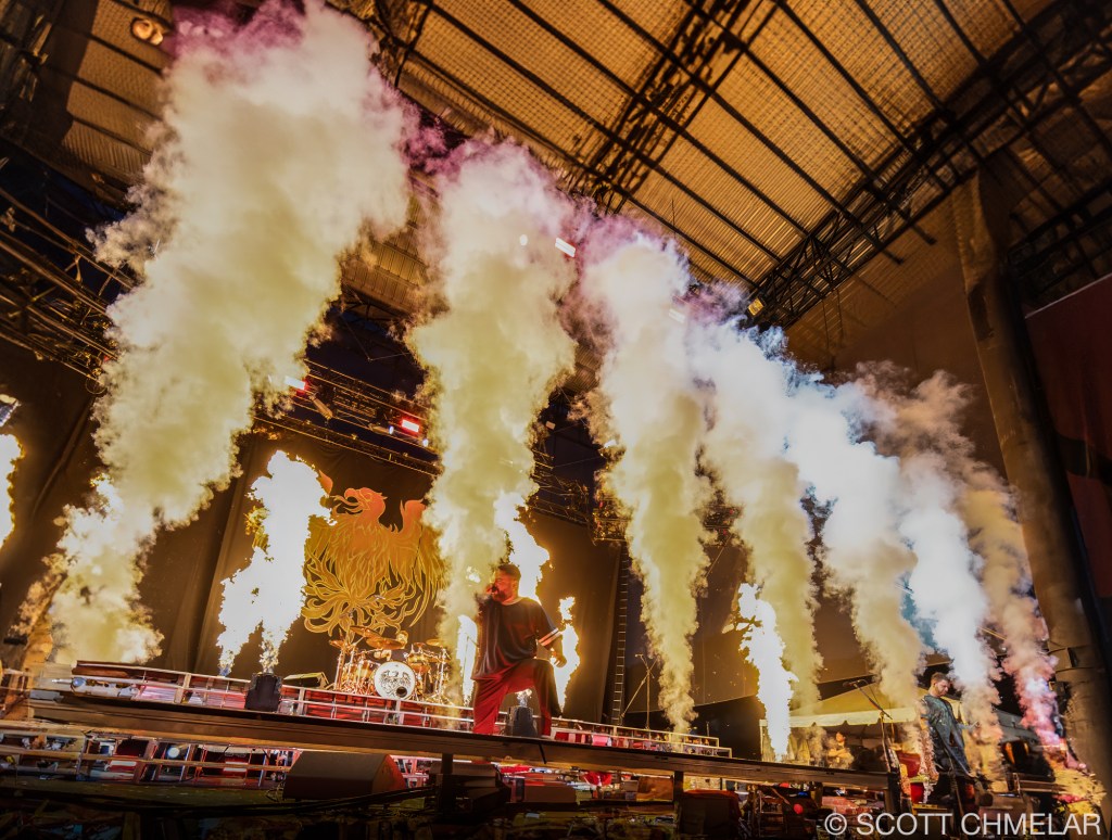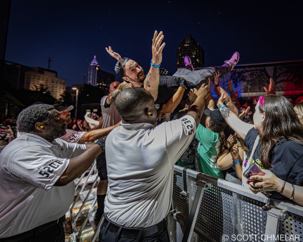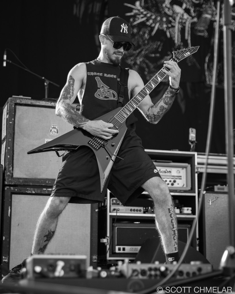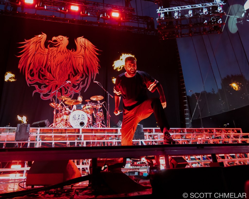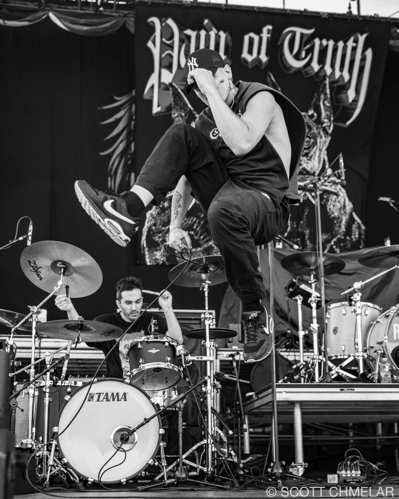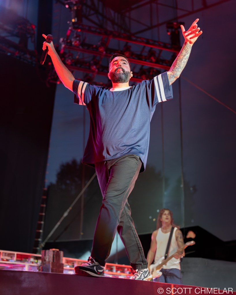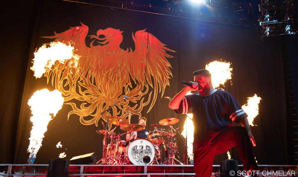 On a balmy evening in Raleigh, North Carolina, the Red Hat Amphitheater played host to an electrifying spectacle—the “Least Anticipated Album Tour.” Opening the night was Pain Of Truth, a band unafraid to delve into raw, visceral themes as showcased on their debut album “Truth Hurts.” Lead vocalist Ryan Johnson, guitarist Alex Marshall, bassist Jordan Grant, and drummer Taylor Carter set the tone with their intense performance. (Website: Pain Of Truth)