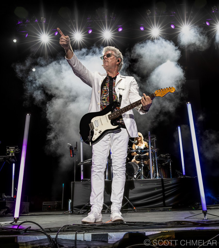 Under a sweltering July night at the Red Hat Amphitheater in Raleigh, NC, the Totally Tubular 80’s New Wave Tour electrified the stage on 7/13/24. Opening the nostalgic evening was Eddie Munoz of The Plimsouls, known for their infectious hit “A Million Miles Away” from the 1983 album “Everywhere at Once.” Eddie’s solo act brought a raw, energetic vibe that perfectly set the tone for the night. His latest solo work, “Electric Avenue,” has been garnering attention for its fresh take on the classic 80s sound, showcasing his enduring talent. More about Eddie and his projects can be found on his website, eddiemunozmusic.com.