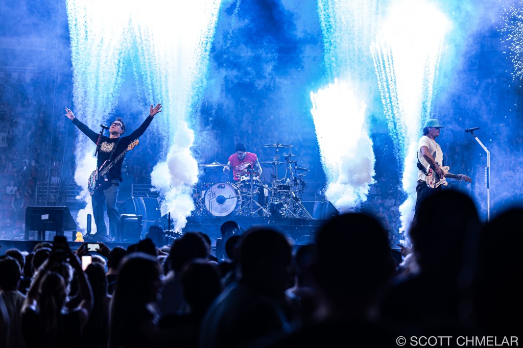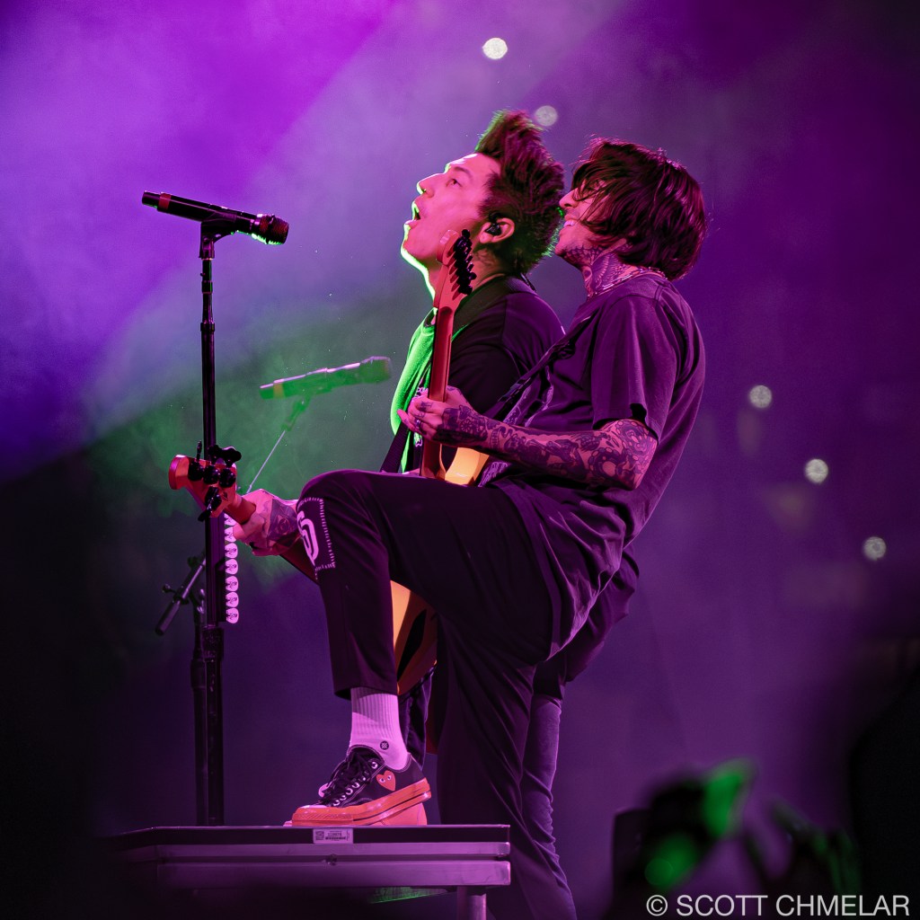 Finally, Blink-182—the iconic trio that practically defined pop-punk—took the stage like the elder statesmen of chaos they’ve become. From the first notes of “Anthem Part Two,” the crowd was whipped into a nostalgic frenzy, transported back to the days of skateboards, angst, and power chords. Mark Hoppus, the eternal joker on bass and vocals, played off Tom DeLonge’s nasally charm and guitar prowess, while Travis Barker, the human drum machine, unleashed a rhythmic assault that shook the arena to its core. Their latest release, One More Time…, is a reflective yet raucous return, capturing the spirit of their early days while embracing the wisdom of their years. Blink-182 proved once again why they’re still kings of the pop-punk universe, delivering a performance that was equal parts tight musicianship and unabashed fun. Get all things Blink at blink182.com.