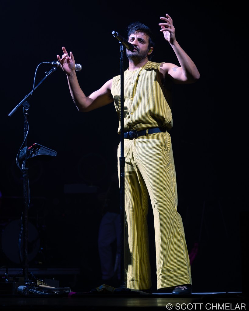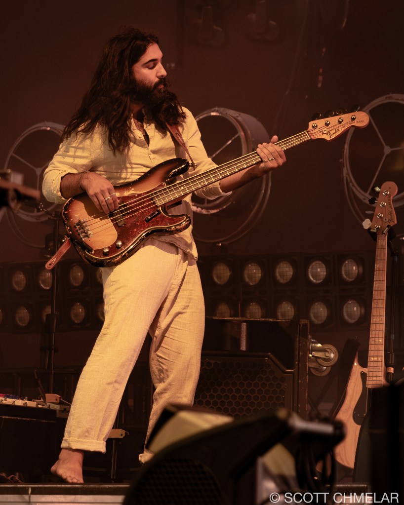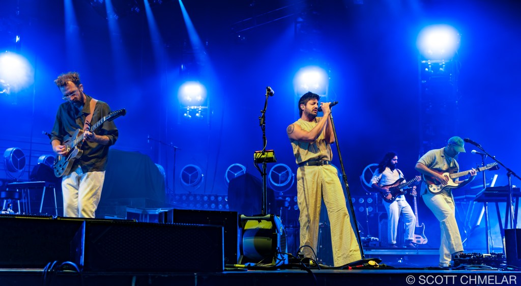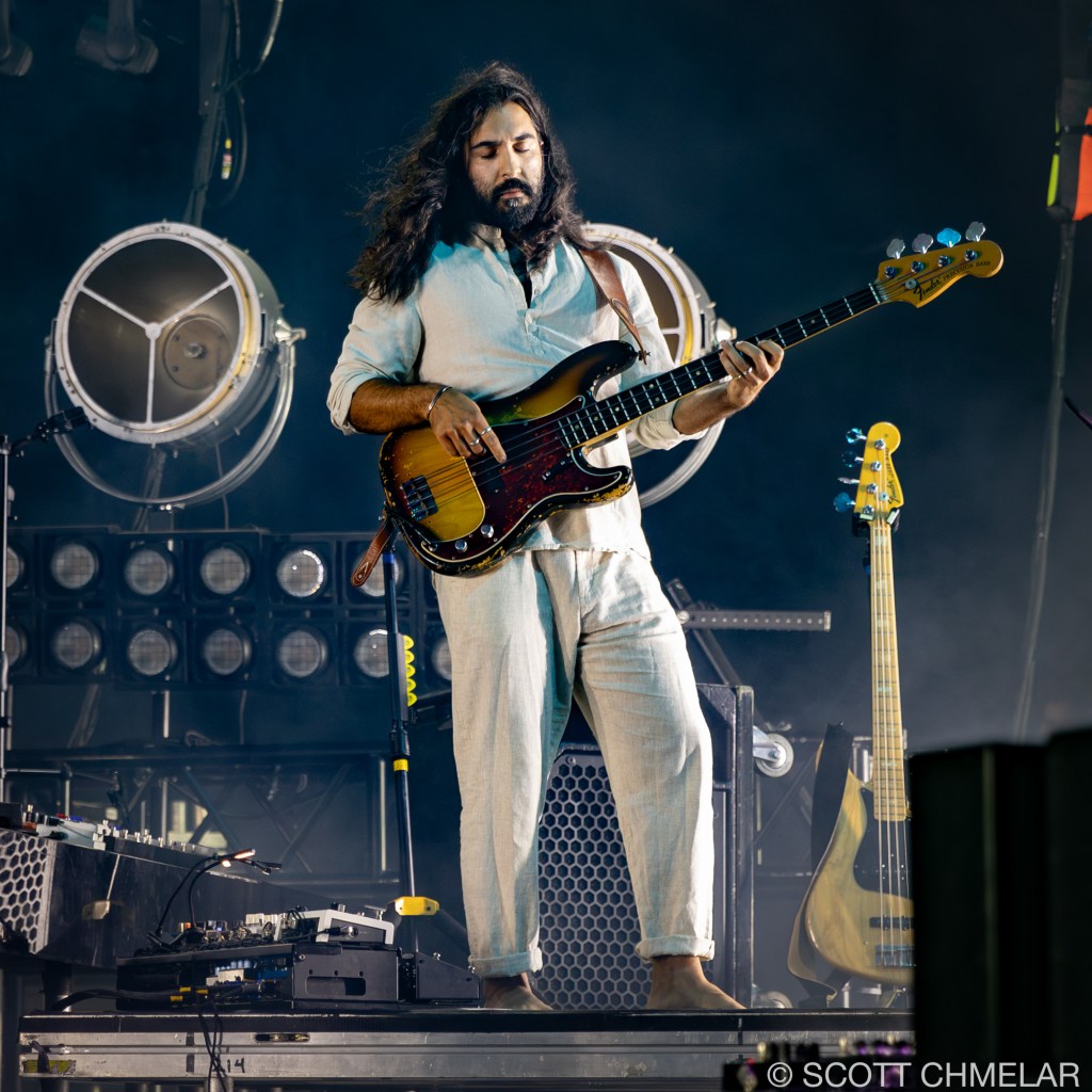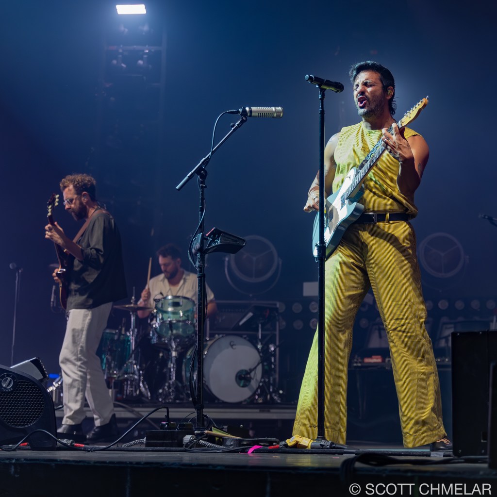 The storm had already made its presence known, with lightning cracking the sky over Coastal Credit Union Music Park at Walnut Creek in Raleigh, NC, on the night of August 3, 2024. Baker and Vlad Holiday, who were set to open the show, saw their sets washed away by the weather, leaving the crowd restless yet resolute. But when the skies cleared, and the stage was prepped, it was Young the Giant from Irvine, California, who emerged first. Their unique blend of indie rock and alternative sounds, driven by the dynamic vocals of Sameer Gadhia, along with the tight musicianship of Jacob Tilley, Eric Cannata, Payam Doostzadeh, and Francois Comtois, brought the night back to life. Their latest release, American Bollywood, had the audience swaying in the humid night air, a brief escape from the earlier storm’s fury.