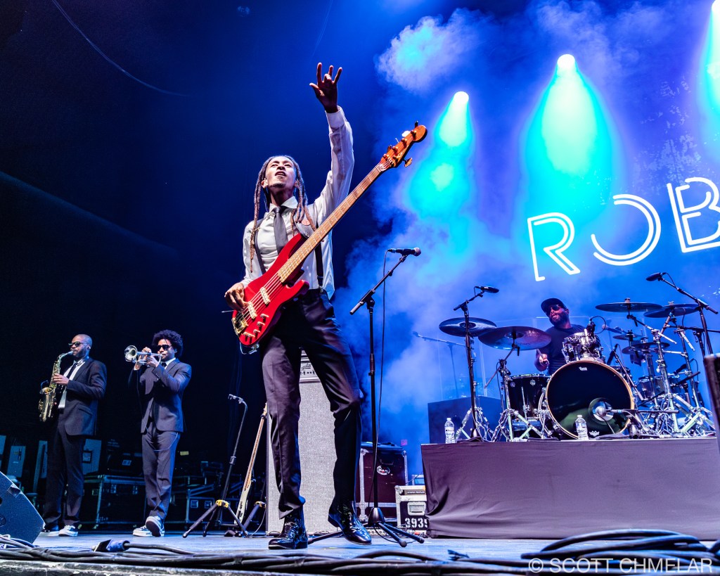 Opening for Boyz II Men was none other than Robin Thicke, a soulful crooner from Los Angeles. Thicke, known for his breakthrough hit “Blurred Lines,” delivered a sultry set of smooth, danceable tunes. Backed by his own band, including session guitarist Kevin Childs, bassist Alex Stevenson, and drummer David Bloom, Thicke had the crowd swaying along. His latest album, On Earth, and in Heaven, was a highlight, along with older hits from his discography like The Evolution of Robin Thicke. You can check out more about his music and tour at Robin Thicke.
