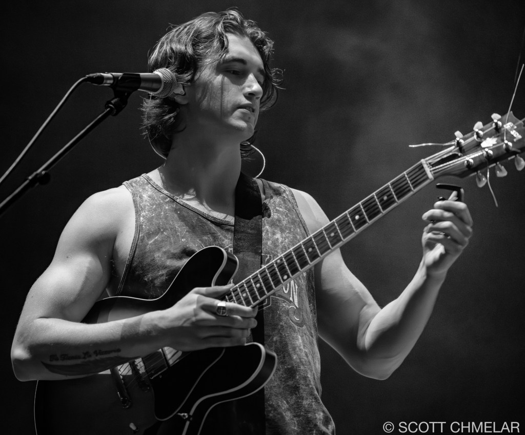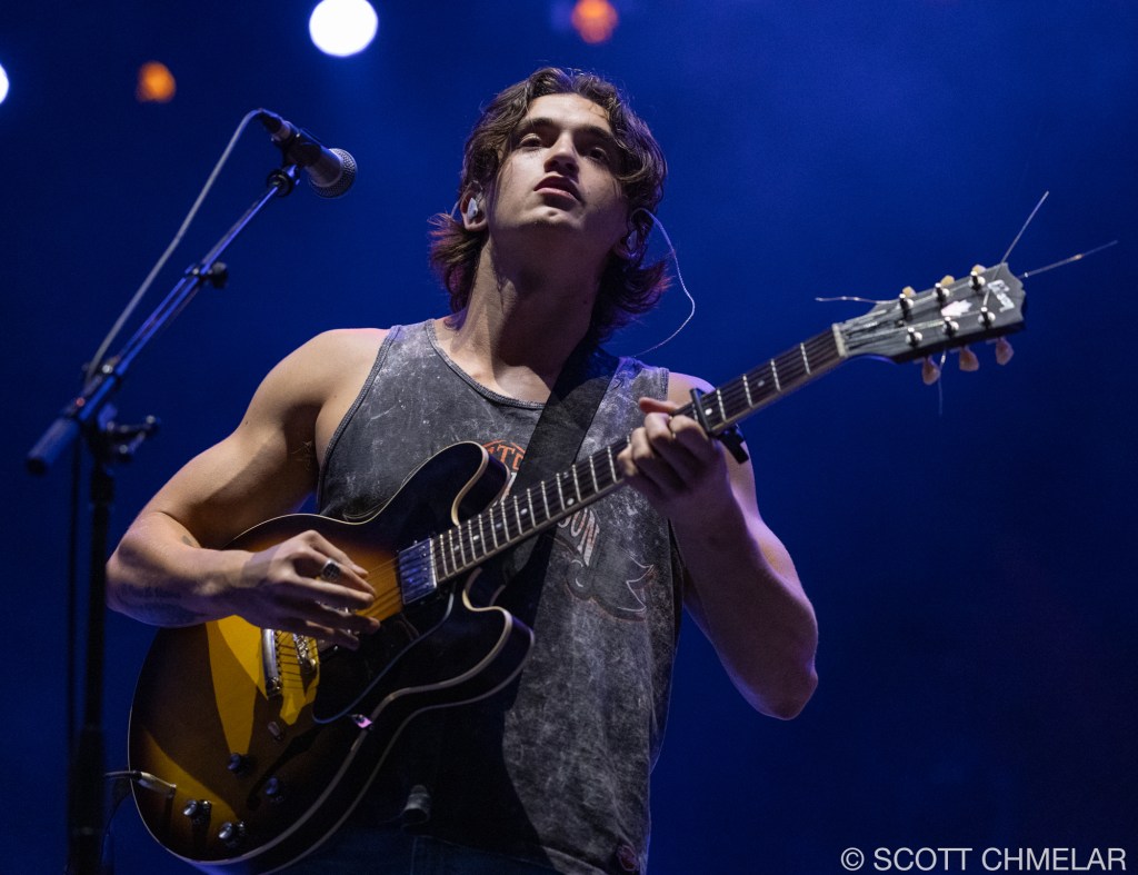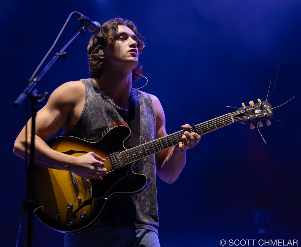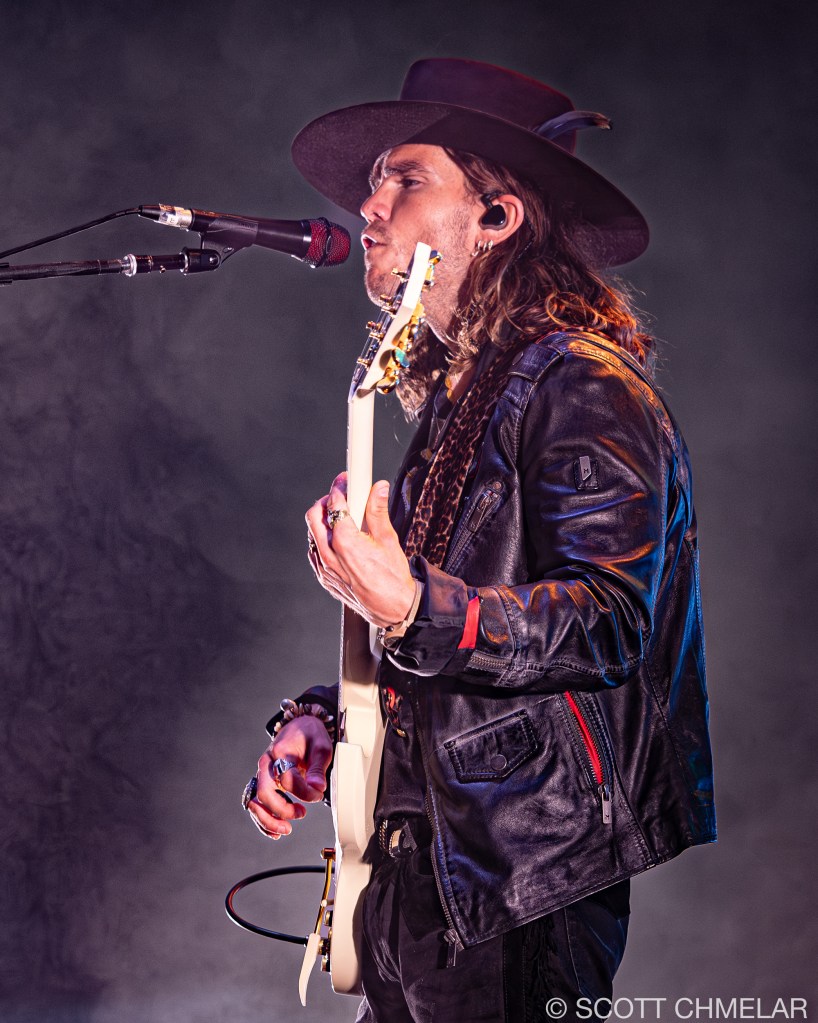 Opening the evening was Texas-born singer-songwriter Chance Peña, who set the mood with his emotional, acoustic-driven folk music. Backed by John Smith on bass and Peter Hayes on drums, Peña’s performance was a highlight, drawing from his EP The Inevitable (2023) and his earlier work anxiety & mixed emotions (2020). The woman vocalist performing with Chance Peña is Abby Peña, Chance’s wife. She often joins him on stage, harmonizing beautifully and adding a deeper emotional layer to his performances. Her vocals provide a rich complement to Chance’s folk sound, enhancing the intimacy of his live shows. Peña’s raw, heartfelt delivery had the crowd captivated from the first strum to the final note. His performance on this tour has been a perfect complement to KALEO’s high-energy rock. For fans looking to revisit the magic, or those wanting to explore more of his music, Peña’s official website offers a full range of his discography, as well as exclusive tour merchandise.