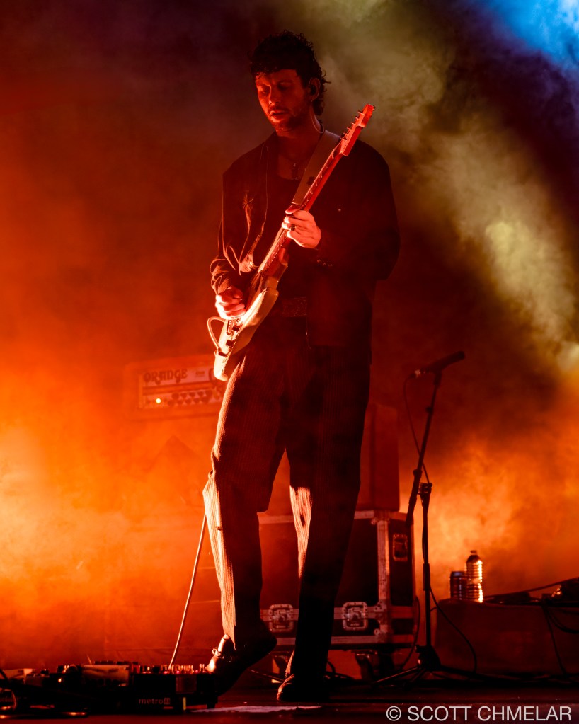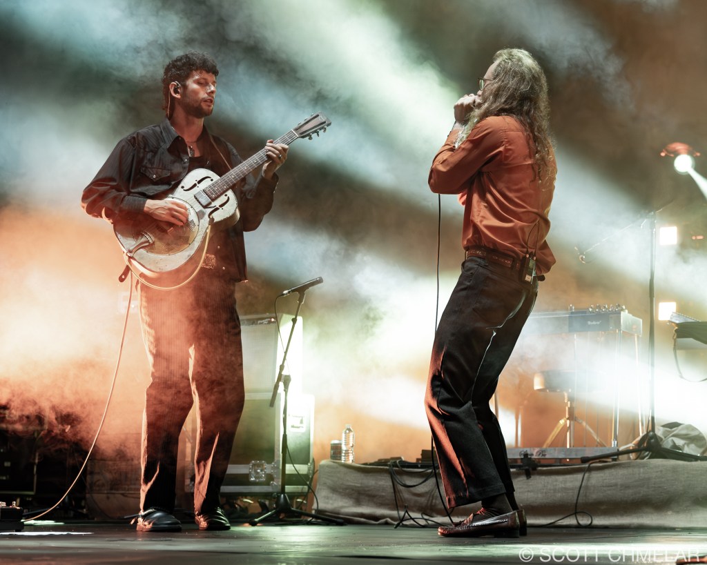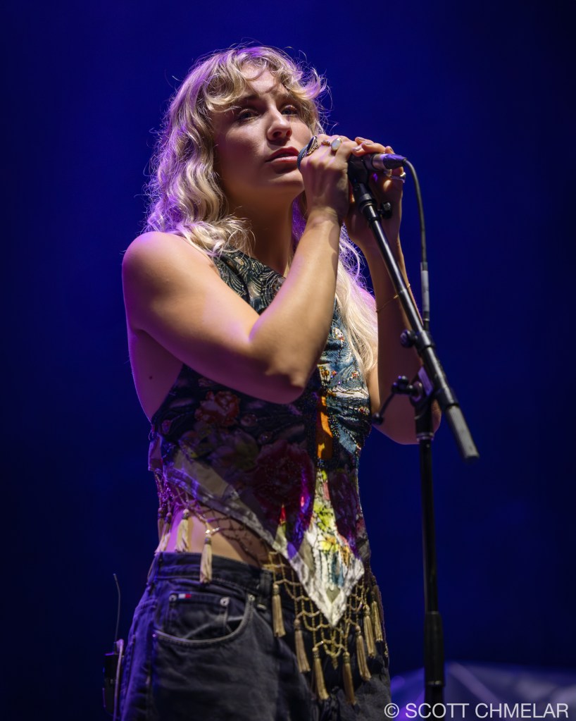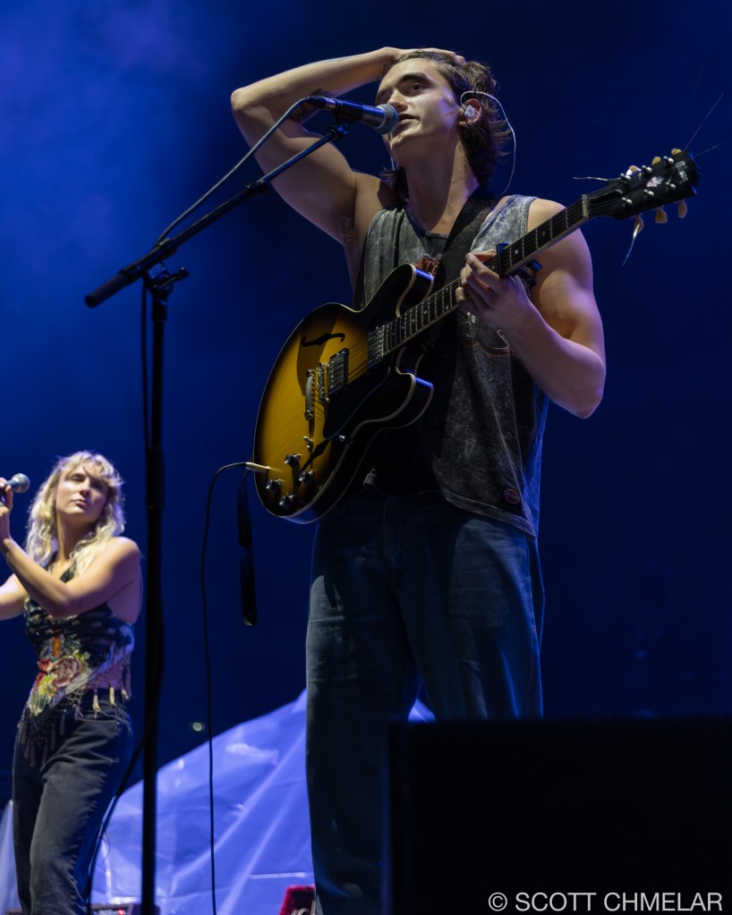 Opening the evening was Texas-born singer-songwriter Chance Peña, who set the mood with his emotional, acoustic-driven folk music. Backed by John Smith on bass and Peter Hayes on drums, Peña’s performance was a highlight, drawing from his EP The Inevitable (2023) and his earlier work anxiety & mixed emotions (2020). The woman vocalist performing with Chance Peña is Abby Peña, Chance’s wife. She often joins him on stage, harmonizing beautifully and adding a deeper emotional layer to his performances. Her vocals provide a rich complement to Chance’s folk sound, enhancing the intimacy of his live shows. Peña’s raw, heartfelt delivery had the crowd captivated from the first strum to the final note. His performance on this tour has been a perfect complement to KALEO’s high-energy rock. For fans looking to revisit the magic, or those wanting to explore more of his music, Peña’s official website offers a full range of his discography, as well as exclusive tour merchandise.