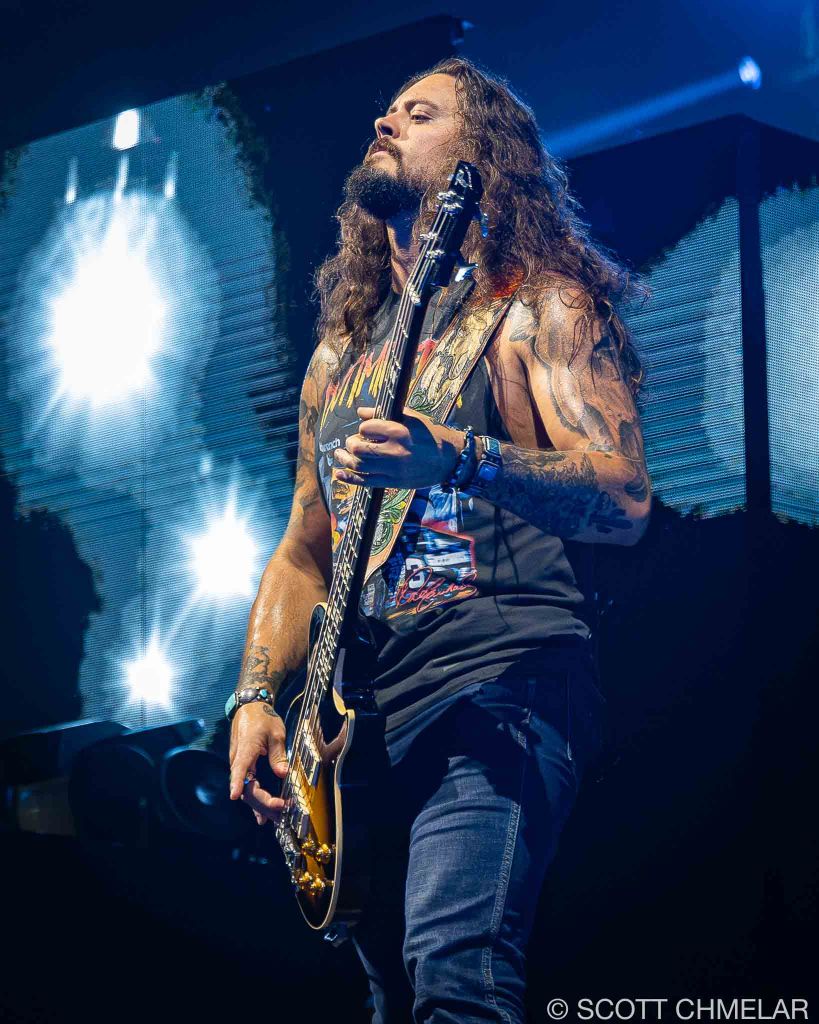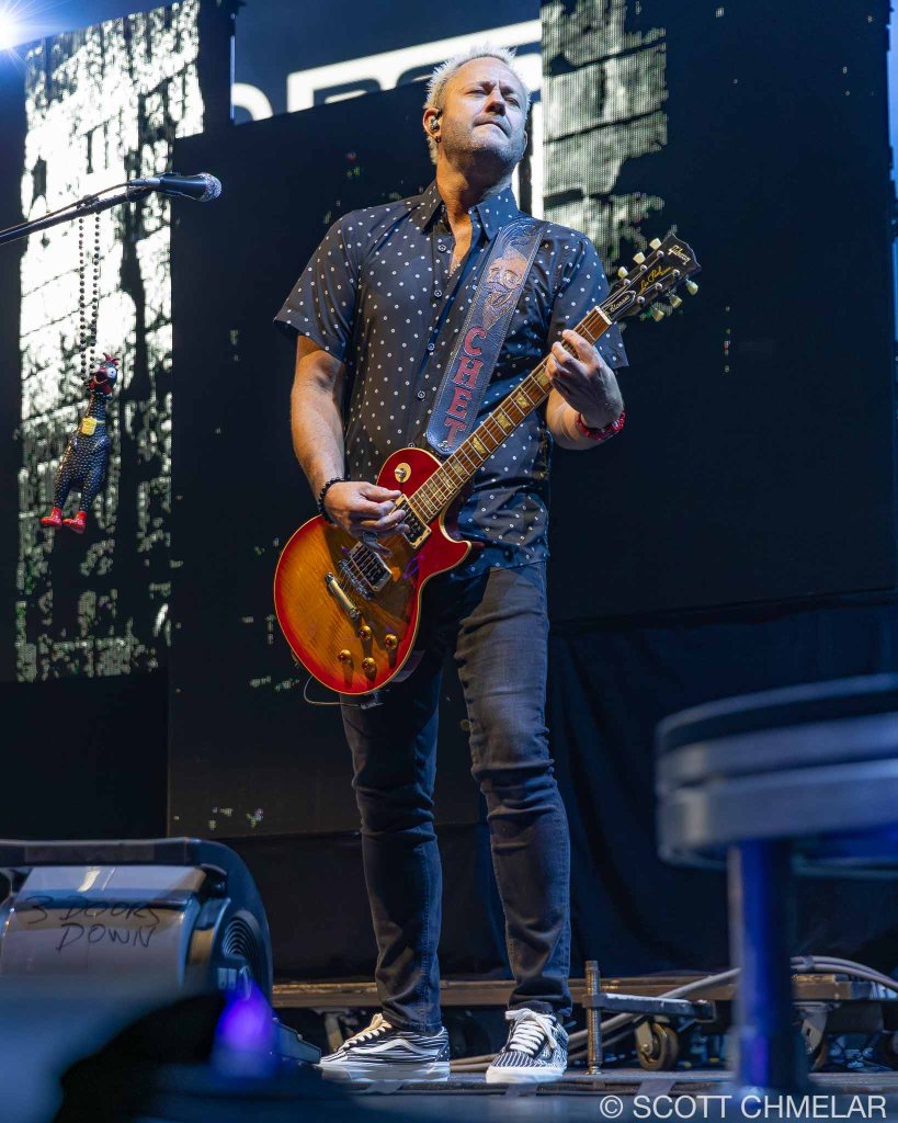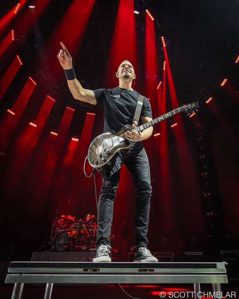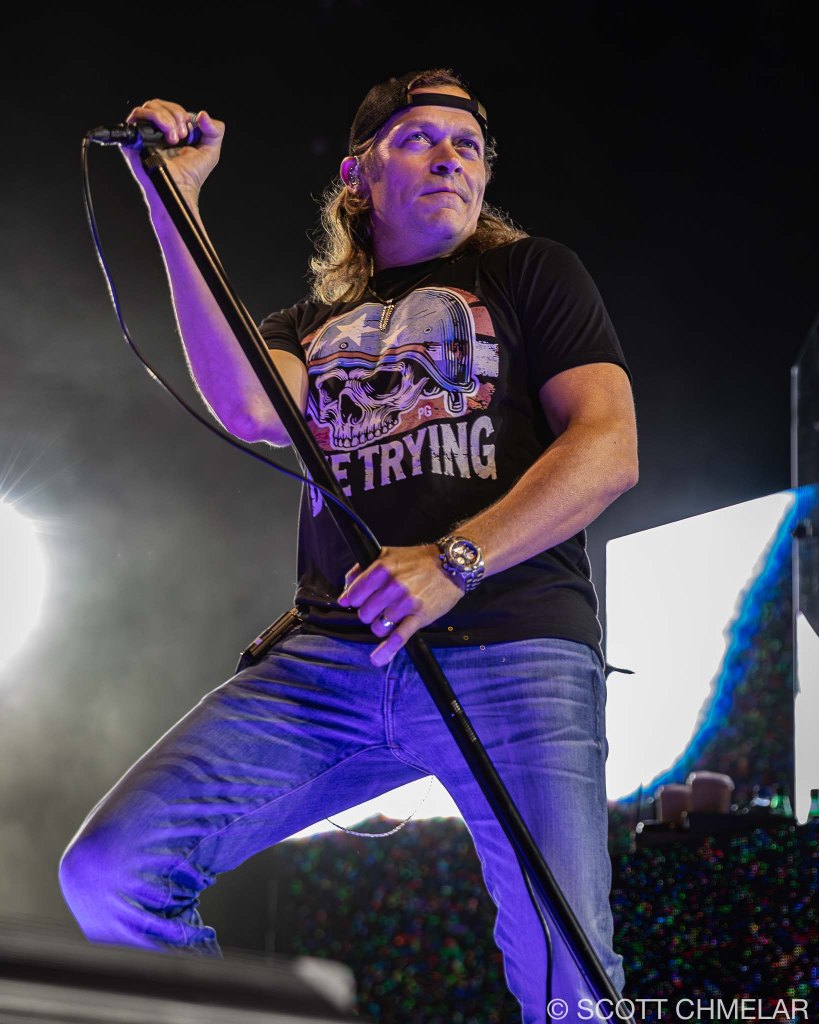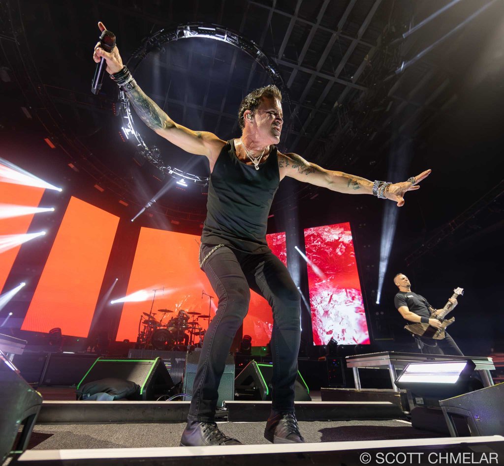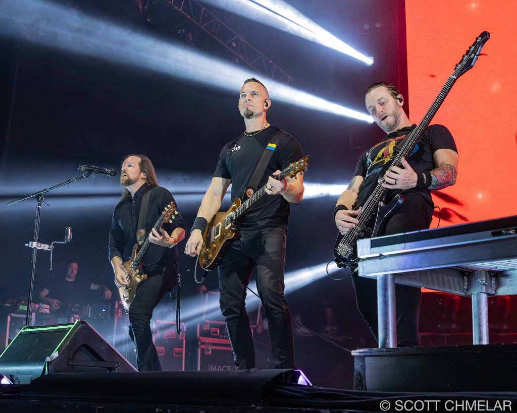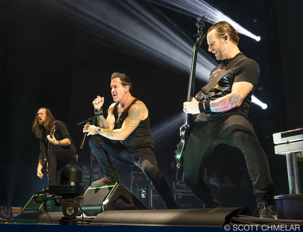 Right before Creed took the stage, 3 Doors Down cranked up the Southern rock energy. Hailing from Escatawpa, Mississippi, they delivered a heartfelt and intense set, opening with their iconic “Kryptonite” and following up with fan favorites like “When I’m Gone” and “Here Without You.” Lead vocalist Brad Arnold led the charge with a voice as commanding as ever, while Chris Henderson and Chet Roberts laid down thick guitar riffs. The rhythm section—Justin Biltonen on bass and Greg Upchurch on drums—kept the crowd bouncing through tracks from The Better Life and Away from the Sun. Fans who’ve followed the band’s journey since the late ’90s weren’t disappointed, and they lined up to grab exclusive tour gear at the merch booth, including limited edition vinyl and apparel. Check out 3 Doors Down’s officialwebsite for more details on their releases and tour dates.