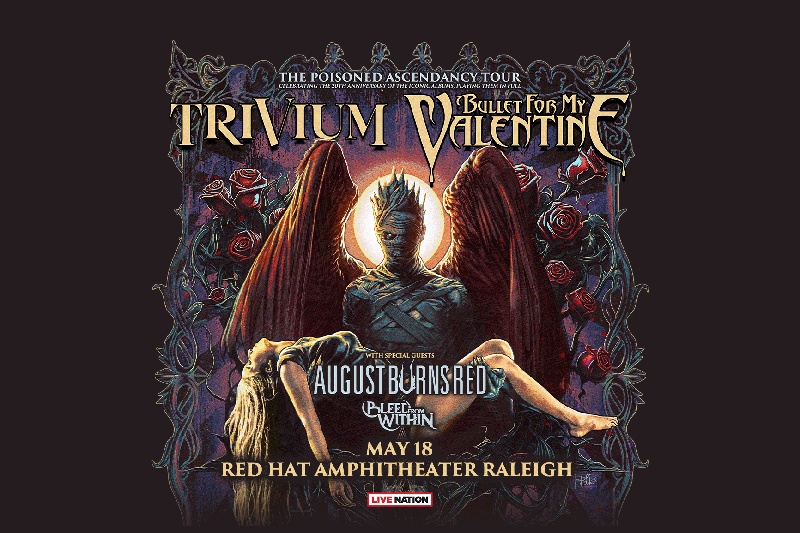Brace yourselves, Raleigh—The Poisoned Ascendancy Tour 2025 is storming the stage at Red Hat Amphitheater on May 18, 2025, and this lineup is nothing short of epic. Trivium and Bullet for My Valentine, two titans of metal, are teaming up to bring a show that’ll be as heavy as it gets, featuring special guests August Burns Red and Bleed From Within. Each of these bands has carved out its own ferocious sound, but together, this tour promises an explosive mix of riffs, headbanging, and pure intensity. So whether you’re here to scream along with Bullet’s classics, feel the power of Trivium’s relentless shredding, or dive into the relentless energy of August Burns Red and Bleed From Within, this is a night of metal mayhem you won’t want to miss. Head to www.trivium.org, www.bulletformyvalentine.com, www.augustburnsred.com, and www.bleedfromwithin.com for tickets and more details.