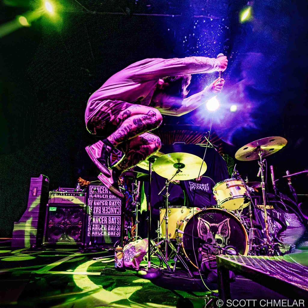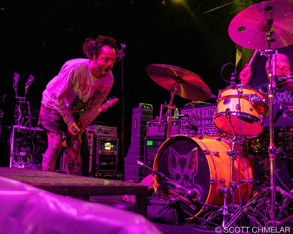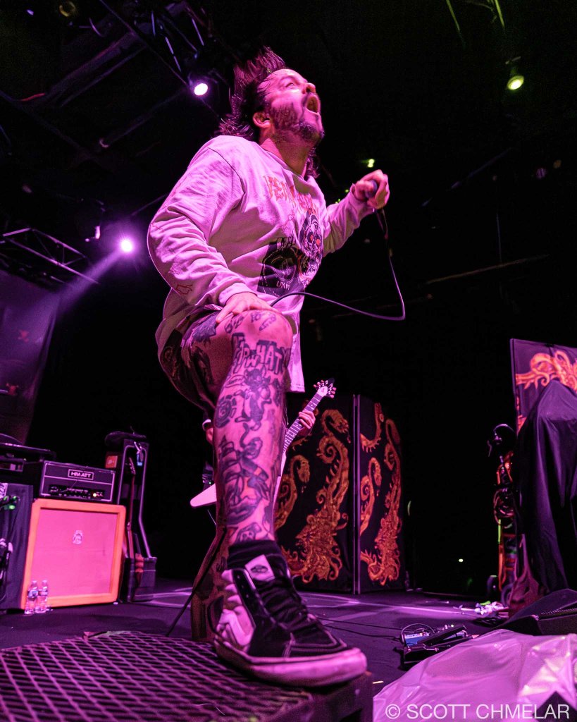 Squid Pisser opened with a filthy sonic battering, a firework of punk nihilism from Los Angeles. Their set was less a warm-up and more a cultural implosion: Tommy Meehan’s jagged guitar scraped against the drums of Seth Carolina like a knife on concrete. If anyone was lulled into comfort, Cancer Bats from Toronto shattered that illusion, storming in with the furious intensity that only true hardcore can deliver. Frontman Liam Cormier howled through tracks from Psychic Jailbreak, grinding out riffs that made walls sweat. Their merch was a spectacle in itself—bloody T-shirts, shredded stickers—relics of the chaos for those who dared take a piece home. For a deeper dive into their sound and upcoming events, explore Cancer Bats’ website and Squid Pisser’s site.