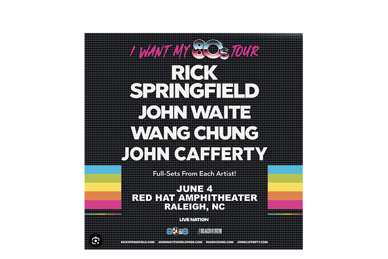 The “I Want My ’80s Tour” is set to electrify Raleigh, NC, on Wednesday, June 4, 2025, at the Red Hat Amphitheater. Headlining the event is the iconic Rick Springfield, whose fusion of guitar-driven power pop and new wave sensibility defined much of the early 1980s rock landscape. Known for the Grammy-winning hit “Jessie’s Girl” and a string of other chart-toppers, Springfield’s crisp production and emotive songwriting have earned him critical recognition as a key figure in mainstream rock. For tour dates and more, visit Rick Springfield’s official website.