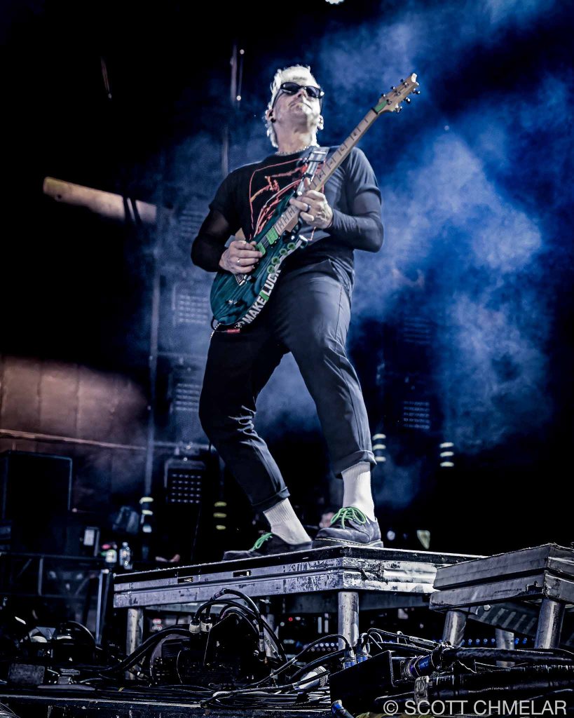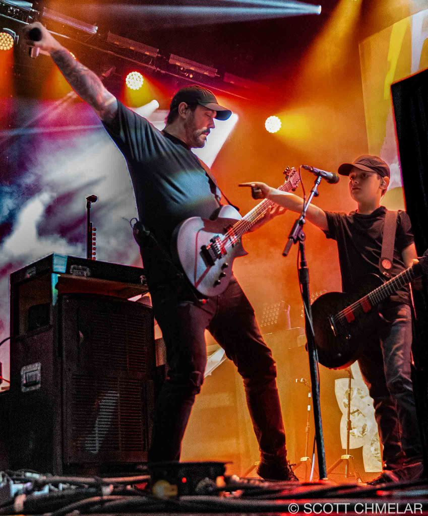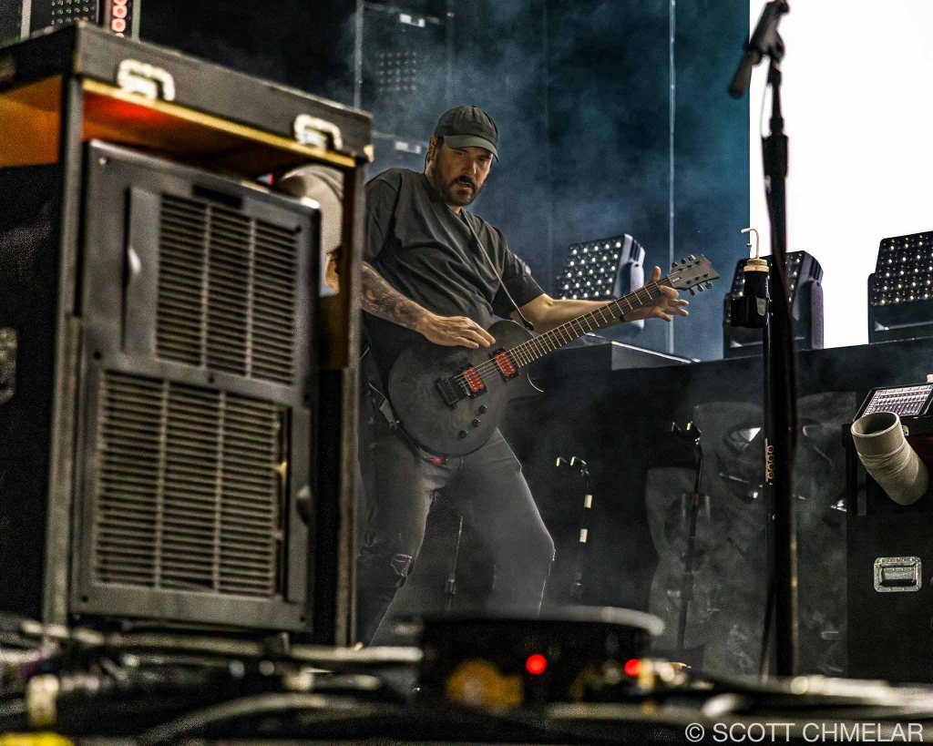 Staind, out of Springfield, Massachusetts, brought a performance that could scrape paint off walls and make grown men cry in the same breath. Aaron Lewis stood center stage with a face like a weathered country road and a voice that slid between guttural growls and hushed confessionals. Mike Mushok’s lead guitar wasn’t flashy—it was a force of nature. Bassist Johnny April held it all together with clockwork low-end rumble, while Sal Giancarelli beat the drums like they owed him money. Their discography hits like a sledgehammer: Tormented (1996), Dysfunction (1999), Break the Cycle (2001), 14 Shades of Grey (2003), Chapter V (2005), The Illusion of Progress (2008), Staind (2011), and Confessions of the Fallen (2023). You want gear? They’ve got hoodies, vinyl, tees, and enough black-on-black designs to outfit an army at staindofficial.com.