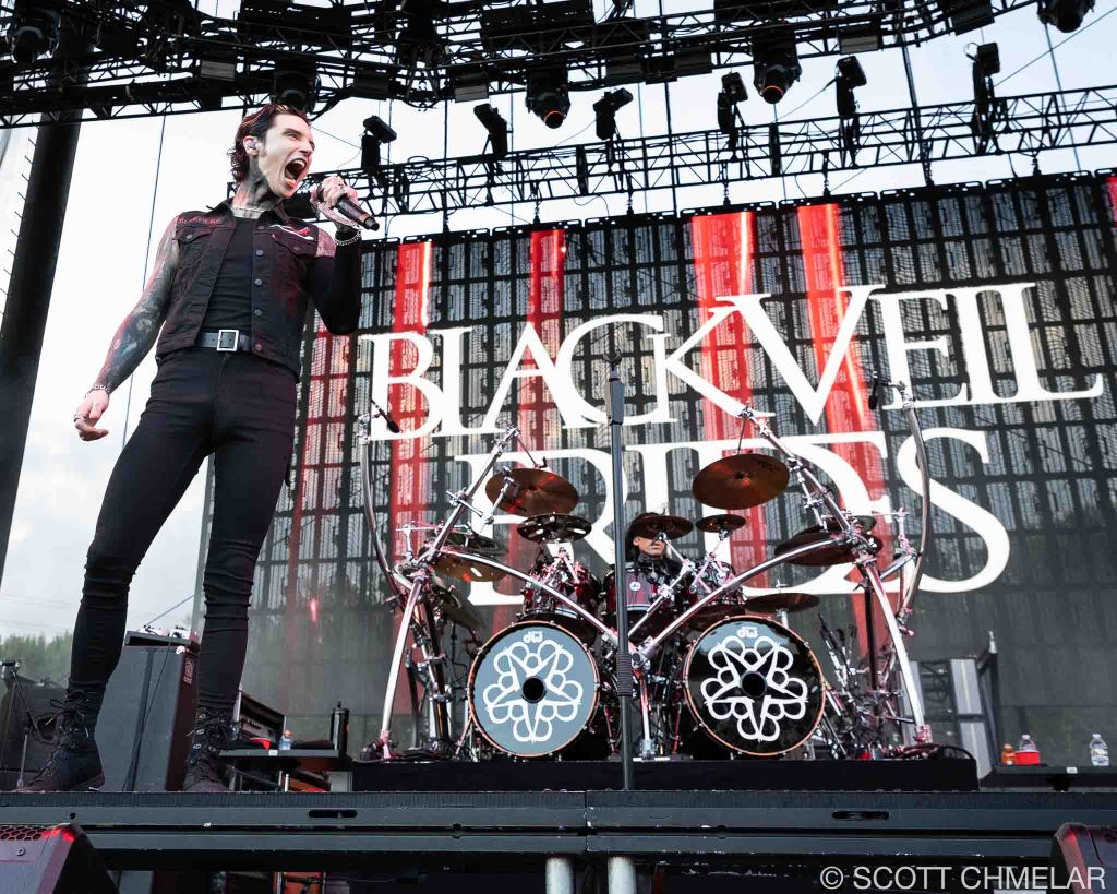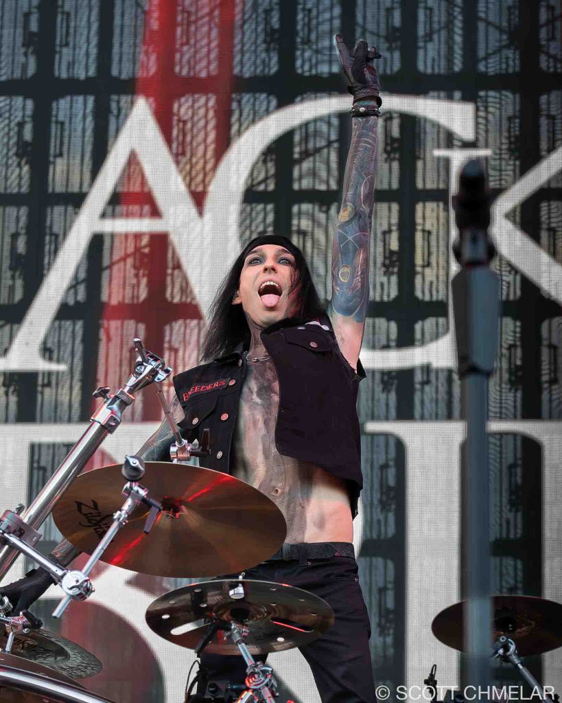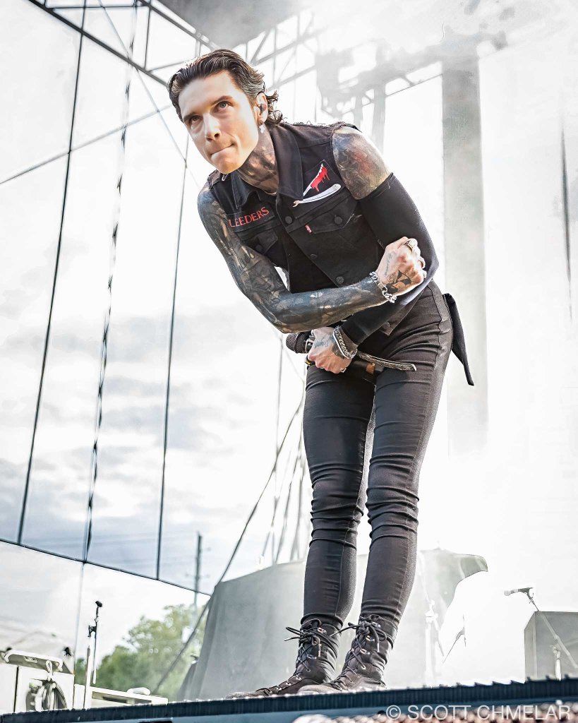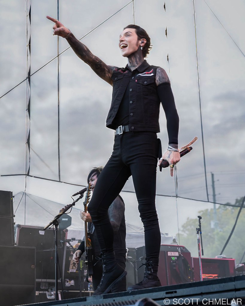 Black Veil Brides (blackveilbrides.net) came out swinging. They’re from Cincinnati, Ohio, and brought their full lineup: Andy Biersack on vocals, Jake Pitts on lead guitar, Jinxx on rhythm guitar and violin, Lonny Eagleton on bass, and Christian Coma on drums. They played the hits—We Stitch These Wounds (2010), Set the World on Fire (2011), Wretched and Divine (2013)—and added cuts from their 2024 EP Bleeders, which takes cues from Sweeney Todd. The fans showed up with painted faces and studded jackets, and the band delivered exactly what they came for. Their merch was theatrical, bold, and sharp-looking—no half-measures.