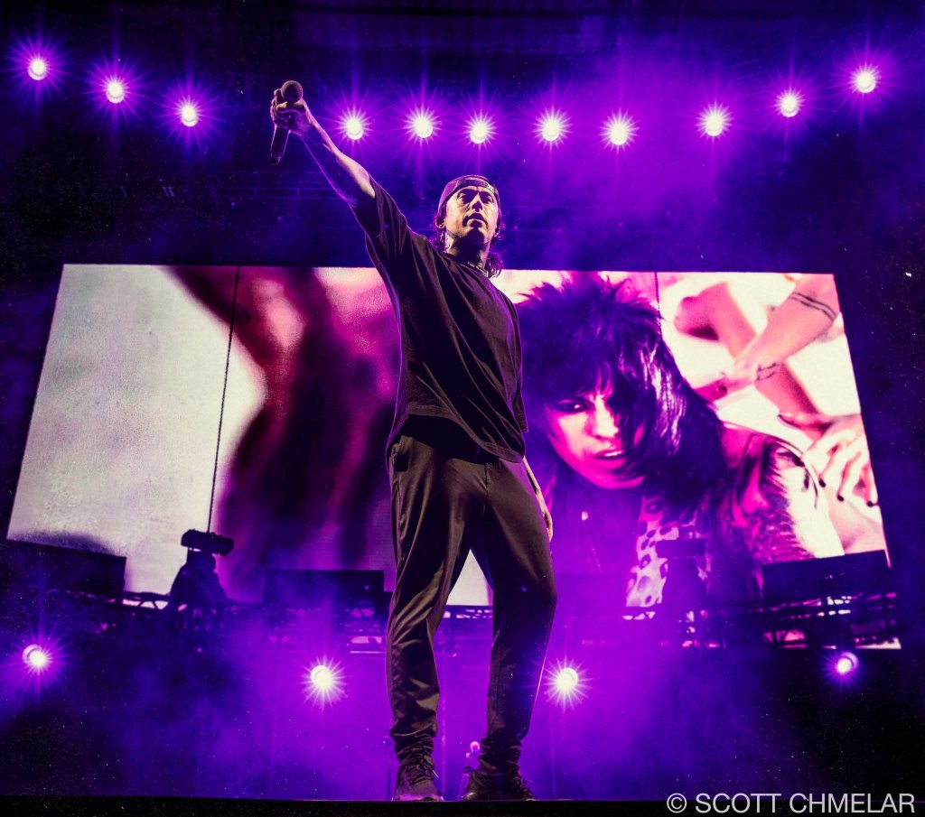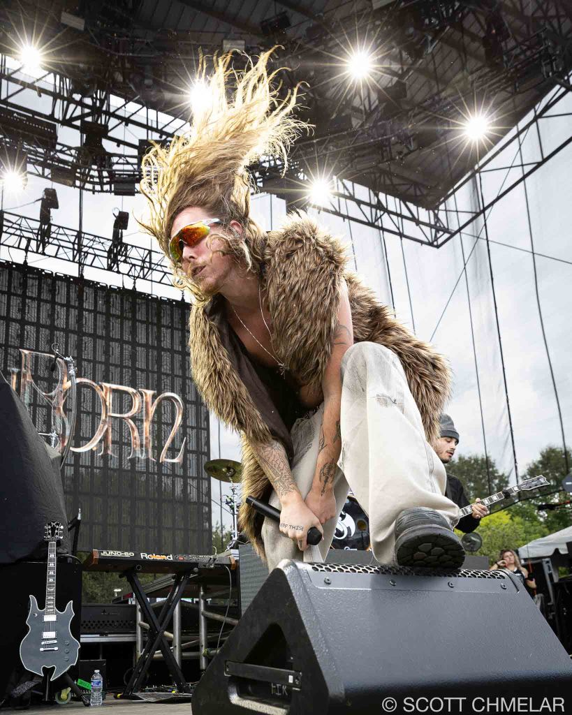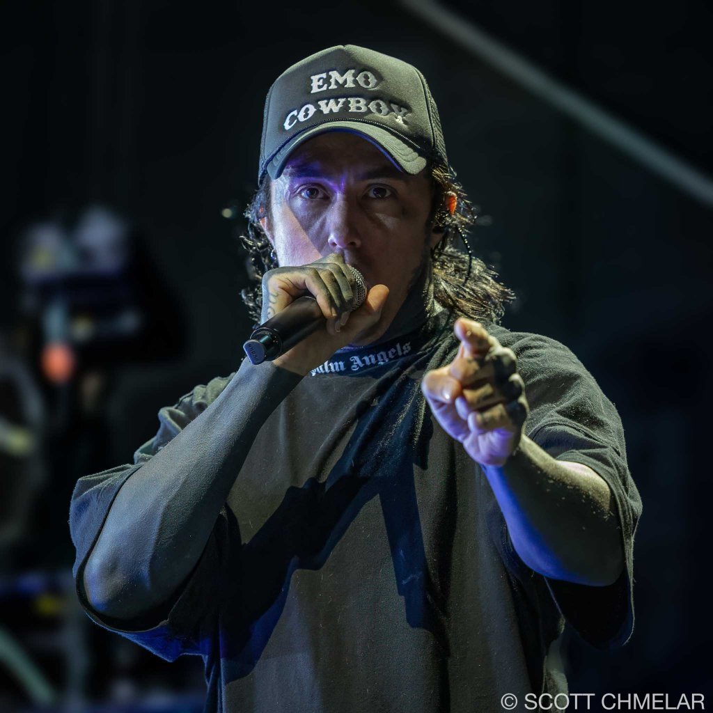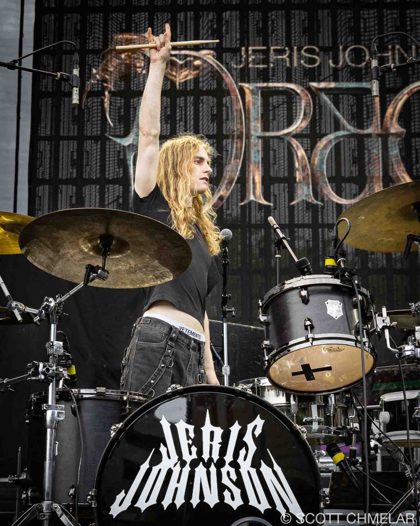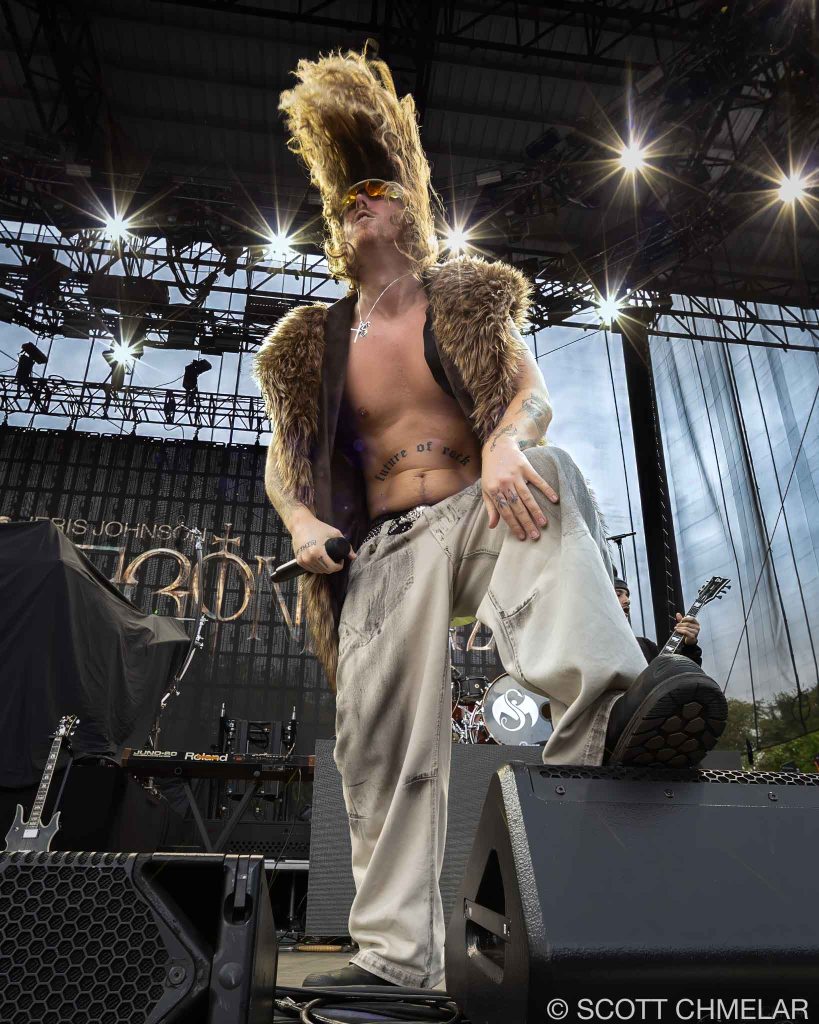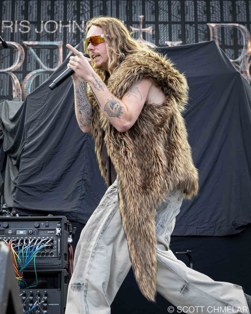 Jeris Johnson (jerisjohnson.com) opened the night with a set that blended rock and hip-hop in a way that sounded like the internet crashing into a mosh pit. From Eugene, Oregon, he performed tracks from My Sword (2021), I Want Blood / I Want Love (2022), and Dragonborn (2024). His music is loud, fast, and always looking for a fight. The crowd caught on fast. His merch matched the vibe—flashy, confident, and aimed at fans who grew up in the digital noise and want to wear it on their sleeves.
