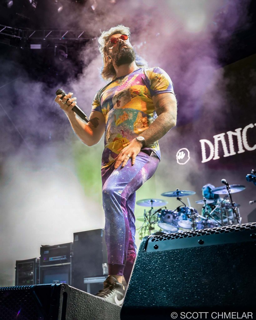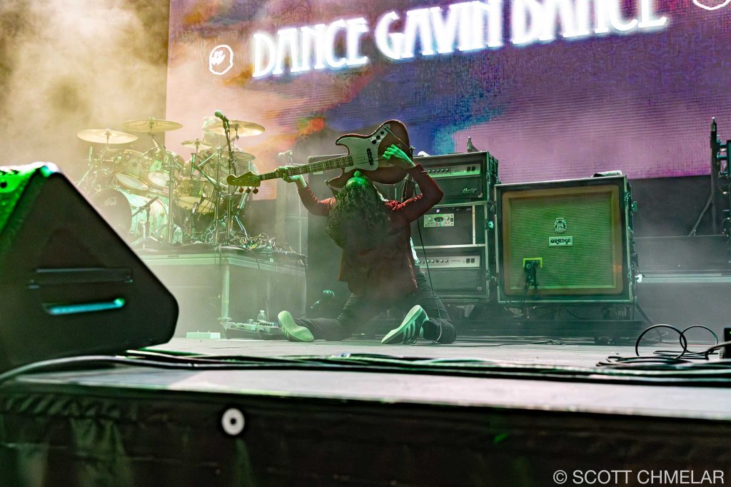 Dance Gavin Dance (dancegavindanceband.com) pushed the evening into more technical territory. They’re from Sacramento, and their sound twists through mathy riffs and soaring hooks without losing its punch. The lineup—Will Swan on lead guitar, Matthew Mingus on drums, Jon Mess on unclean vocals, and Andrew Wells on rhythm guitar and clean vocals—handled the chaos with precision. Albums like Downtown Battle Mountain, Instant Gratification, and Jackpot Juicer made up the meat of the set. Their fans moved like they knew every time change. Their merch leaned on surreal visuals and dense, layered designs that mirrored their music.
