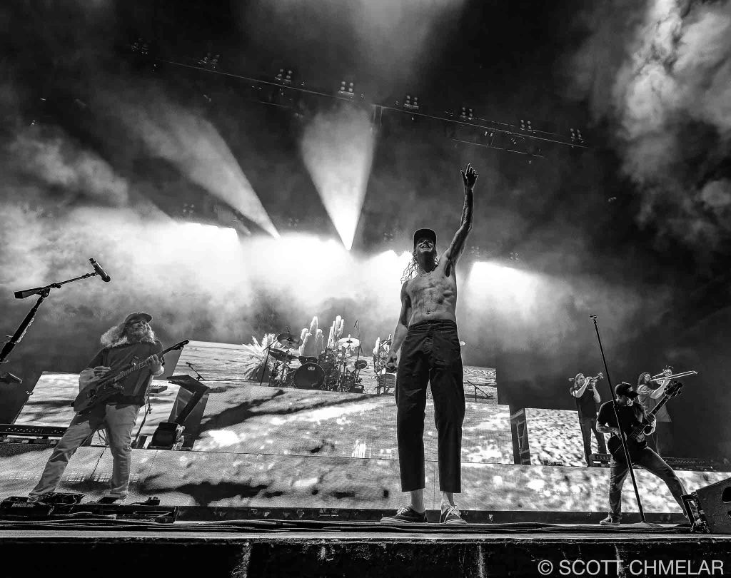 Slightly Stoopid followed with a relentless performance that kept the crowd moving. From Ocean Beach, San Diego, they’ve built a career out of smashing genre lines and delivering unforgettable live sets. Members Miles Doughty (vocals, guitar, bass), Kyle McDonald (vocals, bass, guitar), Ryan Moran “RyMo” (drums), Daniel “DeLa” Delacruz (sax), Andy Geib (trombone), and Paul Wolstencroft (keys) pulled from a heavy catalog including Slightly $toopid, Everything You Need, Closer to the Sun, Chronchitis, Top of the World, and Meanwhile…Back at the Lab. The crowd sang along, and every break between songs was filled with roaring approval. Their official site, slightlystoopid.com, has full tour listings and a solid stash of gear.