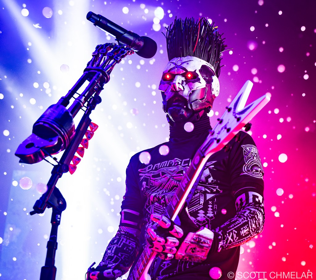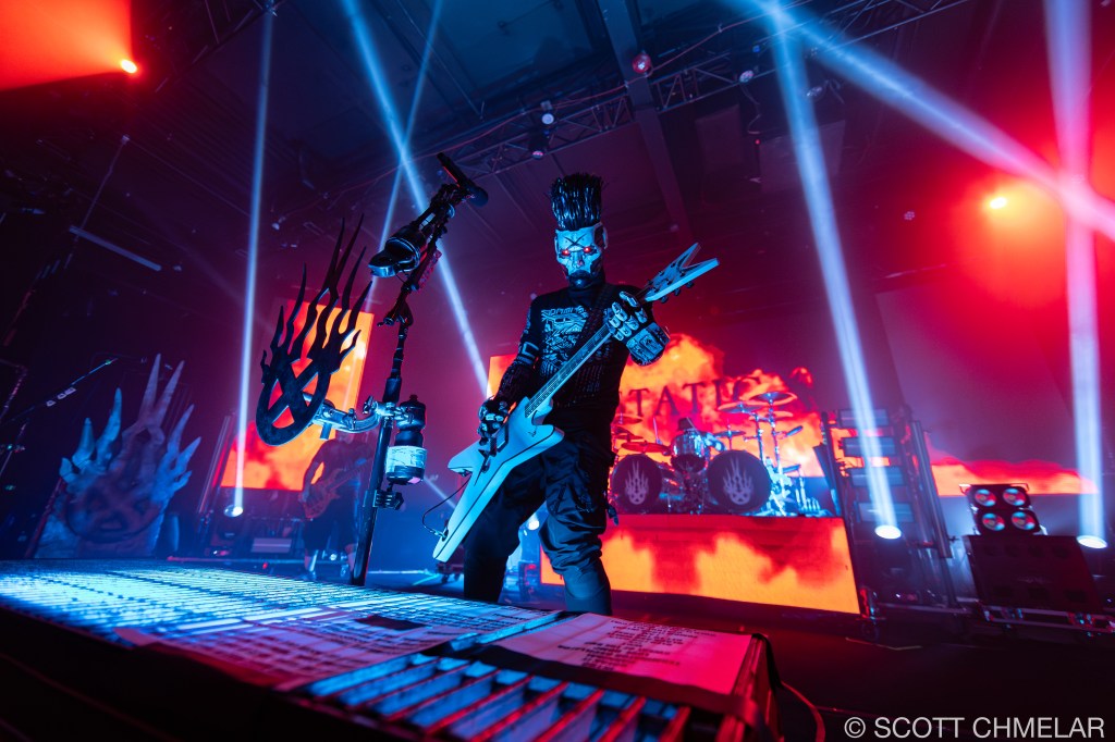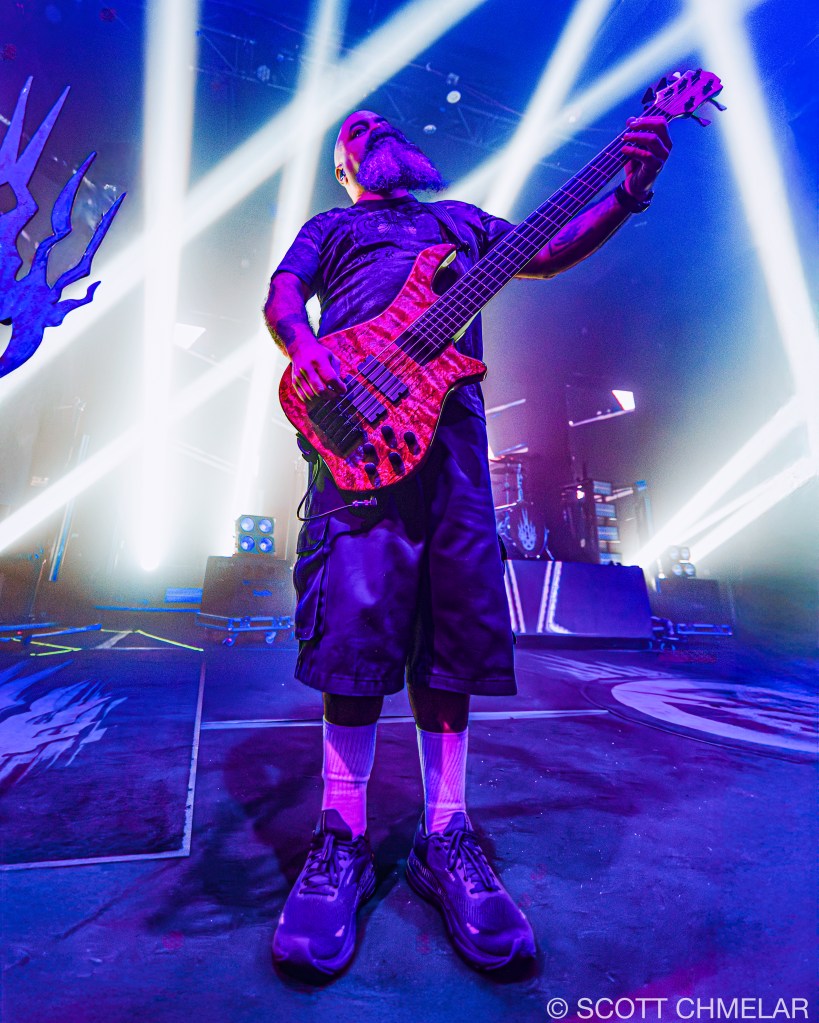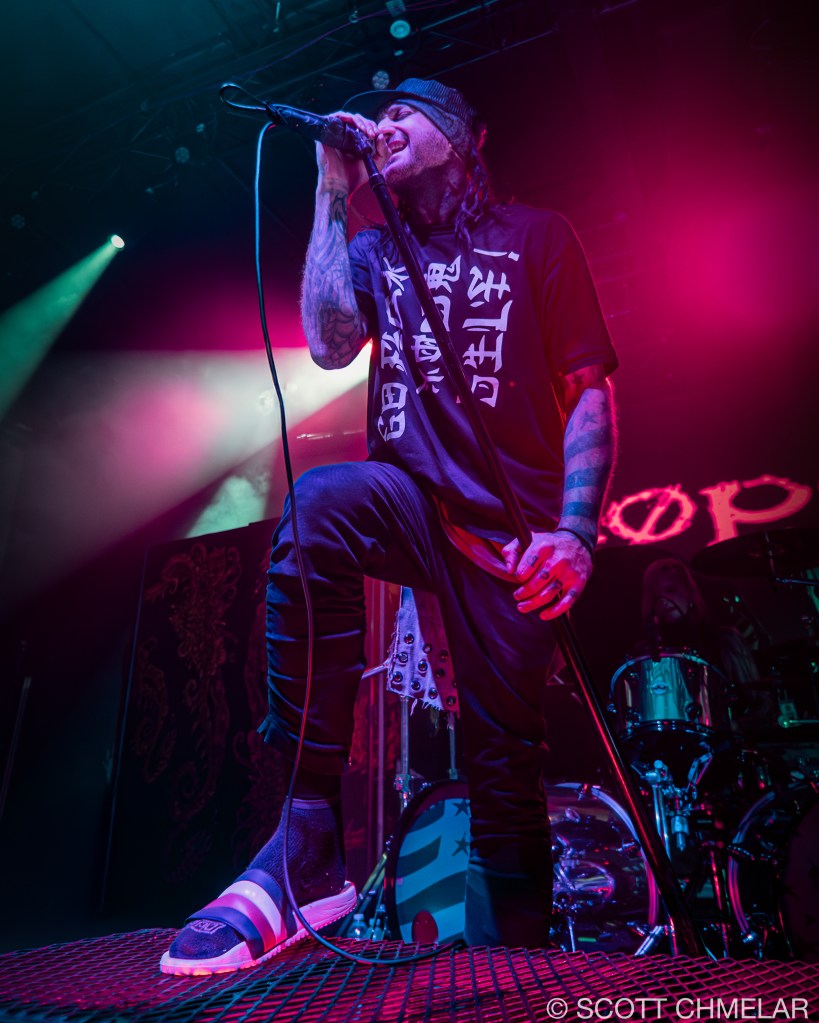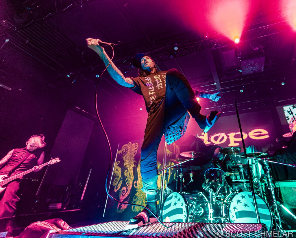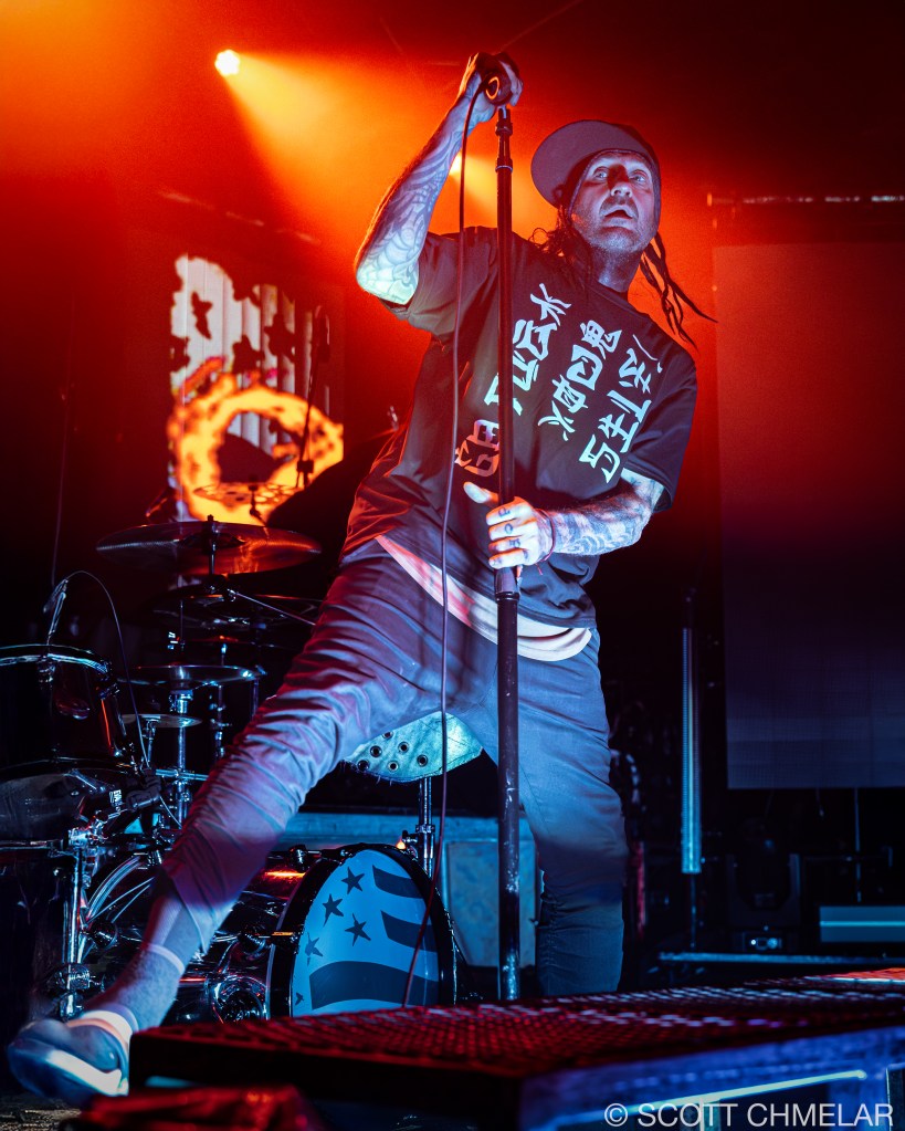 Dope – From Villa Park, Illinois, Dope’s lineup—Edsel Dope (vocals, rhythm guitar), Virus (lead guitar), Niko K (bass), Tommie Phillips (drums)—delivered tight, frenetic nu-metal performances accentuated by industrial textures. The stage setup was minimalist but abrasive, enhanced by strobe lighting from Lumina Lighting Co. and mix handled expertly by John Baker. Fans responded with moshing and synchronized foot-stomping throughout tracks like “Die MF Die” and “Set It Off.” Official merch featured blood-red logo shirts, camo jackets, and bundled remastered Felons and Revolutionaries vinyl. Their primary releases include Felons and Revolutionaries (1999), American Apathy (2005), and Blood Money Part 1 (2016), released via Epic Records and eOne Music. Dope has appeared on Revolver’s “Best Nu-Metal” lists and supports anti-bullying campaigns. Learn more via: dopesounds.com.