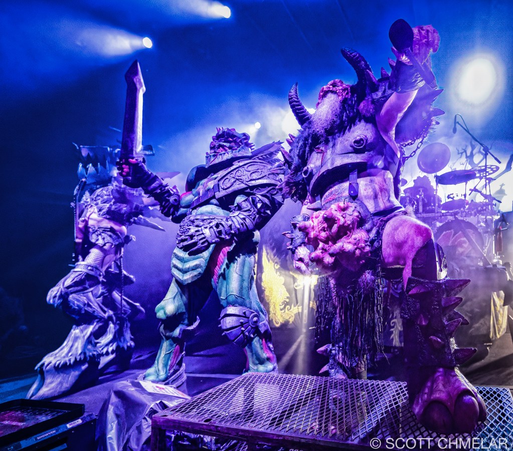 GWAR – Bringing theatrical horror-metal from Richmond, Virginia, the current lineup – Blóthar the Berserker (vocals), Pustulus Maximus (guitar), Bøřçek Yñ (bass), Jizmak Da Gusha (drums) – unleashed grotesque, satirical epic stage scenes. Designed by StageCraft Designs and lit with vivid gore-colors by Lumina Lighting Co., their show featured elaborate costume work: horned masks, faux blood effects, and elaborate stage props. Hardcore fans, known as “The Scumdogs,” cheered wildly as confetti and theatrical slaughter props hit the floor—GWAR’s merch included replica costumes, action figures, and a special 2025 anthology CD. Their discography extends over fifteen studio albums, including This Toilet Earth (1994) and The Blood of Gods (2017), all released under Pit Records. GWAR has earned several Best Live Band awards at Metal Hammer and supports environmental and community outreach via the GWAR Foundation. Official website: gwar.net.