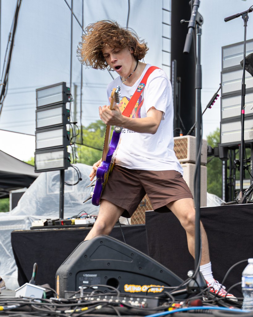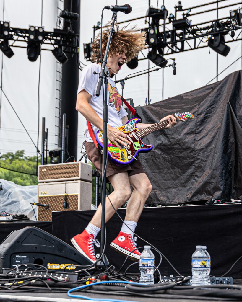 Opening the night was Sitting On Saturn, a rising alt‑rock four-piece from Austin, Texas: Sarah Jackson (lead vocals, guitar), Mike Lewis (guitar), Tina Park (bass), and Rex Harrison (drums). Their spirited 30‑minute set featured their debut EP Cosmic Teeth (Sonic Spatula Records), with fan favorites Backslide and an unreleased jam Satellite Blur. Their visuals were simple—colored stage washes with focused spotlights—and their FOH mix allowed Jackson’s vocals and guitar tones to shine cleanly. Their merch table offered CDs, enamel pins, and tees featuring EP artwork. Committed to supporting music education, they donate part of each tour-shirt sale to Texas school programs. Though they’re just beginning to earn national attention, their strong local following hasn’t gone unnoticed; this marked their first major national support slot. Their official website is sittingonsaturn.com.