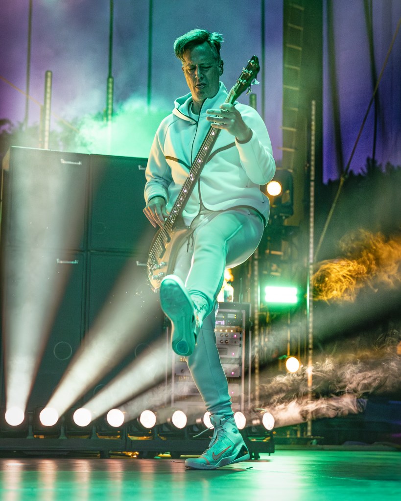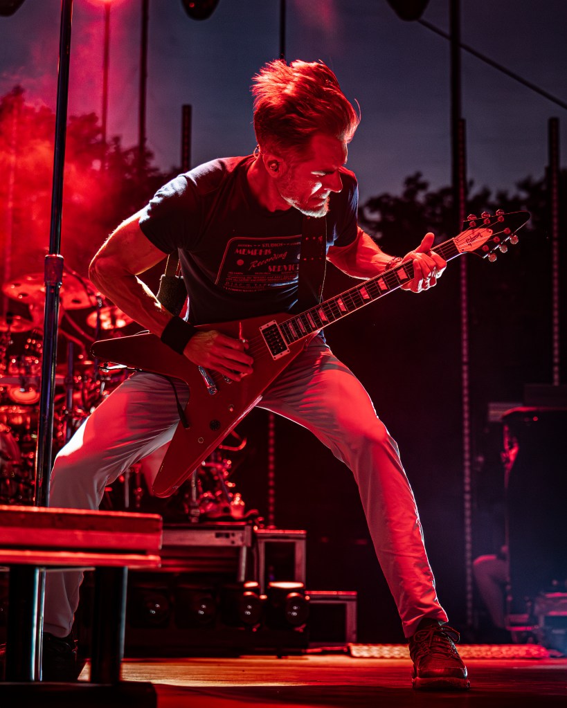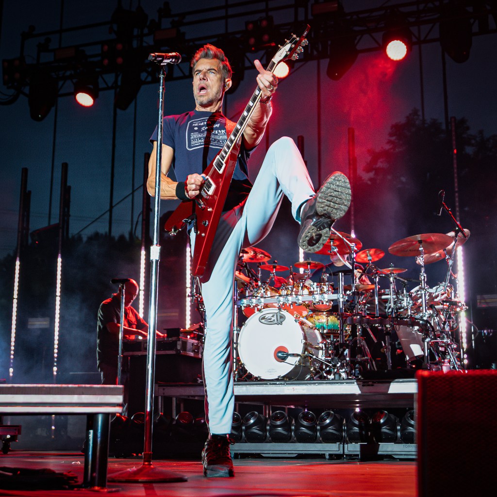 Headlining the Unity Tour 2025 at Raleigh’s Red Hat Amphitheater on June 25, 2025, is Omaha’s own 311, celebrating the 30th anniversary of their self-titled “Blue Album” and promoting their latest record Full Bloom, released October 25, 2024 through SKP. The current lineup features Nick Hexum (lead vocals, rhythm guitar), SA Martinez (vocals, turntables), Chad Sexton (drums, percussion), P‑Nut (bass), and Tim Mahoney (lead guitar). Their set, running about 1½ hours, traced their full discography—from early staples like Down, All Mixed Up and Beautiful Disaster, through Transistor, Soundsystem, From Chaos, to new tracks like Need Somebody and You’re Gonna Get It. Their energy was precisely dialed in; Sexton’s drumming maintained strong rhythm, P‑Nut’s bass provoked cheers, and Nick’s vocals held steady throughout. Stage visuals by a top touring production firm featured synchronized vibrant color washes and dynamic stagescapes, while front-of-house engineer Brian Speiser delivered a clear, full-spectrum mix. Signed to BMG, their 14‑album discography includes Music, Grassroots, Mosaic, and Voyager. Merchandise offerings included Full Bloom vinyl, anniversary tees, and custom posters. The band, known for supporting environmental cleanup via 4Ocean, has earned multiple gold and platinum certifications. The crowd of ecstatic fans sang, jumped, and chanted throughout. Their official website is 311.com.