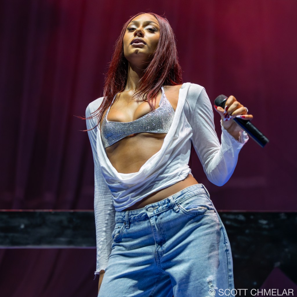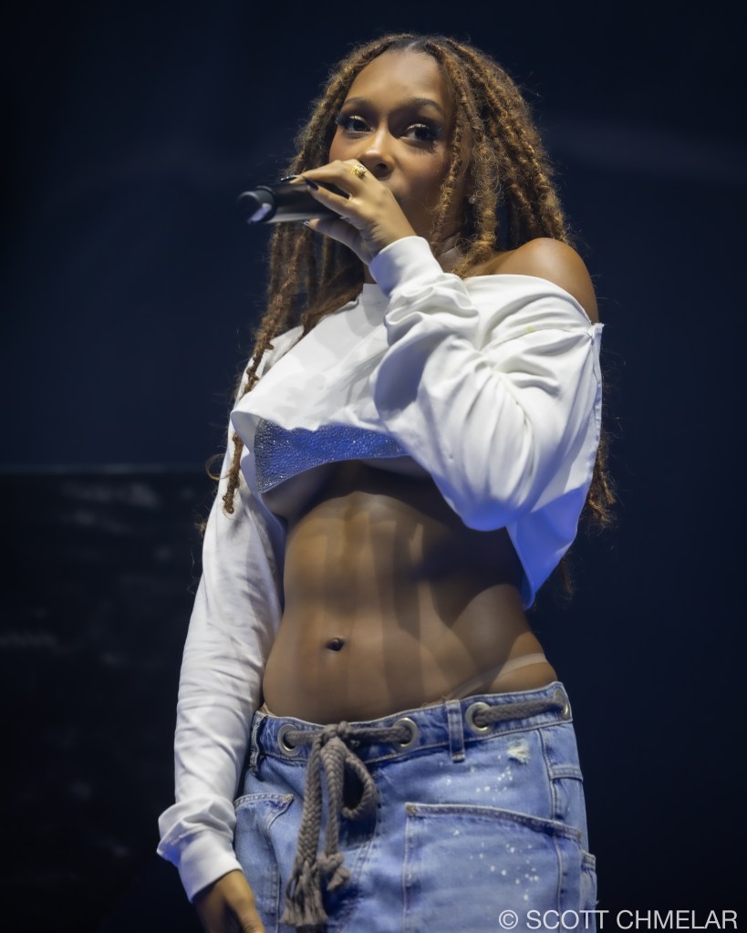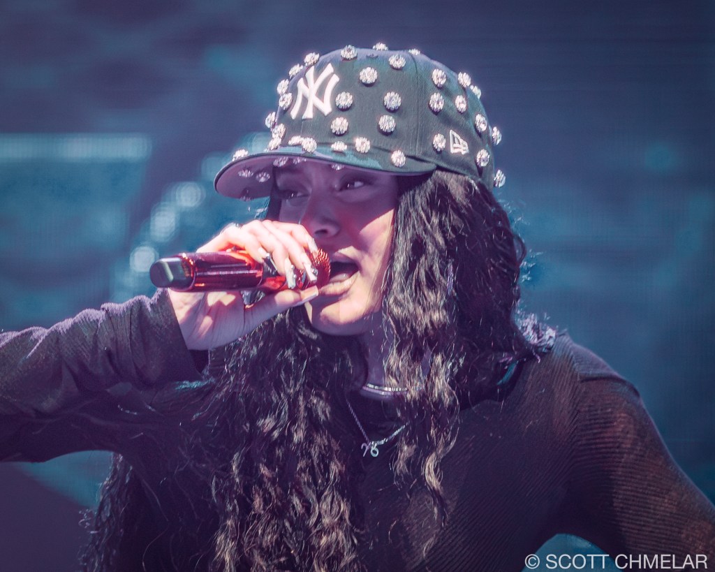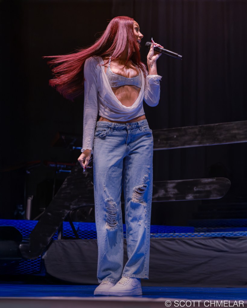 Anycia, the Atlanta-based rapper, opened the Crash World Tour with a confident, unfiltered performance that instantly fired up the crowd. Signed to Epic Records, she began rapping professionally in 2022 and rose to prominence in 2023 when a snippet of her track “So What” went viral online. She released her debut studio album Princess Pop That in 2024, featuring tracks like “Back Outside” and “BRB.” Her set design was stripped down and direct, with dynamic lighting by Illuminate Studios and front-of-house sound mixed by engineer Marcus Liu. Anycia’s stagewear—custom oversized silhouettes, layered gold jewelry, and vintage sneakers—reflected Atlanta street style and authenticity. Her merchandise included bold graphic tees, logo beanies, and Snapbacks. Anycia continues to gain momentum with her raw delivery and unique voice in Southern hip-hop. Offstage, she supports the ATL Youth Initiative, helping foster community-based mentorship in her hometown. Visit instagram.com/anyciaaaaa for music updates and visuals.
