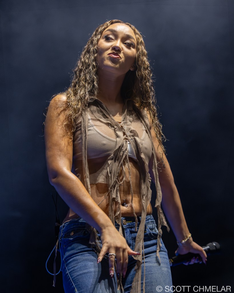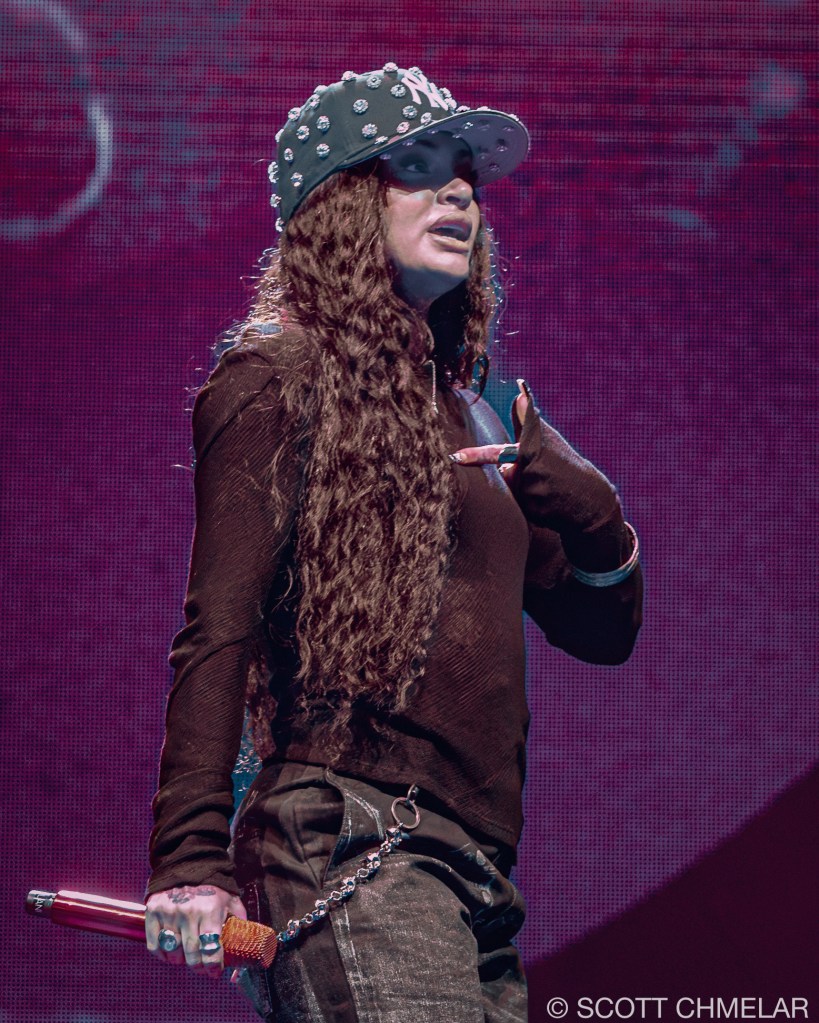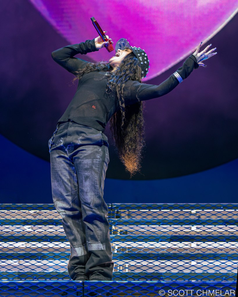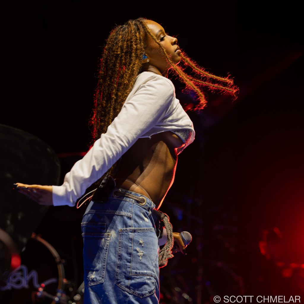 Anycia, the Atlanta-based rapper, opened the Crash World Tour with a confident, unfiltered performance that instantly fired up the crowd. Signed to Epic Records, she began rapping professionally in 2022 and rose to prominence in 2023 when a snippet of her track “So What” went viral online. She released her debut studio album Princess Pop That in 2024, featuring tracks like “Back Outside” and “BRB.” Her set design was stripped down and direct, with dynamic lighting by Illuminate Studios and front-of-house sound mixed by engineer Marcus Liu. Anycia’s stagewear—custom oversized silhouettes, layered gold jewelry, and vintage sneakers—reflected Atlanta street style and authenticity. Her merchandise included bold graphic tees, logo beanies, and Snapbacks. Anycia continues to gain momentum with her raw delivery and unique voice in Southern hip-hop. Offstage, she supports the ATL Youth Initiative, helping foster community-based mentorship in her hometown. Visit instagram.com/anyciaaaaa for music updates and visuals.