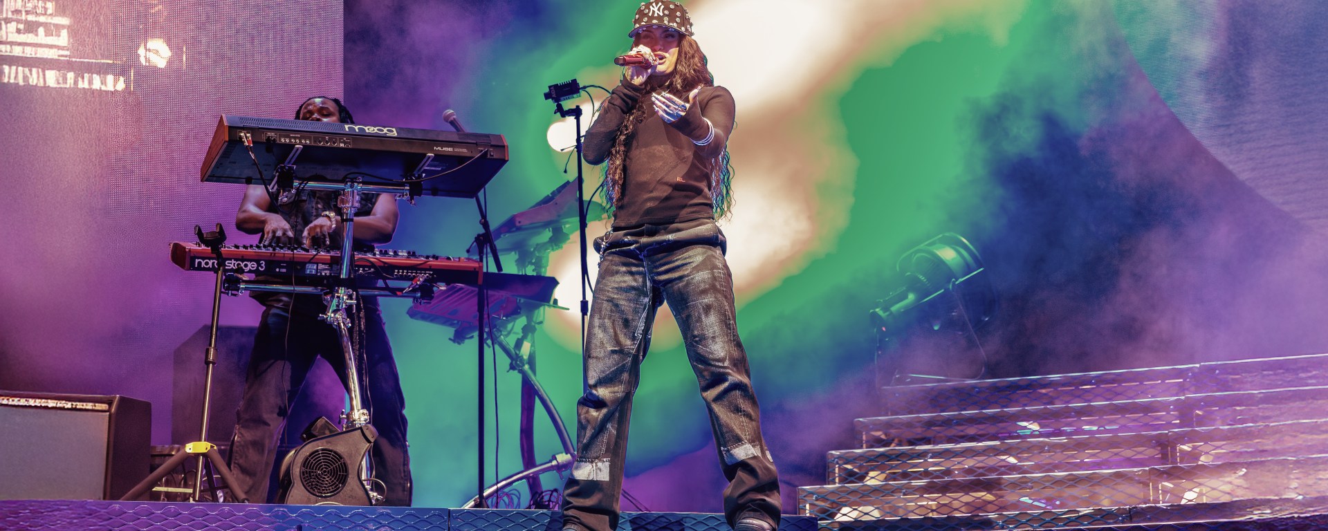 FLO, the British R&B girl group from London (members Jorja Douglas—vocals, Stella Quaresma—vocals, Renée Downer—vocals), opened the show with vibrant harmonies, rolling choreography, and on‑point vocal runs that had the crowd buzzing before the headliner came on. Signed to Island Records, FLO promotes their debut album Access All Areas (2024), following EPs The Lead (2022) and 3 of Us (2023); their singles “Cardboard Box,” “Check,” and “Bending My Rules” topped U.K. charts. Their stage setup featured sleek visuals by StageCraft UK, dramatic uplighting by Prism Design, and FOH engineer Samira Hughes. Fashion was sharp and cohesive—matching athleisure-infused stage costumes reflecting their album art palette. The trio’s merchandise included deluxe vinyl, signed posters, and branded tote bags. FLO has been recognized with BET Awards and MOBO nominations, and supports youth music charities like Youth Talent UK. Explore more at weareflo.com.