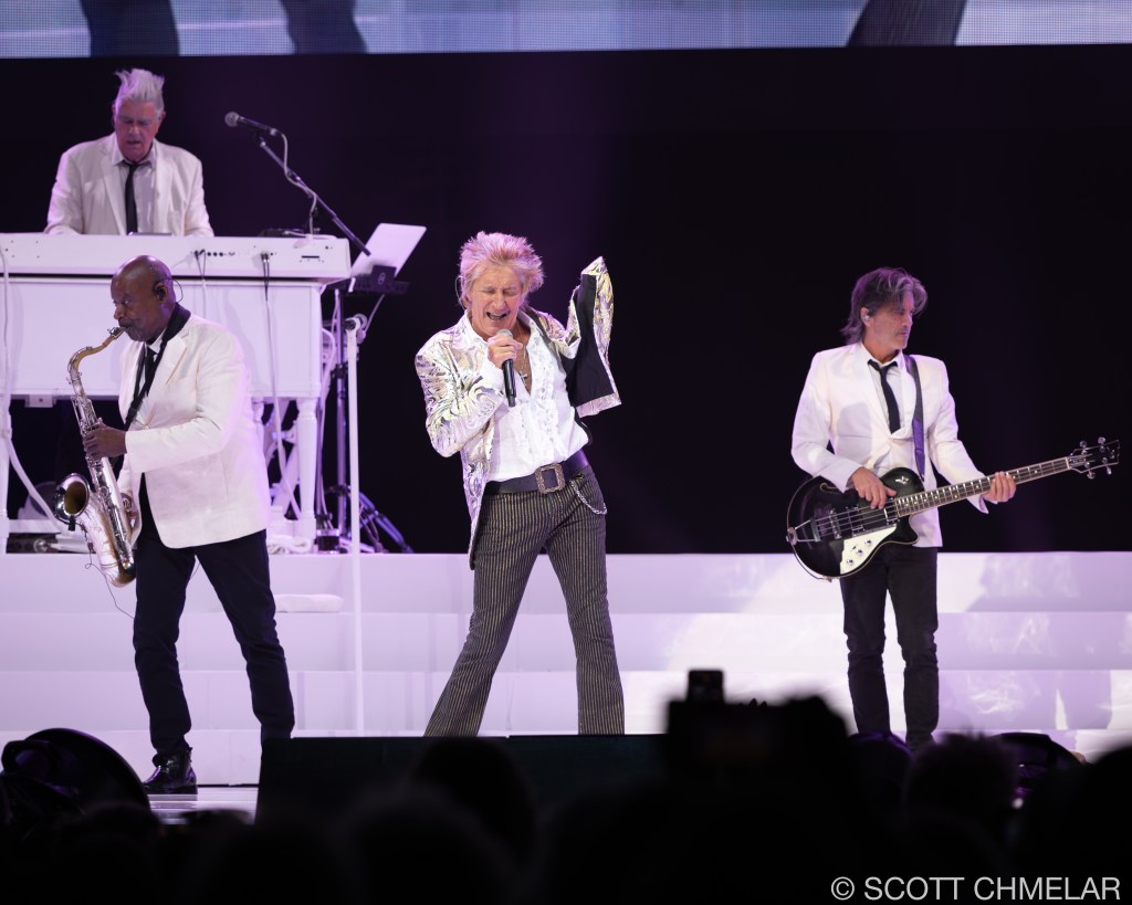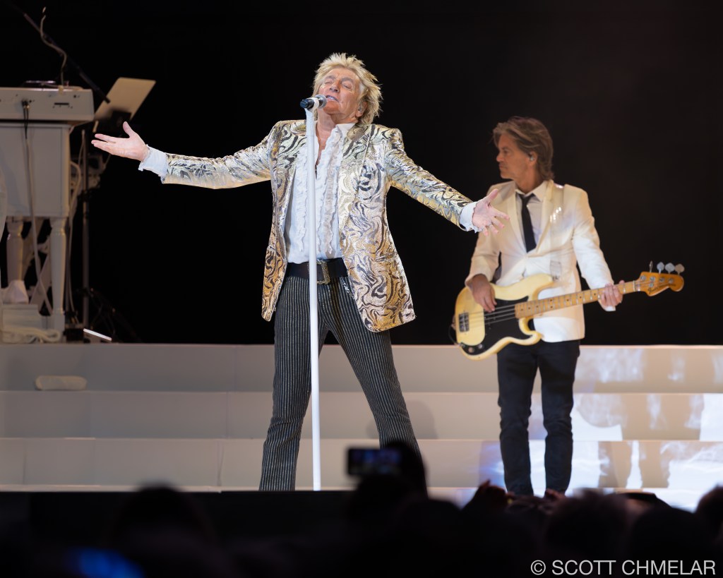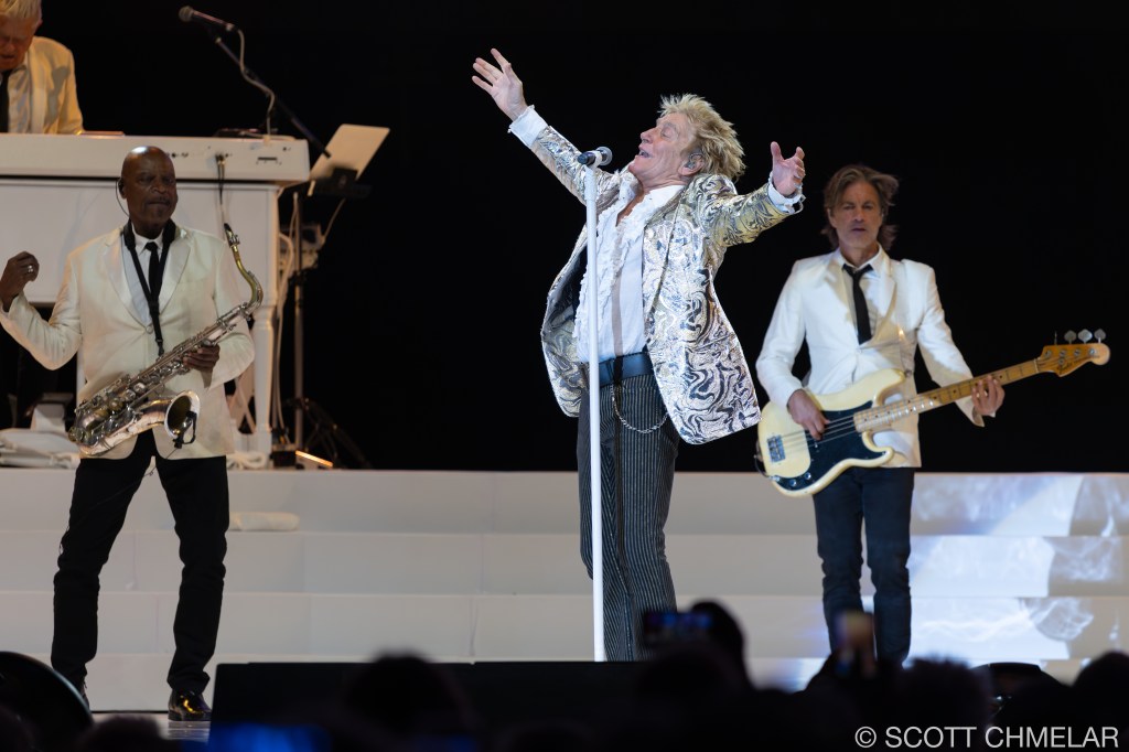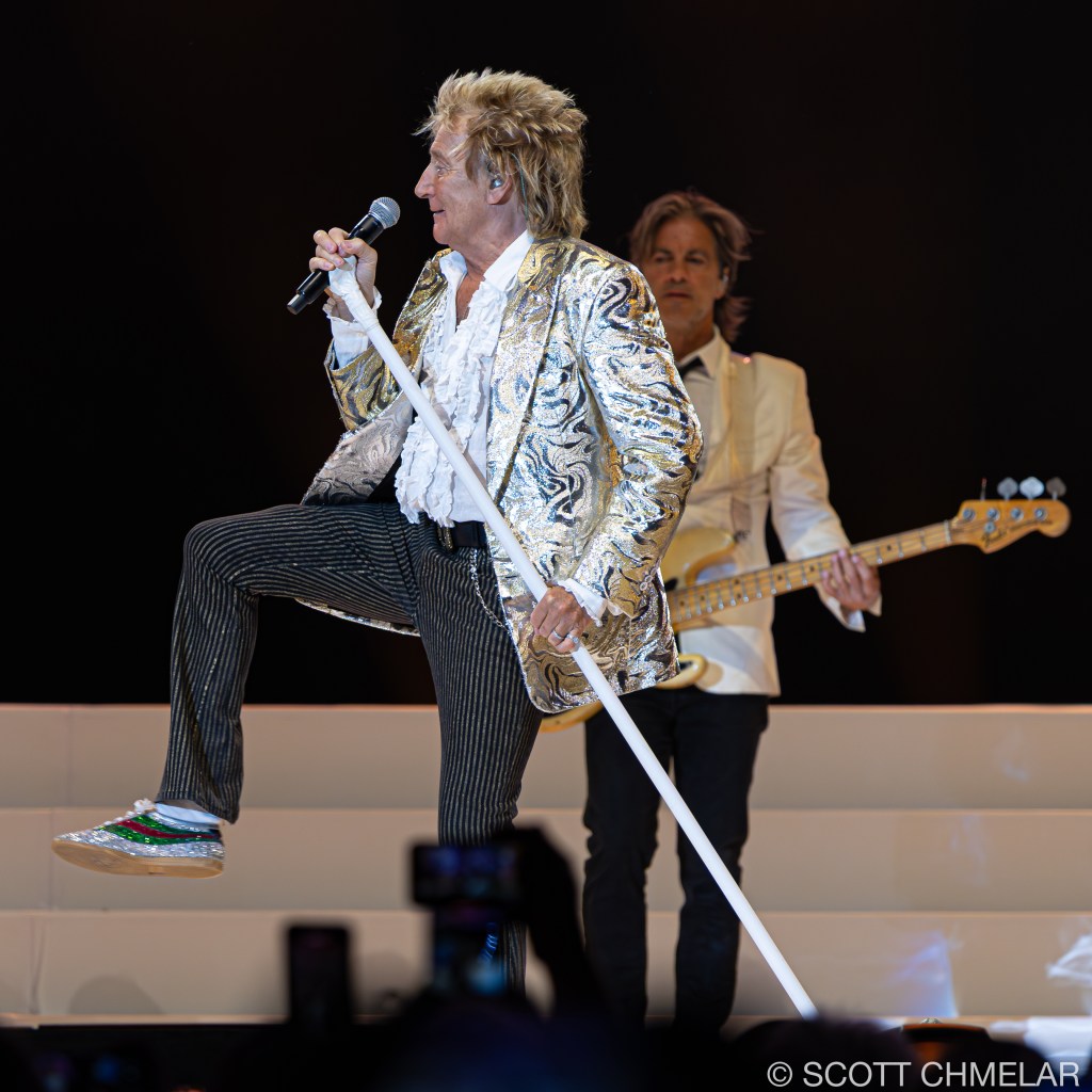Rod Stewart’s “One Last Time” tour, brought his unmistakable voice, boundless energy and charisma to Coastal Credit Union Music Park at Walnut Creek in Raleigh, NC on July 8, 2025, with Cheap Trick opening. Inspired by the success of his recent global run and citing a desire to conclude his large-scale touring era without retiring entirely, Stewart, now 79, embarked on this 20-date North American farewell tour. The run began March 7 in Austin, TX and includes stops in major cities across the U.S. and Canada—Quebec City, Toronto, Philadelphia, Nashville, and more—culminating August 15 in St. Louis.