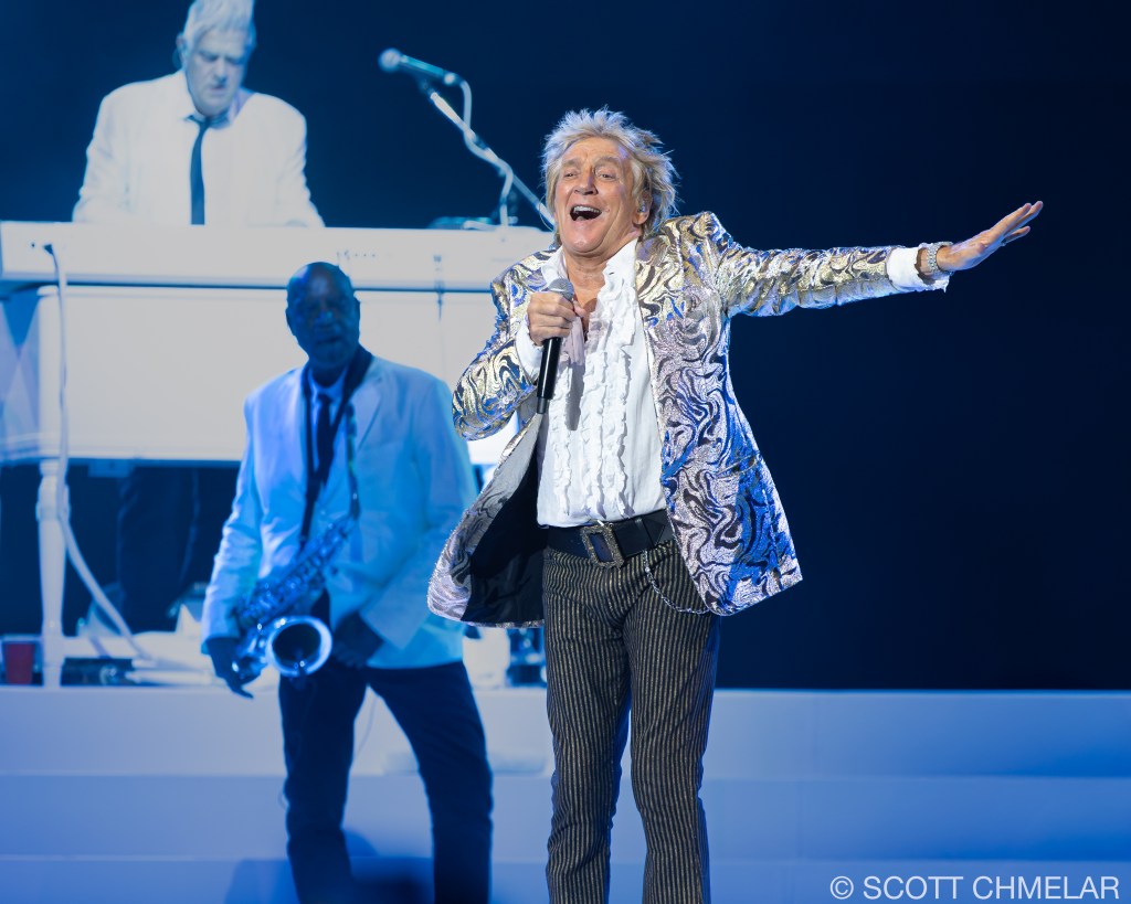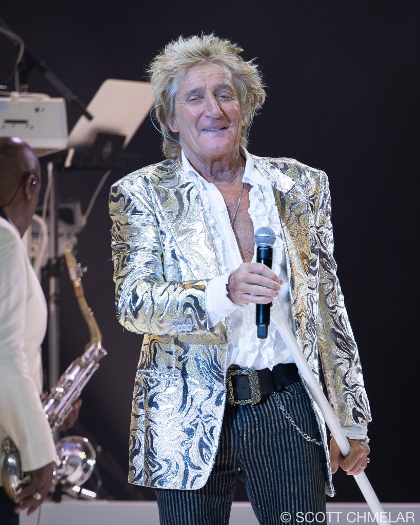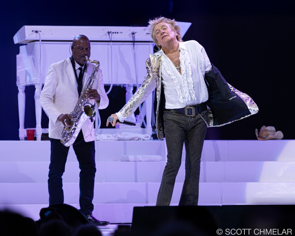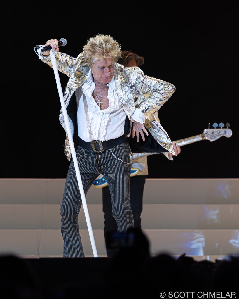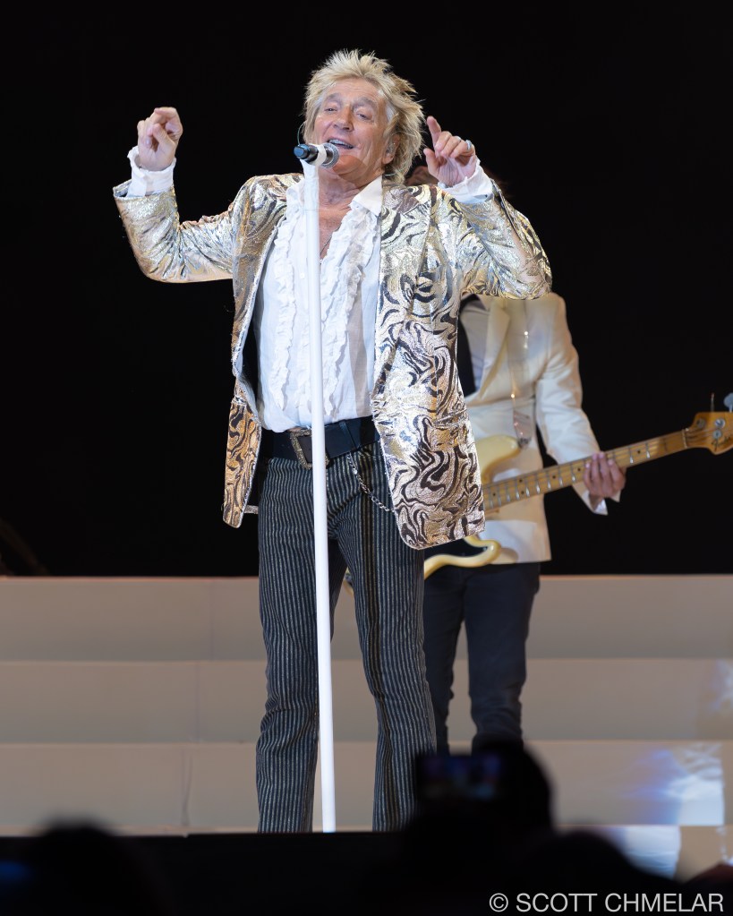 Rod Stewart’s “One Last Time” tour, brought his unmistakable voice, boundless energy and charisma to Coastal Credit Union Music Park at Walnut Creek in Raleigh, NC on July 8, 2025, with Cheap Trick opening. Inspired by the success of his recent global run and citing a desire to conclude his large-scale touring era without retiring entirely, Stewart, now 79, embarked on this 20-date North American farewell tour. The run began March 7 in Austin, TX and includes stops in major cities across the U.S. and Canada—Quebec City, Toronto, Philadelphia, Nashville, and more—culminating August 15 in St. Louis.