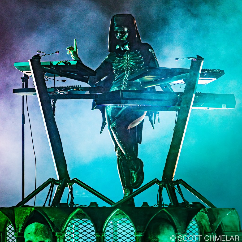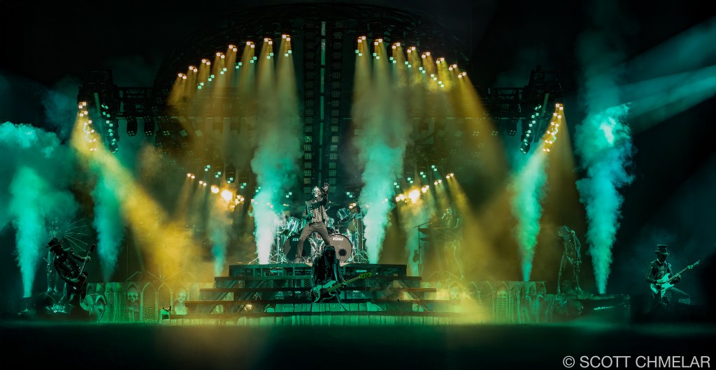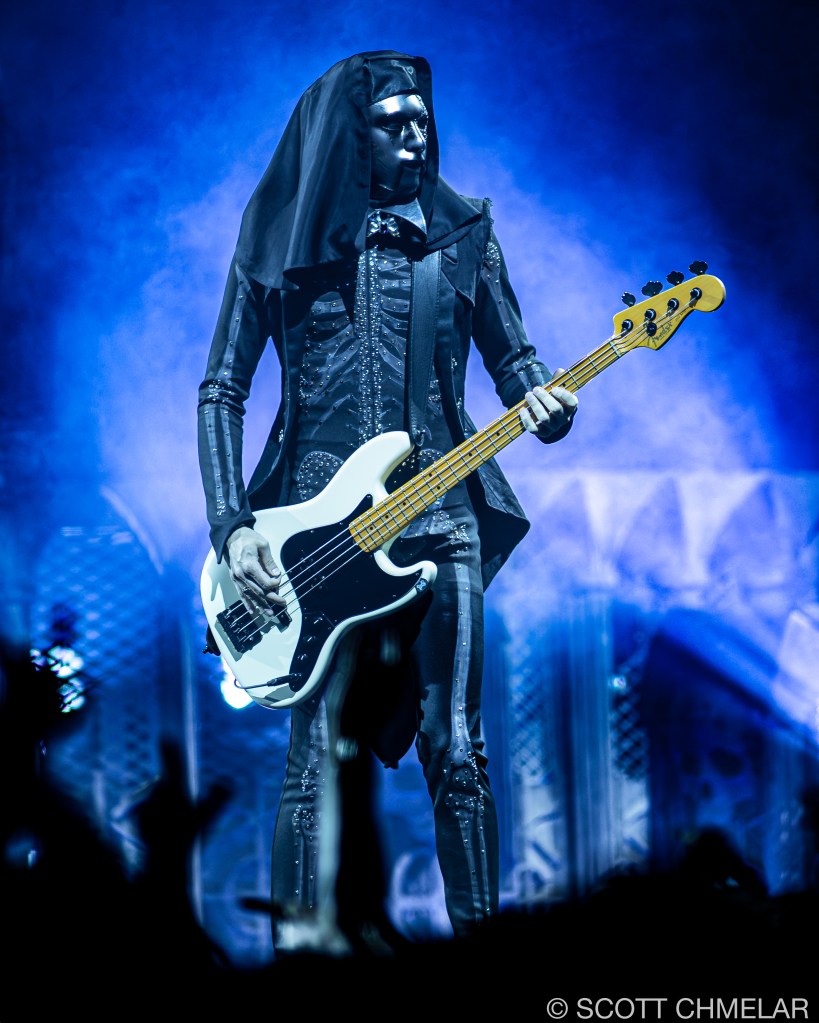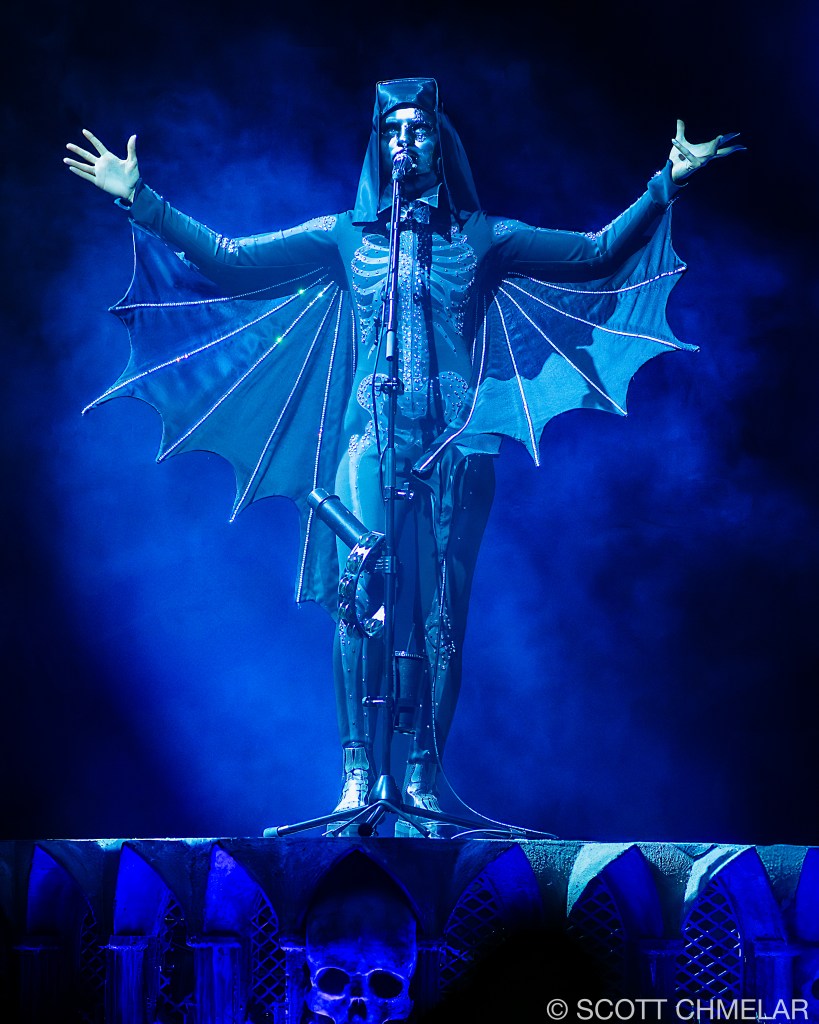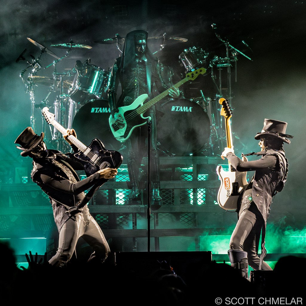 At the Lenovo Center in Raleigh, Ghost delivered a powerful two-hour ritual, opening with deep cuts from Skeletá and fan favorites like “Rats,” “Mummy Dust,” and “Square Hammer.” The band’s energy was relentless, with Forge commanding the stage and the Nameless Ghouls executing a tight, polished set. The crowd was ecstatic, fully immersed in the experience, many clad in robes, face paint, and skull masks. The stage visuals included stained-glass backdrops, shifting LED panels, and stark lighting that amplified the skeletal themes of the new album. Production partners included Live Nation, Rylander’s design team, and DiGiCo audio support. Ghost continues to support causes like MusiCares and mental health initiatives, with VIP “Member of the Clergy” passes raising charitable funds per ticket. The tour further solidifies Ghost’s standing in the modern rock world, while showcasing Tobias Forge’s meticulous artistry and deep commitment to immersive, ritualized performance.