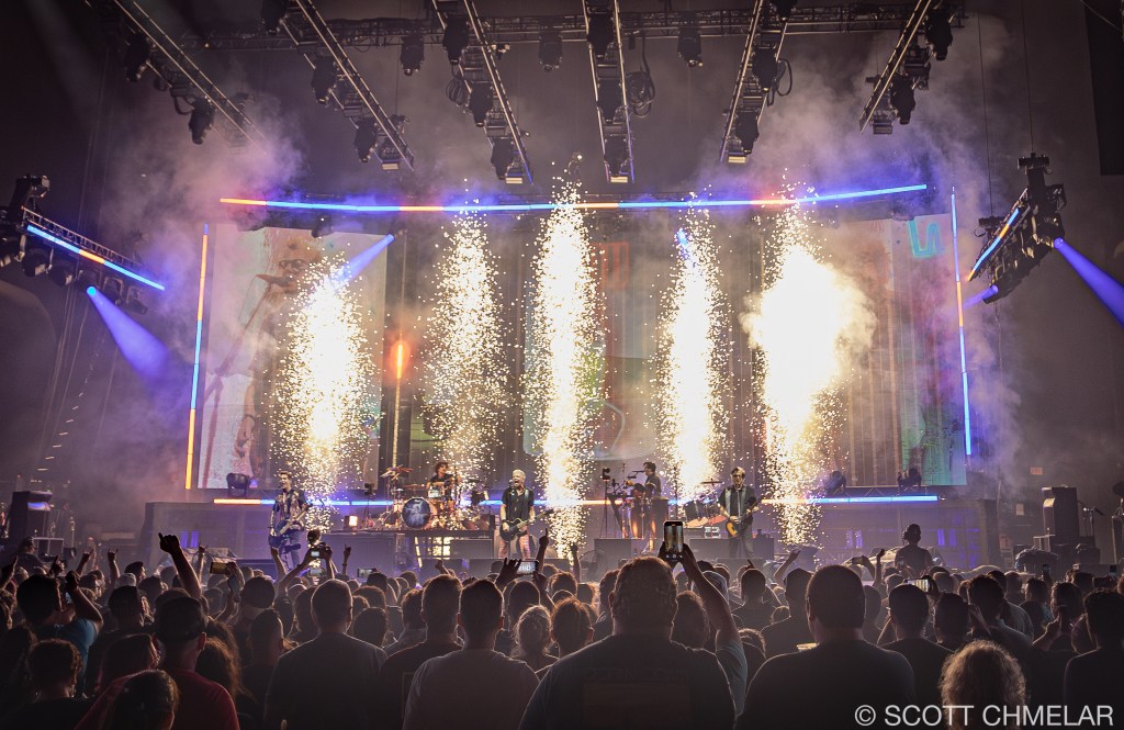 The Offspring brought their explosive “Supercharged Worldwide In ’25” tour to Coastal Credit Union Music Park at Walnut Creek in Raleigh, NC on July 16, 2025, headlining a packed lineup supported by New Found Glory and Jimmy Eat World. The global tour spans multiple continents—Australia, Europe, South America, Asia, South Africa—and over 30 dates across the United States and Canada, hitting major cities including West Palm Beach, Toronto, Dallas, and Phoenix. Conceived to showcase their new album Supercharged, the tour reflects The Offspring’s commitment to delivering high-impact shows fueled by the vitality of their latest material and anchored by their historic punk-rock legacy. While Jimmy Eat World performed earlier in the evening, Indra Magazine was unable to photograph or cover their set due to contractual obligations with the band’s media team.