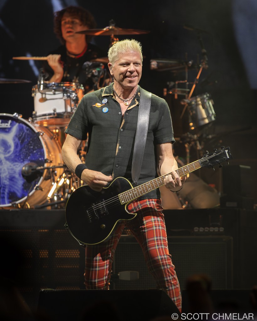 Originating from Garden Grove, California, The Offspring’s current lineup—Dexter Holland (vocals, guitar), Kevin “Noodles” Wasserman (lead guitar), Todd Morse (bass), Jonah Nimoy (keyboards), and Brandon Pertzborn (drums)—tore through a setlist that fused era-defining hits like “Come Out and Play,” “The Kids Aren’t Alright,” and “Self Esteem” with fresh tracks from Supercharged. Stage visuals were produced by Tait Towers and Stageco, combining massive LED screens with aggressive lighting effects. Sound was engineered by Alex Reed, who kept the mix sharp and immersive. New Found Glory, hailing from Coral Springs, Florida, brought their signature melodic energy with Jordan Pundik (vocals), Chad Gilbert (guitar), Ian Grushka (bass), and Cyrus Bolooki (drums), performing cuts from Make the Most of Itand fan favorites like “My Friends Over You.” Engineer Maria Santos mixed their set. The crowd was unrelenting—singing every lyric, moshing, and crowd surfing from front rail to lawn. Onstage, both bands leaned into punk staples with no-frills wardrobe choices—graphic tees, dark jeans, Converse—and instruments that defined their sound: Dexter’s Fender Telecaster, Noodles’ Gibson SGs, and Chad Gilbert’s Gretsch hollow-bodies. The Offspring, signed to Concord, have released eleven albums including Smash, Americana, and Let the Bad Times Roll. New Found Glory, on Pure Noise Records, continue their momentum with a catalog that includes Sticks and Stones, Catalyst, and Forever and Ever x Infinity. Both groups are recipients of multi-platinum certifications and have supported charitable causes—The Offspring through environmental and cancer-related efforts, and New Found Glory through mental health advocacy. Tour merchandise booths were packed with fans picking up exclusive apparel, vinyl, and accessories. Behind the scenes, the bands shared a relaxed camaraderie, with crew members reporting on lighthearted pranks and shared pre-show meals. Official websites are The Offspring and New Found Glory.