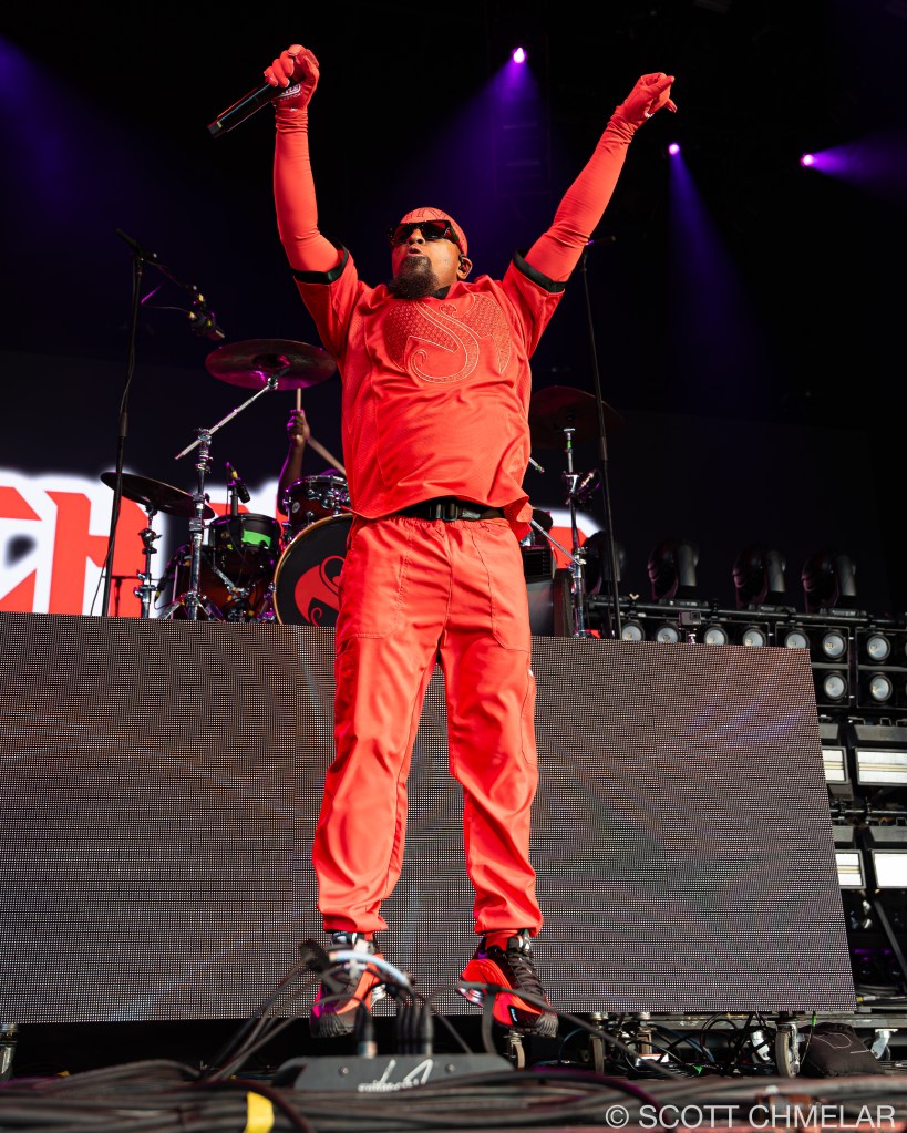 Tech N9ne tore into his set like he had something to prove, which at this point in his career he absolutely doesn’t.The man’s discography—Anghellic, Absolute Power, All 6’s and 7’s, Something Else, Planet, ASIN9NE—is an endless reminder that he’s been running laps around the industry while staying fiercely independent with Strange Music. Every double-time verse and tongue-twisting rhyme had the crowd out of their seats, arms up, and mouths moving just as fast. The visuals on stage hit hard, but it was the sheer speed and volume of his delivery that turned heads. Fans lined up deep at the merch booth, grabbing graphic tees, deluxe CDs, and posters like they were souvenirs from some cult initiation. Official website: https://techn9ne.com.