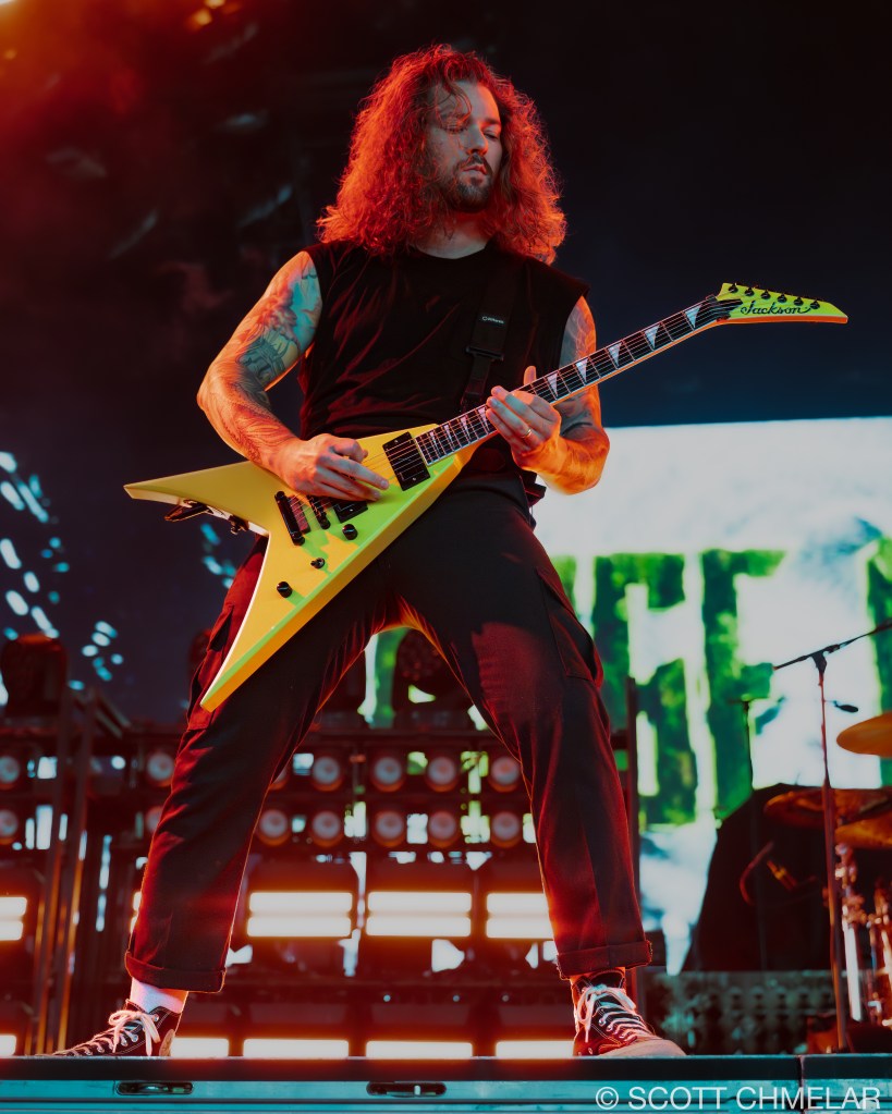 Wage War showed up like they were on a mission to level the place. Briton Bond (vocals), Seth Blake (guitar), Cody Quistad (guitar), Chris Gaylord (bass), and Stephen Kluesener (drums) drove through their catalog—Blueprints, Deadweight, Pressure, Manic—with clenched teeth and no wasted motion. The smoke cannons fired off every time the breakdowns hit, filling the air as kids in the pit tried to one-up each other with harder slams. It was heavy, it was sharp, and it didn’t let up. The band, signed to Fearless Records, continues to champion mental health awareness without ever softening their punch. Merch—vinyl, shirts, posters—flew off the tables like people were gearing up for war. Official website: https://wagewarband.com.