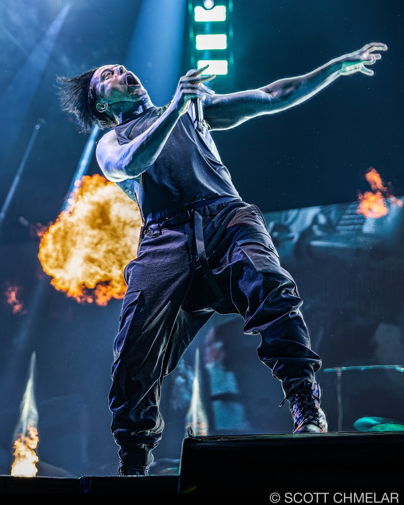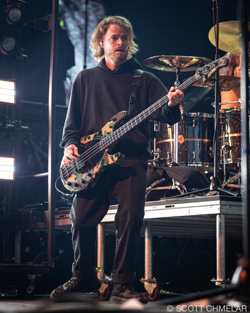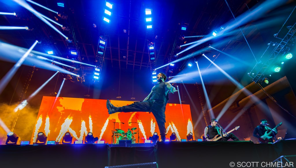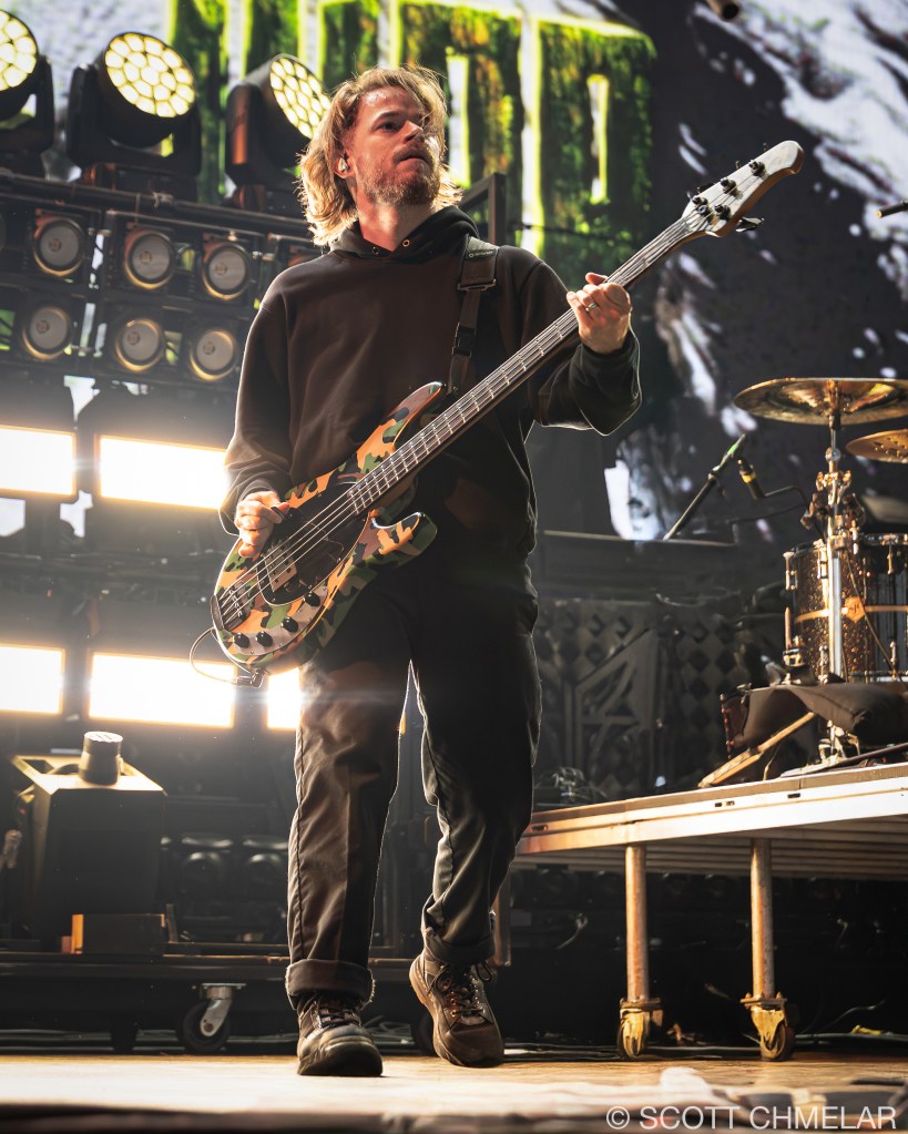 Sleep Theory kicked things off like they were dead set on proving they belonged on this bill. Cullen Moore (vocals), Paolo Vergara (bass), Ben Pruitt (drums), and Daniel Pruitt (guitar) stomped through songs from Paper Hearts (2023) and Afterglow (2025) with the kind of confidence that got people moving early. “Fallout,” “Numb,” and “Stuck in My Head” landed with force, and fans who thought they’d coast through the opener ended up singing along. Their merch—shirts, patches, and physical releases—was everywhere by the end of the night. Official website: https://sleeptheoryband.com.