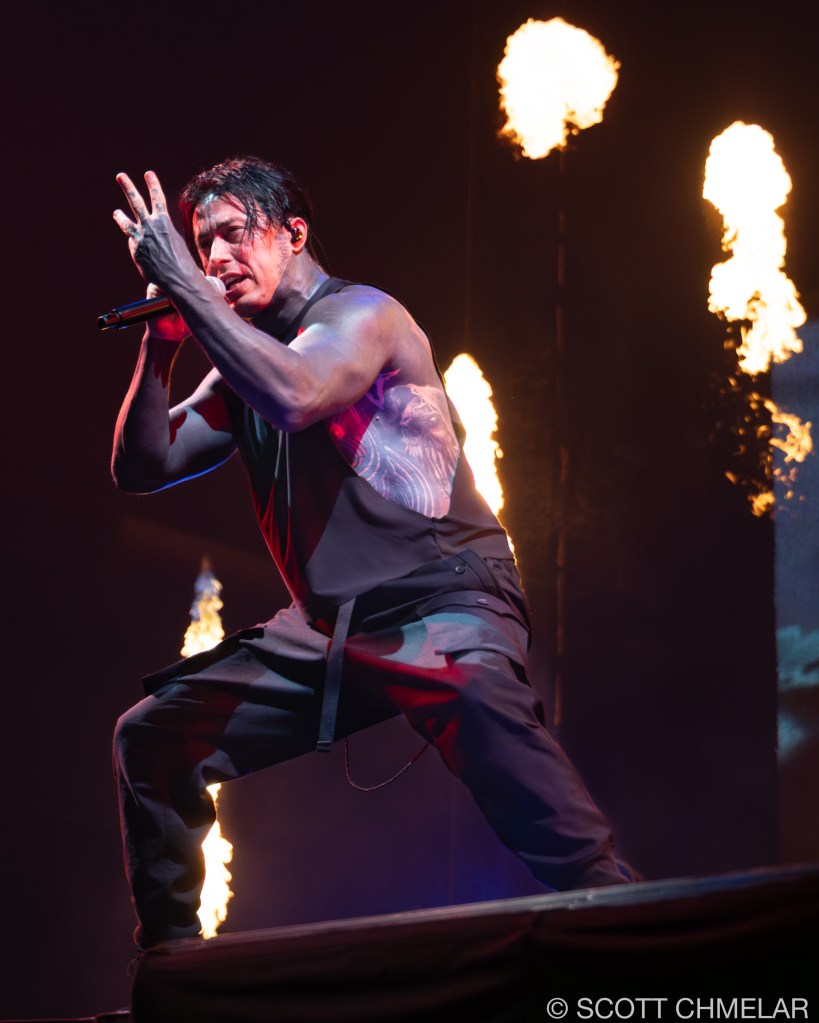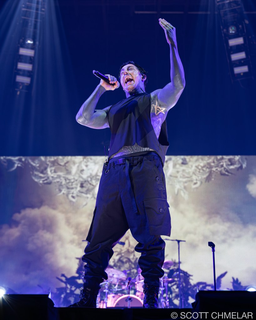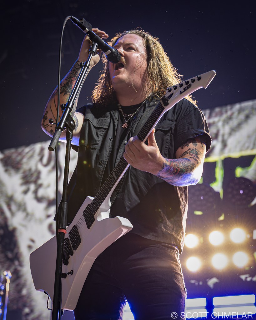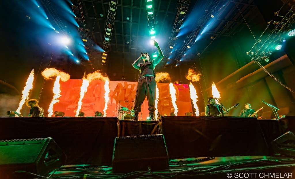 Sleep Theory kicked things off like they were dead set on proving they belonged on this bill. Cullen Moore (vocals), Paolo Vergara (bass), Ben Pruitt (drums), and Daniel Pruitt (guitar) stomped through songs from Paper Hearts (2023) and Afterglow (2025) with the kind of confidence that got people moving early. “Fallout,” “Numb,” and “Stuck in My Head” landed with force, and fans who thought they’d coast through the opener ended up singing along. Their merch—shirts, patches, and physical releases—was everywhere by the end of the night. Official website: https://sleeptheoryband.com.
