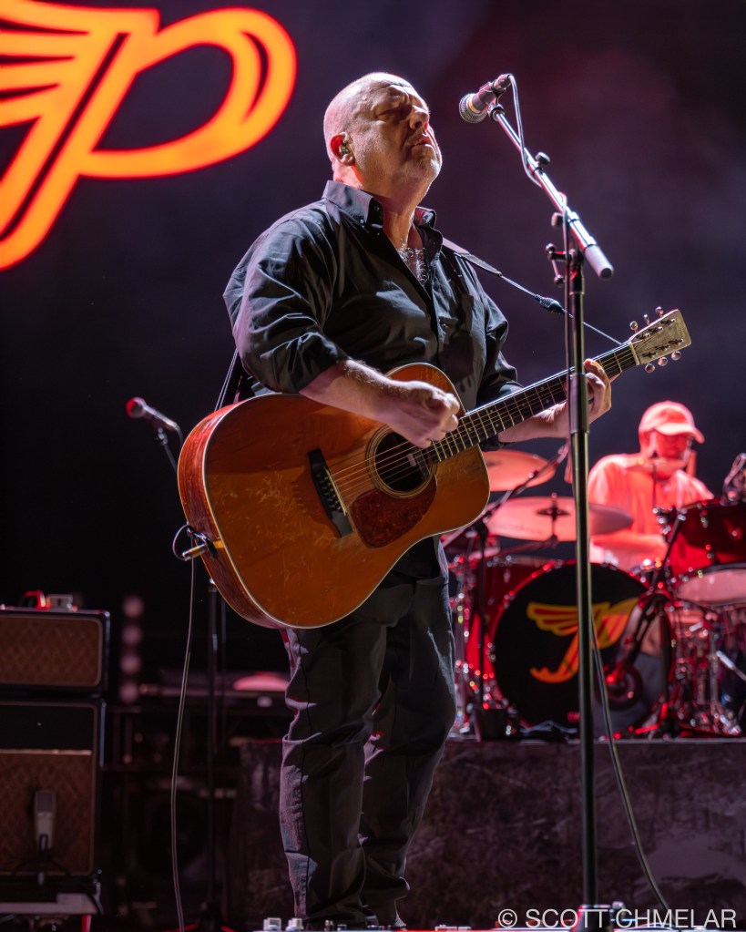 The Pixies headlined this stop of their North American Tour 2025, and the night belonged to a band still carrying the weight of decades of influence. Formed in Boston in 1986, their nine-album discography is the stuff of alternative rock curriculum: Surfer Rosa (1988), Doolittle (1989), Bossanova (1990), Trompe le Monde (1991), and the reunion-era records that pushed them back into relevance—Indie Cindy (2014), Head Carrier (2016), Beneath the Eyrie (2019), Doggerel (2022), and their most recent release, The Night the Zombies Came (2024) on BMG. Frank Black, Joey Santiago, David Lovering, and bassist Emma Richardson tore through a set that spanned early cult favorites and fresh tracks, with the crowd erupting on every familiar chord change. Their influence is immeasurable, and their critical standing is untouchable. The merchandise tables reflected both legacy and present—reissues, box sets, and plenty of gear branded with the new record’s iconography. More info at pixiesmusic.com.