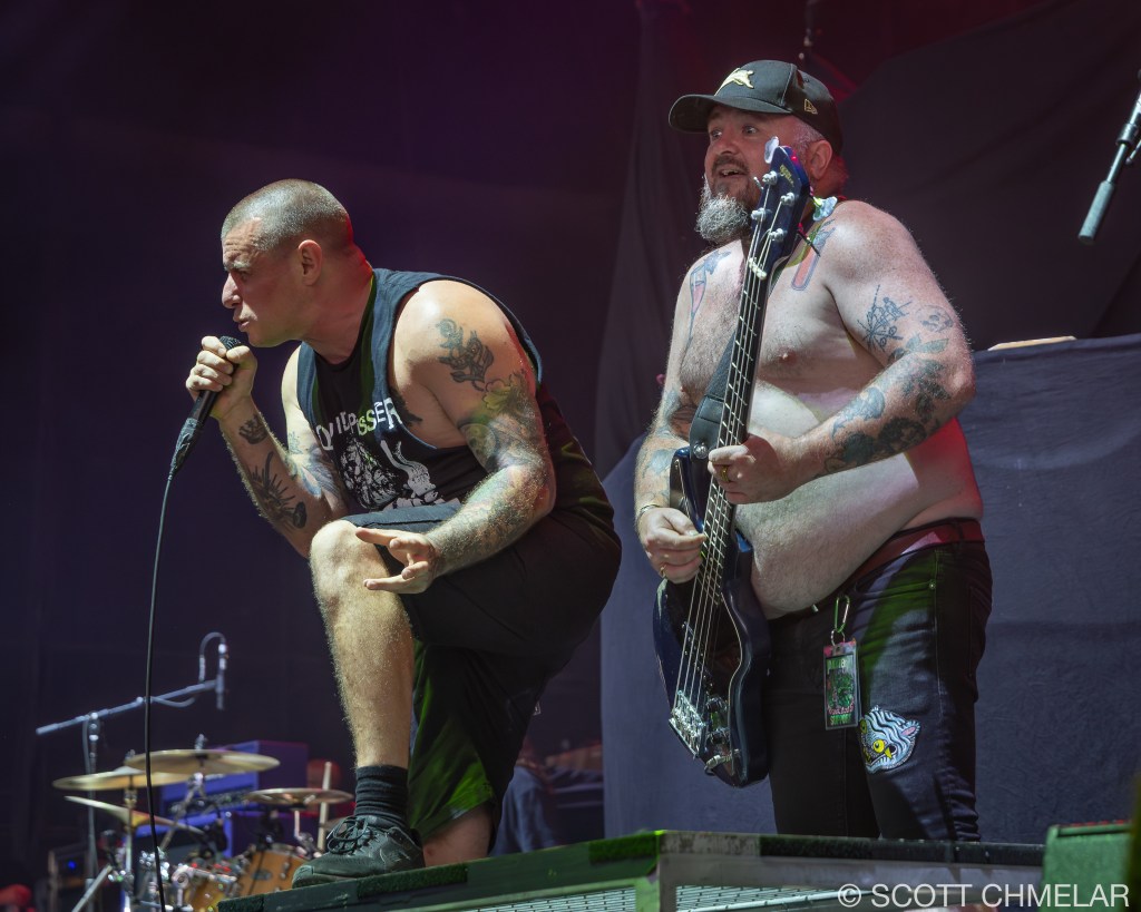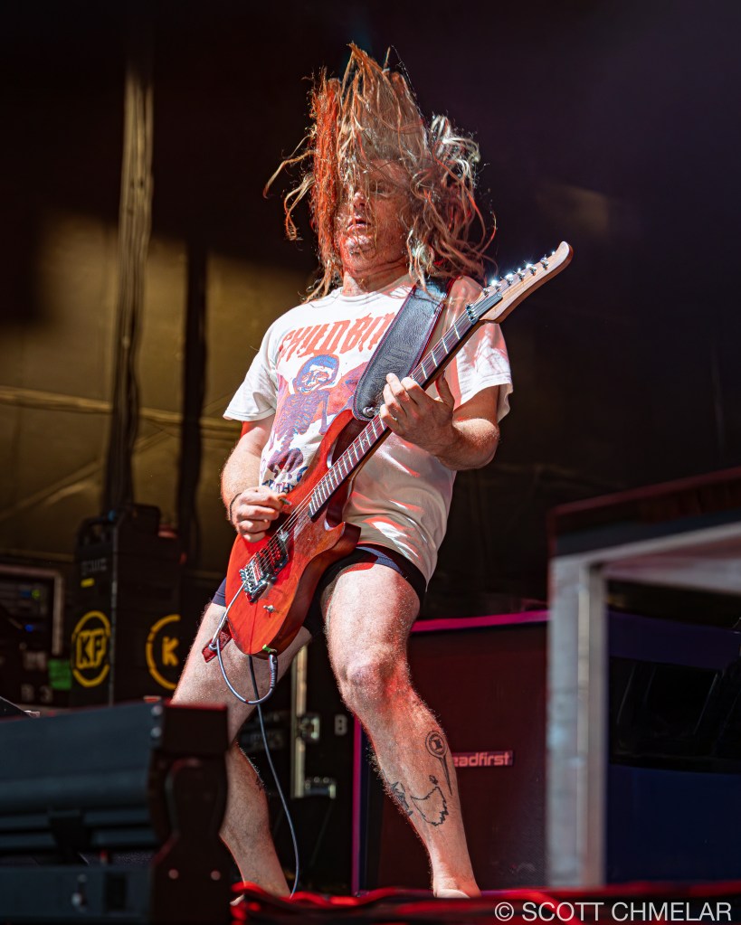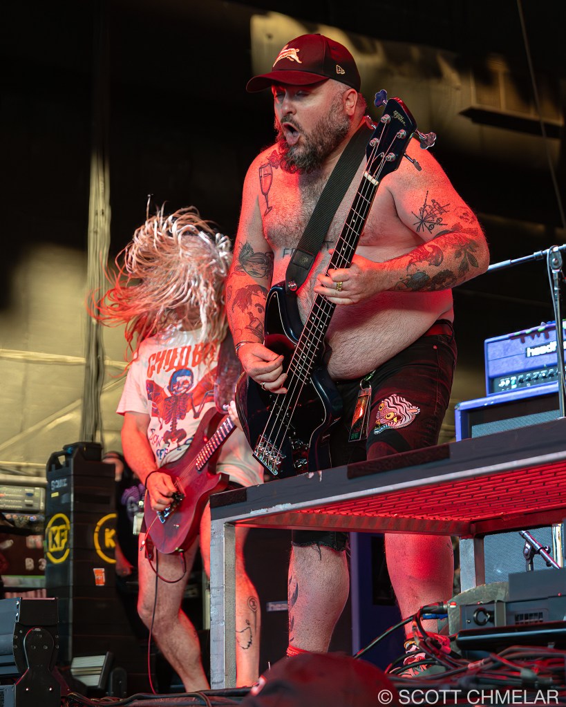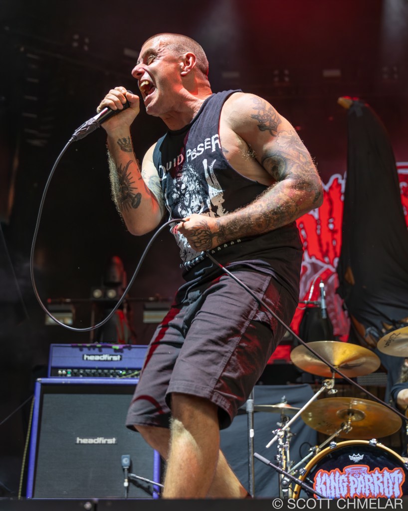 King Parrot opened with absolute bedlam, and that’s exactly what people came early to see. Matthew “Youngy” Young spat into the air, slammed himself into the barricade, and barked insults at anyone not paying attention—meanwhile Wayne Slattery, Ari White, Andrew “Squiz” Livingstone-Squires, and Max Dangerfield played like they were trying to peel paint off the walls. Their latest release, A Young Person’s Guide to King Parrot (2025), already feels like a staple in their set, stacked alongside cuts from Bite Your Head Off (2012), Dead Set (2015), and Ugly Produce (2017). They’ve been nominated for ARIA Awards back home in Australia, but what they trade in most is sheer force—no frills, just chaos and humor in equal measure. Their merch setup was classic DIY: shirts, vinyl, and patches going out the door as fast as they could restock them. For a band working across labels from Housecore in the U.S. to Dead Set in Australia, their international presence feels undeniable. Their official site is King Parrot.