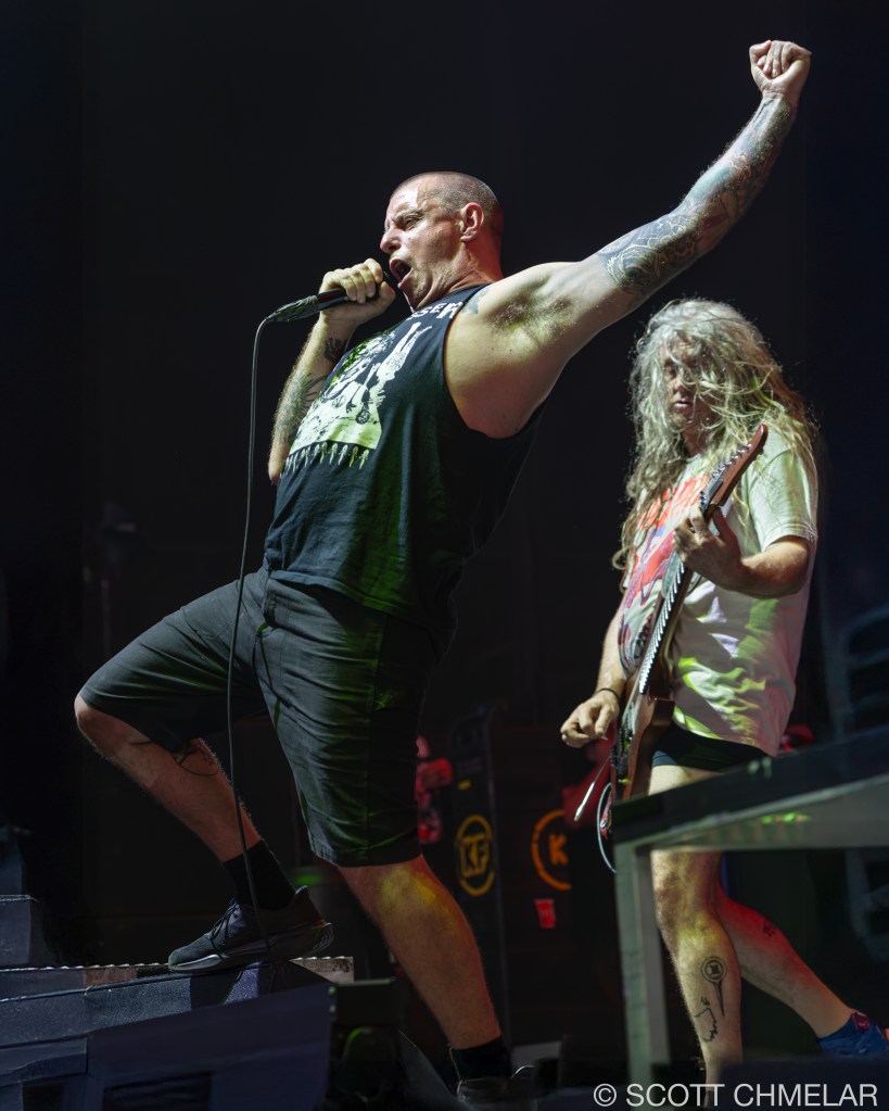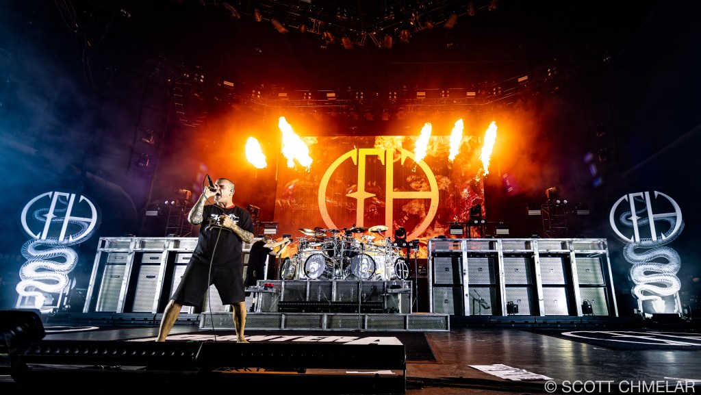 Pantera headlined The Heaviest Tour of the Summer at Coastal Credit Union Music Park at Walnut Creek in Raleigh, NC, on September 11, 2025, and it felt like the kind of night that fans had been waiting decades for. Phil Anselmo’s voice was gritty but controlled, Rex Brown kept the low end heavy, and Zakk Wylde with Charlie Benante filled in for the Abbott brothers with reverence and fire. The 17-song set ran the spectrum—blistering staples like “Mouth for War” and “5 Minutes Alone,” fan-favorite anthems like “Cowboys From Hell,” and rarities like “10s” played live for the first time. Flames burst on cue, video tributes to Dimebag and Vinnie hung in the air, and the pit answered every cue with chaos. The merch tables were mobbed, packed with legacy shirts, vinyl box sets, and even reissues that carried the weight of history. Pantera’s nine studio albums remain cornerstones of heavy music, and while awards and accolades have piled up over the years, it’s the crowd screaming every word back at them that proves their legacy is still alive. Their official site is Pantera.