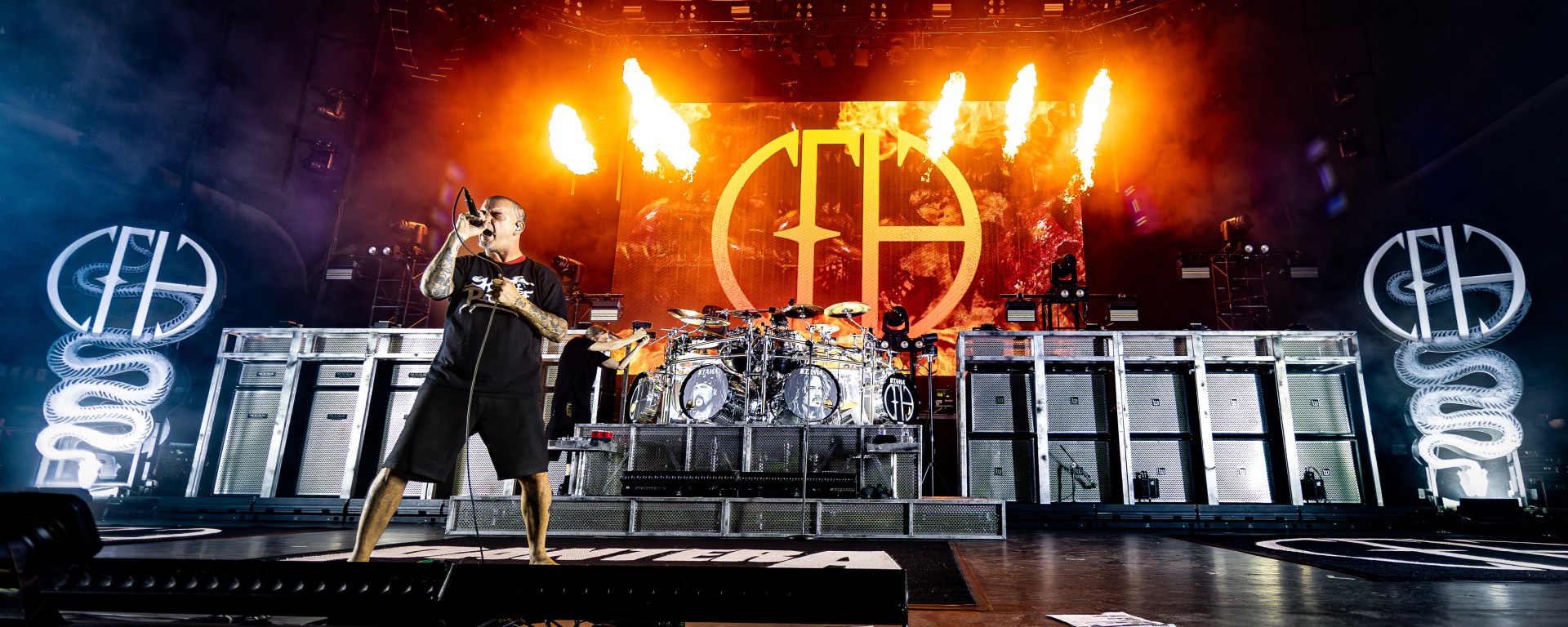 Pantera headlined The Heaviest Tour of the Summer at Coastal Credit Union Music Park at Walnut Creek in Raleigh, NC, on September 11, 2025, and it felt like the kind of night that fans had been waiting decades for. Phil Anselmo’s voice was gritty but controlled, Rex Brown kept the low end heavy, and Zakk Wylde with Charlie Benante filled in for the Abbott brothers with reverence and fire. The 17-song set ran the spectrum—blistering staples like “Mouth for War” and “5 Minutes Alone,” fan-favorite anthems like “Cowboys From Hell,” and rarities like “10s” played live for the first time. Flames burst on cue, video tributes to Dimebag and Vinnie hung in the air, and the pit answered every cue with chaos. The merch tables were mobbed, packed with legacy shirts, vinyl box sets, and even reissues that carried the weight of history. Pantera’s nine studio albums remain cornerstones of heavy music, and while awards and accolades have piled up over the years, it’s the crowd screaming every word back at them that proves their legacy is still alive. Their official site is Pantera.